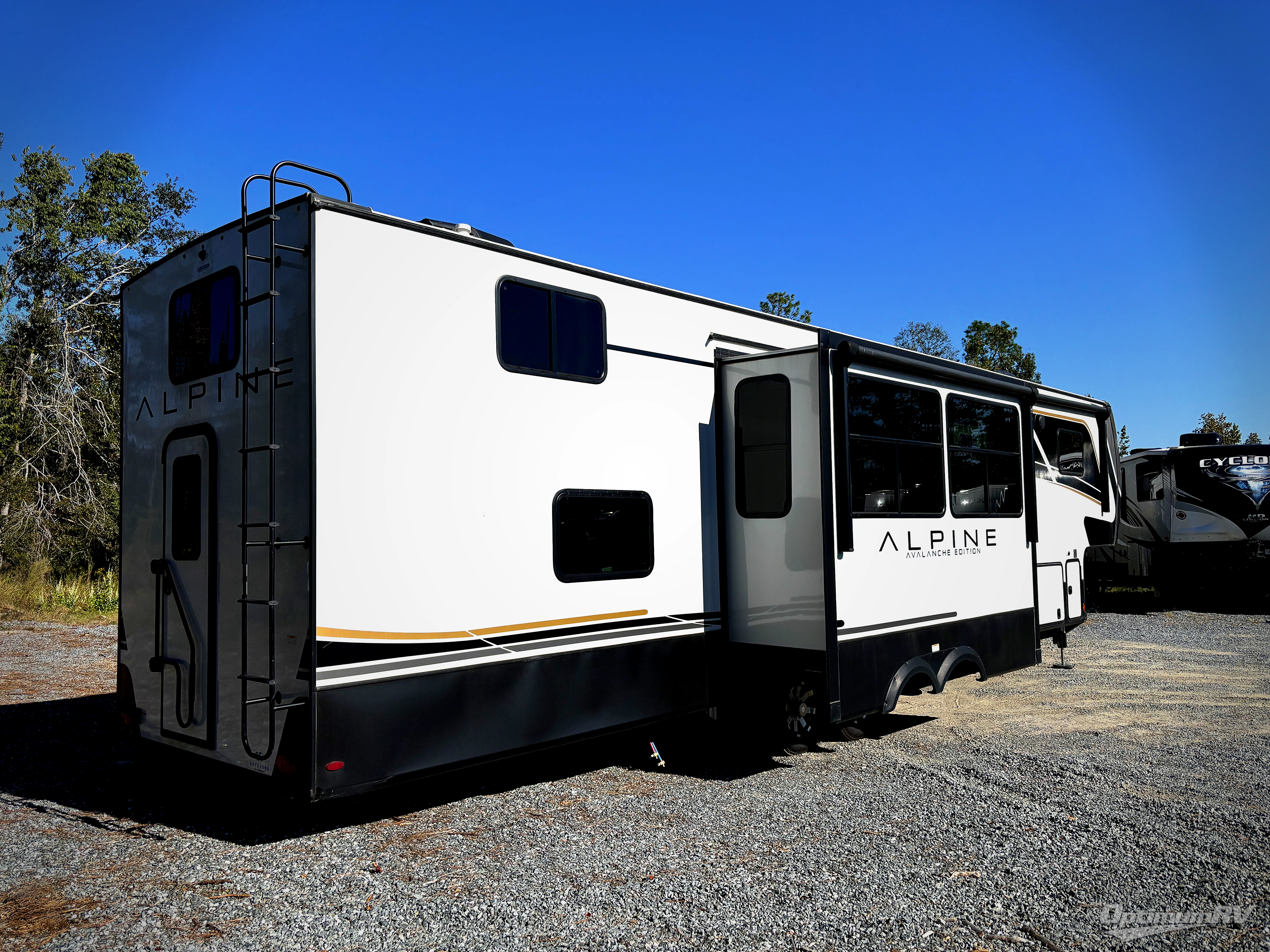 With any Keystone luxury full-profile Alpine Avalanche Edition fifth wheel, you will experience wide-body construction that allows you to stretch out and stay awhile during any season thanks to the Polar Pack All Season Protection that includes a heated and enclosed underbelly, an Astro foil reflective layer on the roof, front and rear walls, and two static attic vents, plus more! The interior offers hardwood slide out fascia with wood accents, crown molding, plus your choice of modern interior design. There are many more Keystone exclusives, like the Tru-Fit slide construction, the in-floor heating ducts, KeyTV™, and much more to bring you a full-packed, luxury fifth wheel!