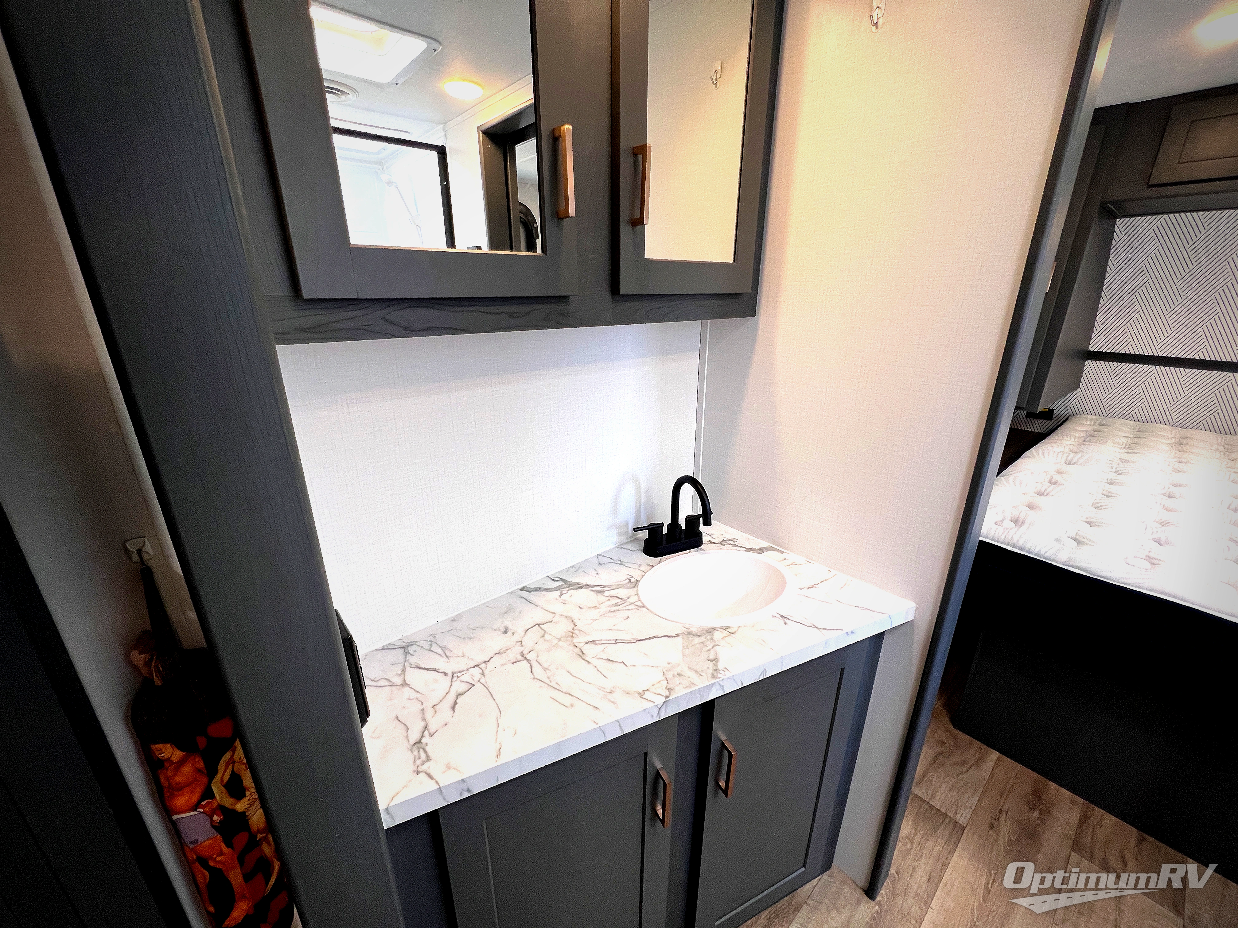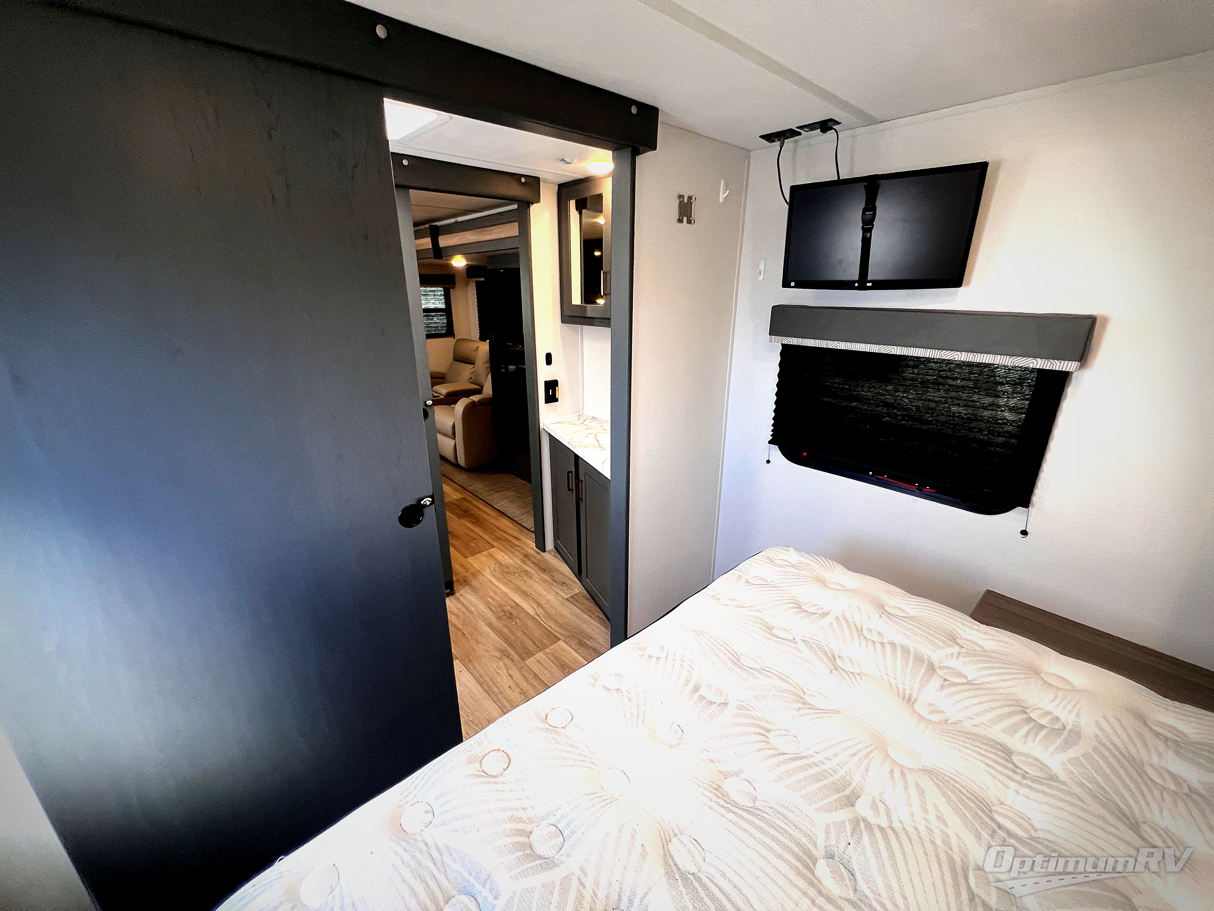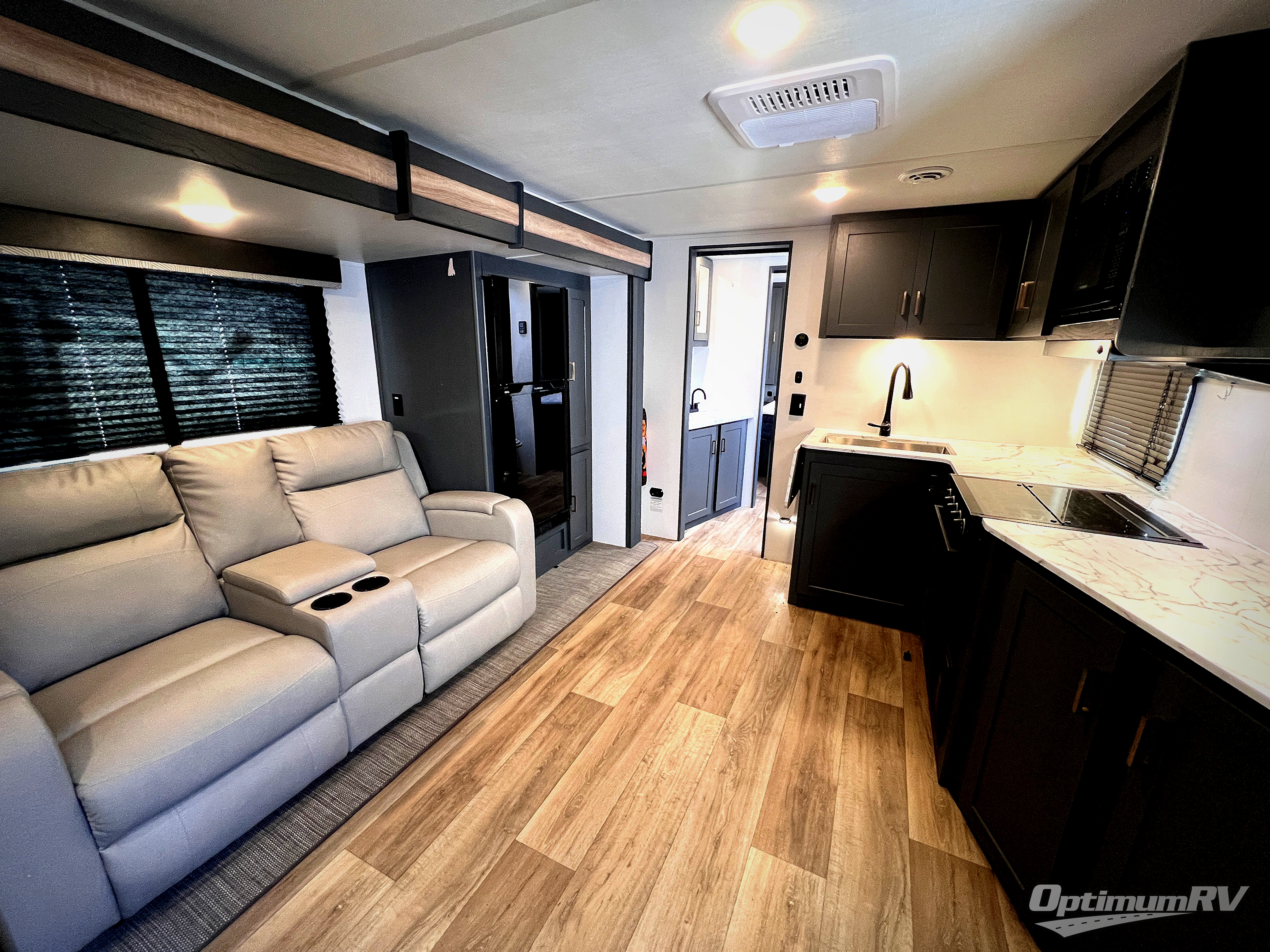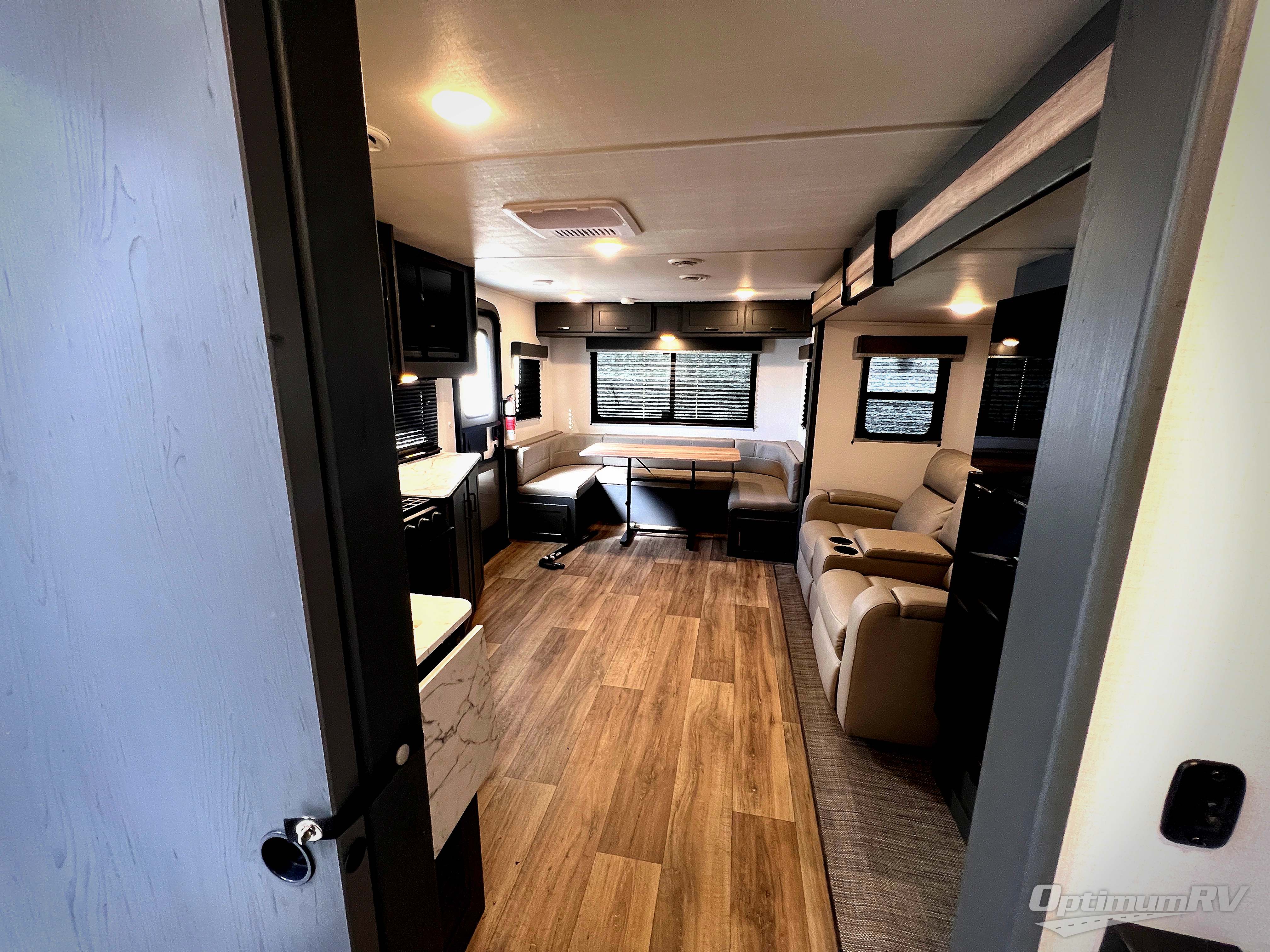 It won't be hard to find comfort in this dual entry travel trailer for six! You can enter in through the front private bedroom or the rear living area, and there is a large slide out for added space to move about. Spend your evenings on the tri-fold sofa across from the LED TV, around the U-shaped dinette, or outside under the 19' power awning with LED lights. You might even like to add the optional theater seating in place of the sofa for more comfort! The walk-through bath will provide easy access for everyone, and the front master bedroom is sure to feel just like home with its queen bed and dual wardrobes!