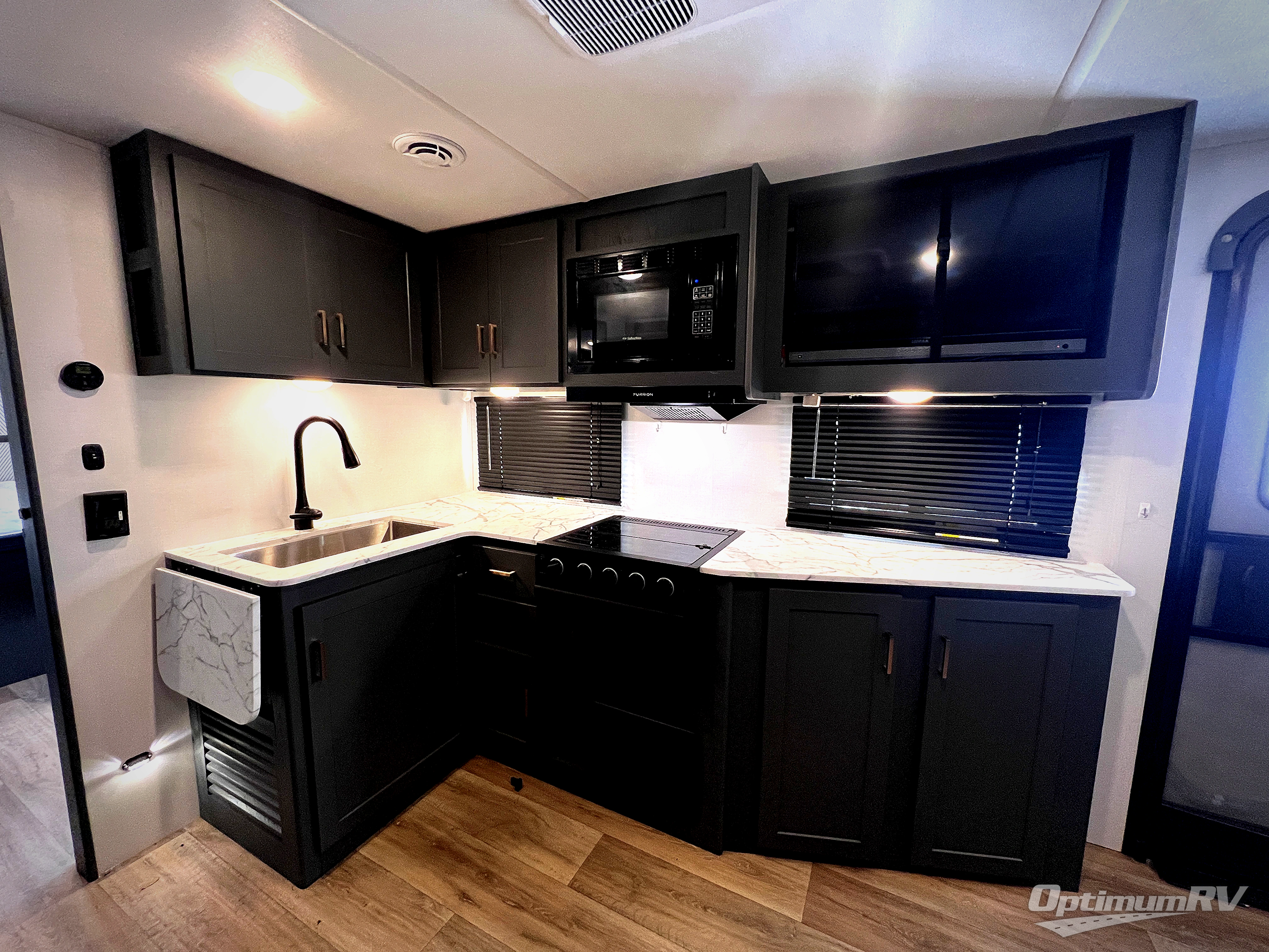 Each Bullet Crossfire Double Axle travel trailer by Keystone is constructed with a NORCO HSLA steel/automotive deposition coated frame assembled with huck bolts for durability. The TORFLEX rubber torsion suspension will provide smooth towing, and the one-piece ABS enclosed underbelly will help extend your camping season. Setting up your trailer will be a breeze with the electric tongue jack and four electric stabilizer jacks, and there is an electric awning with adjustable arms and LED lighting for an inviting outdoor living space. The affordable, high-quality RV solar energy system, SolarFlex Protect 220 comes standard with each model and will allow you to go off-grid when you want, or you can choose the optional SolarFlex Discover 440i for even more off-grid capabilities. Inside, you'll find fabric night shades, Beauflor woven flooring in the slides, full depth cabinets with full extension drawer guides, and many more comforts.
