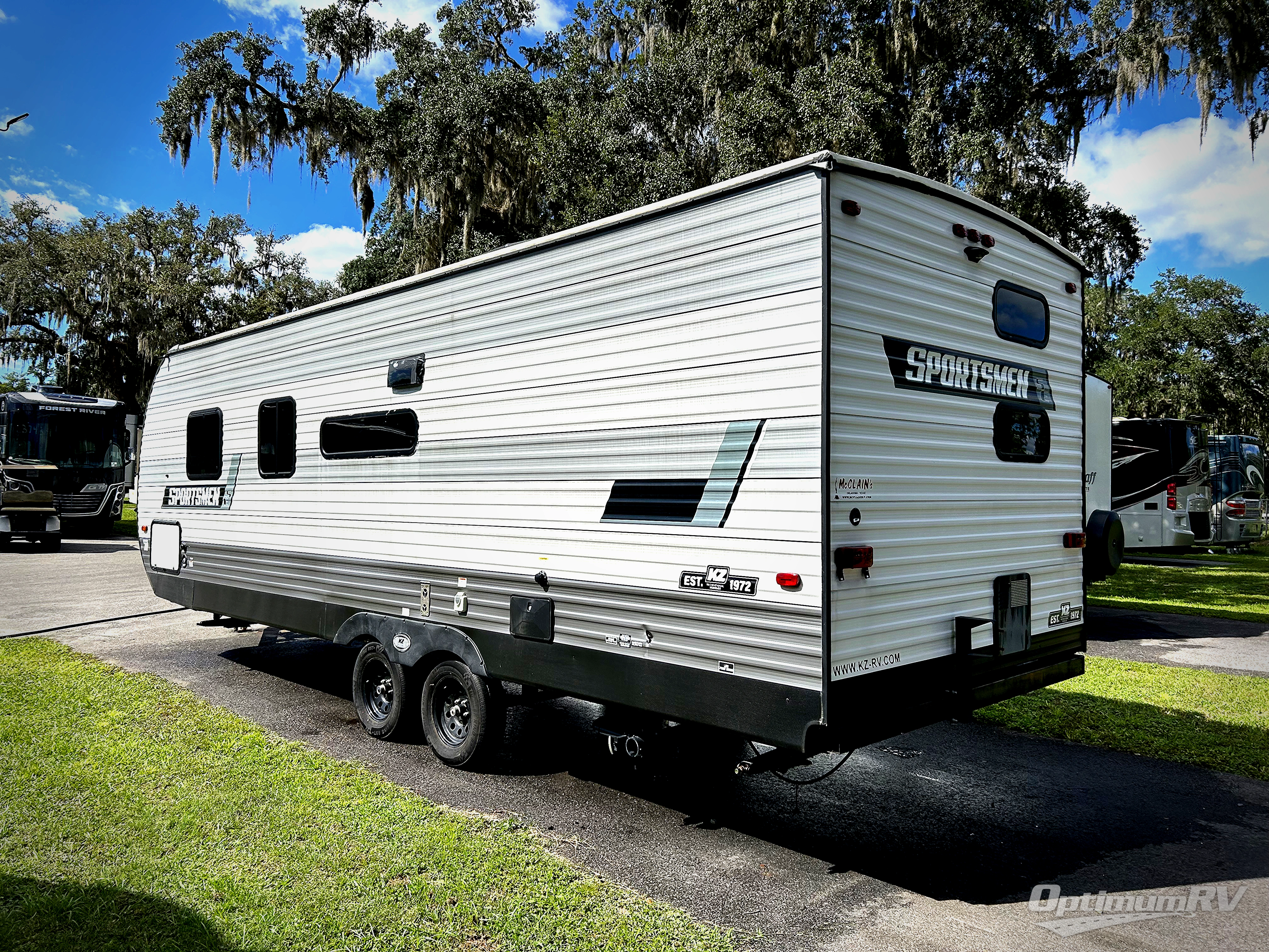 Each Sportsmen SE travel trailer and toy hauler by KZ is constructed with KZ exclusive tough shield exterior metal, a one-piece seamless walk-on Tufflex roofing material, and diamond plate rock guard to protect your unit from road debris. You will appreciate the extra large baggage doors for stowing away your gear when not in use, and tinted windows to help keep the harmful sun rays out plus keeping it cooler inside. Some of the exterior conveniences found in the mandatory Advantage Package are the solid folding steps with a large folding grab handle for easy entry and exit, a full glass friction hinged entry door, plus an exterior shower for your pets or to rinse off before you head inside. You'll also appreciate the nitrogen-filled tires, solar and backup camera prep, plus a Leash Latch with a bonus beverage opener. You'll feel right at home inside with linoleum flooring throughout, a 13,500 BTU air conditioner, large overhead cabinets, a shower surround, and much more!