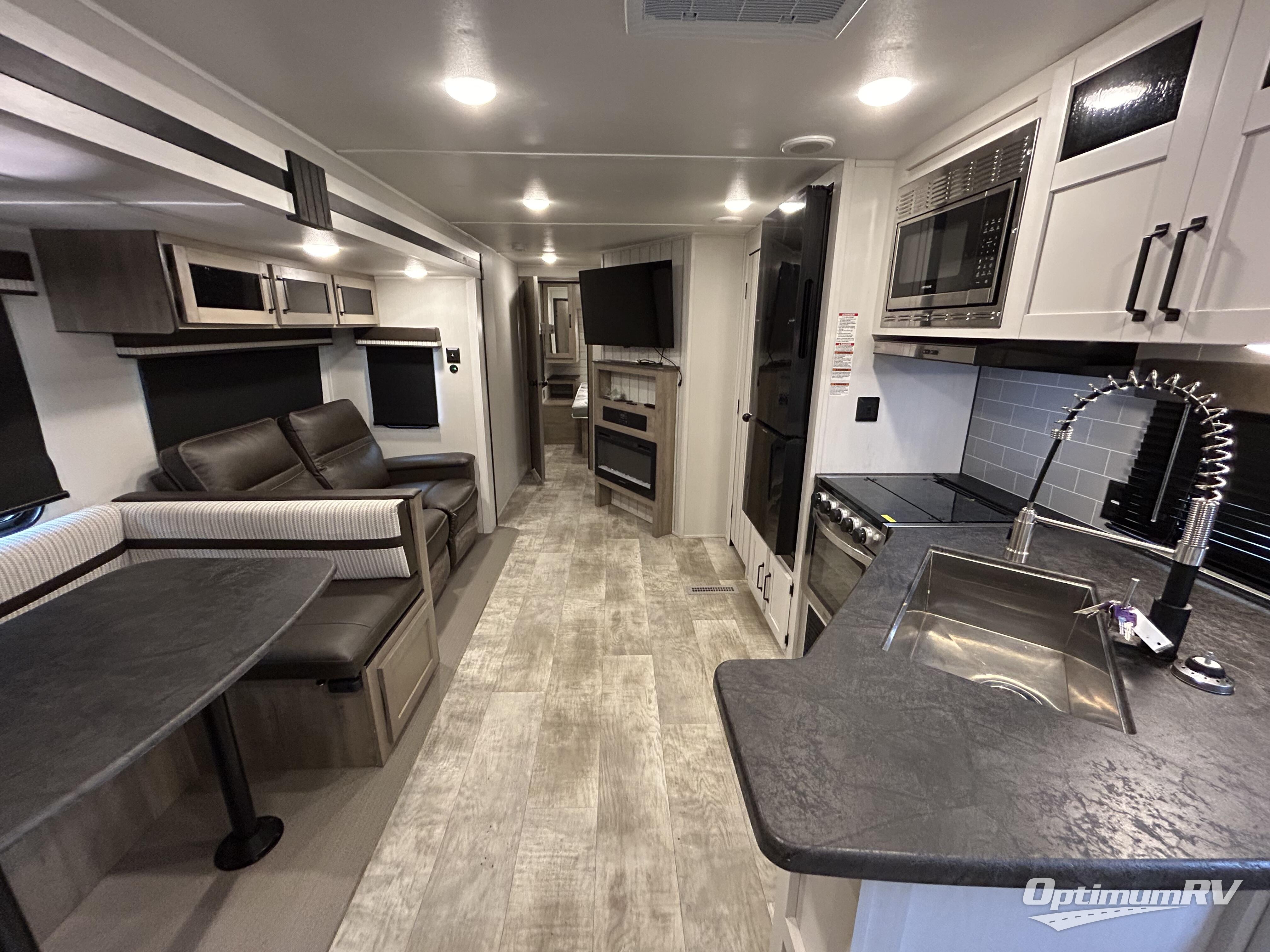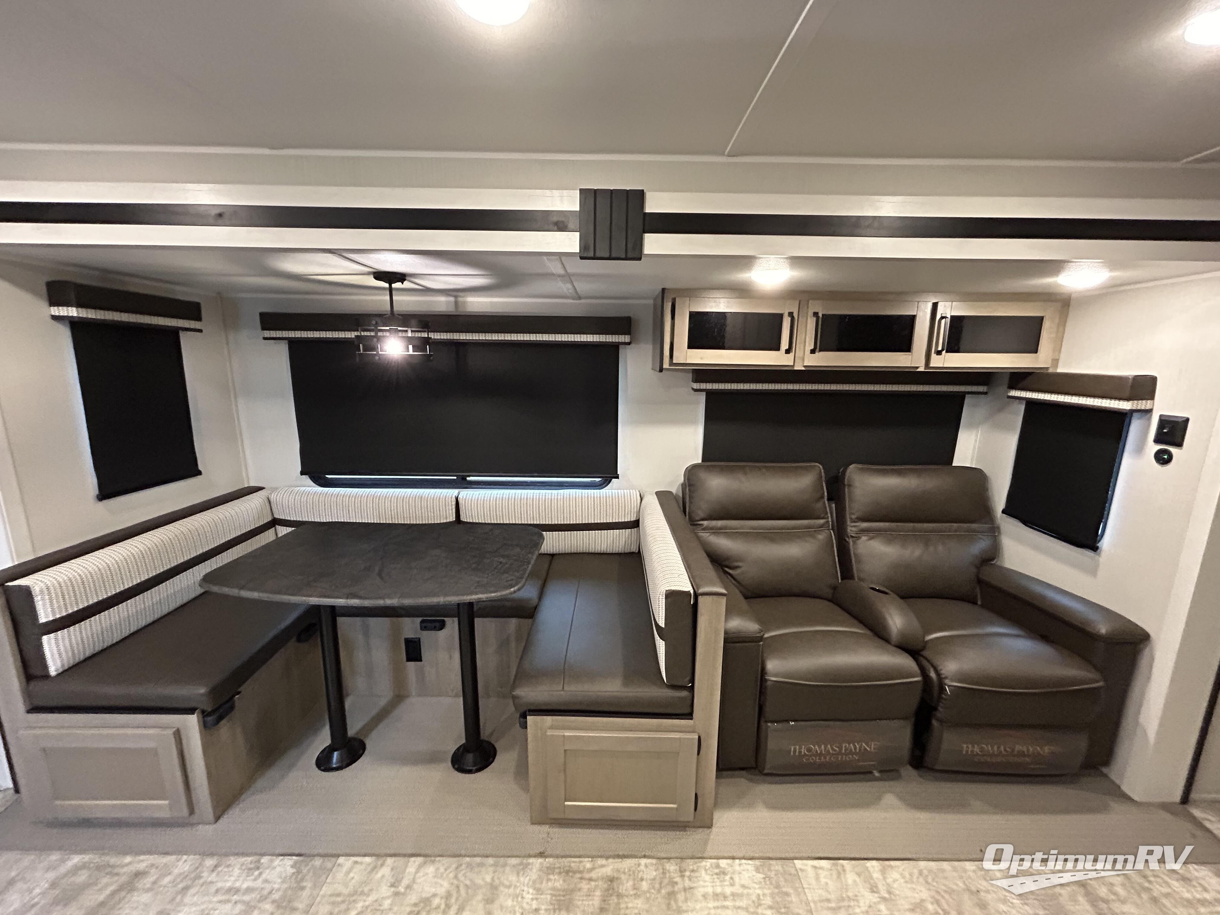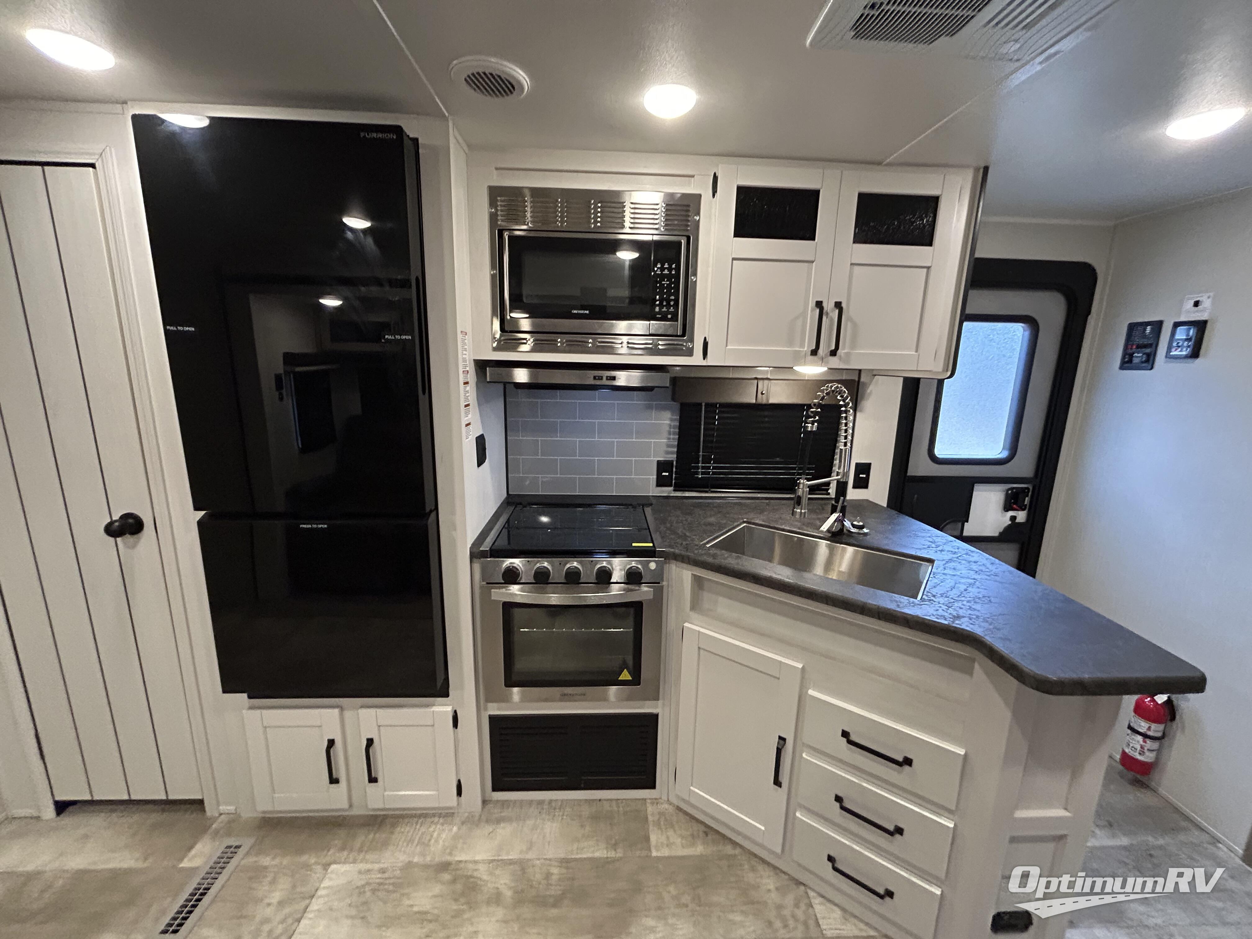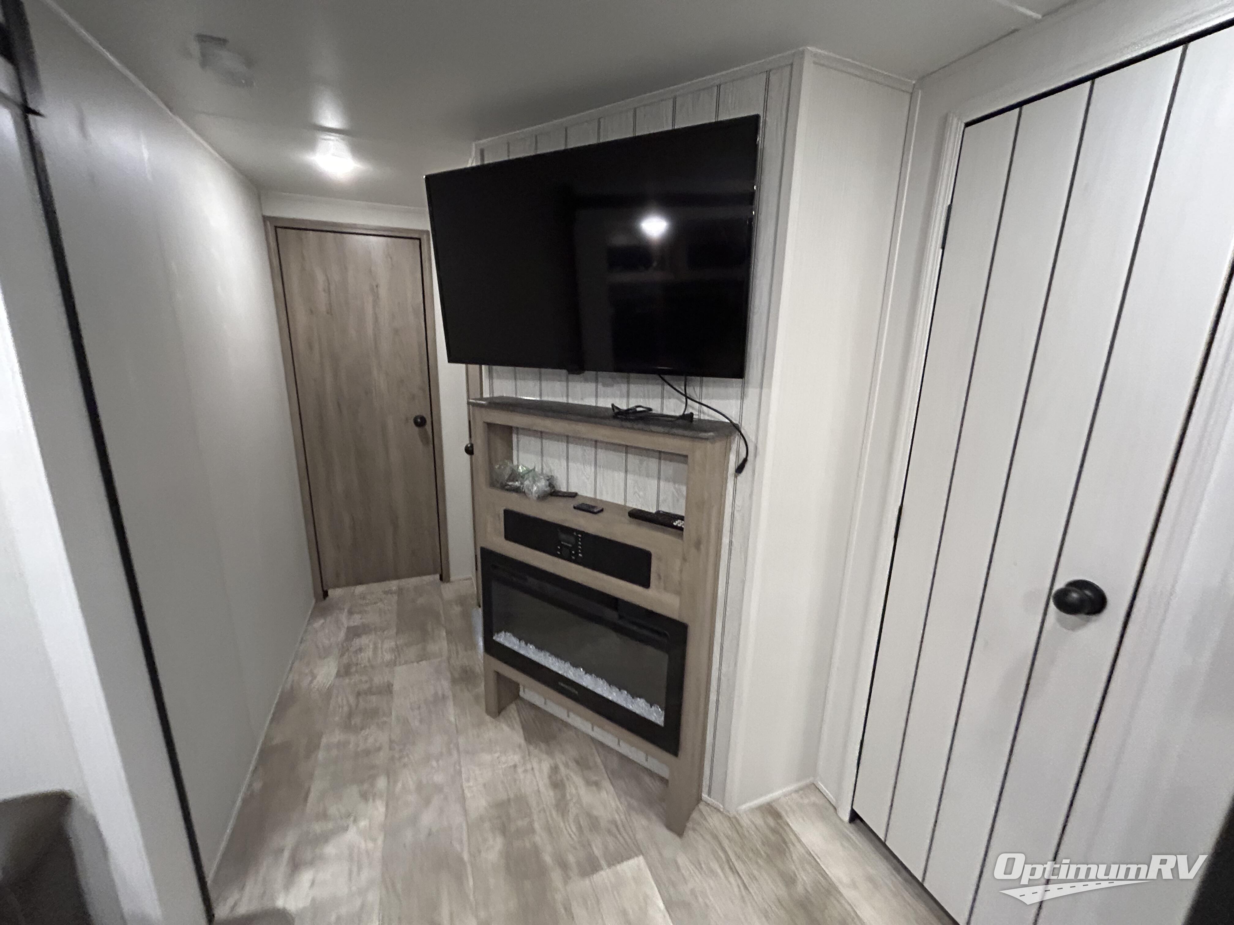 There's room for the whole family in this travel trailer! You will enjoy your own privacy with the front private bedroom which features a 60" x 74" RV queen bed with shirt closets on either side to hang your clothes, and a shelf above for your books or alarm clock. The kiddos can sleep on the set of 48" x 76" double bunk beds with storage underneath. They can even invite a friend or two to join in on the fun and sleep on either the sofa or booth dinette once converted. Everyone can freshen up in the rear corner bathroom with a 32" x 40" shower with a seat, and keep their bellies full with the three burner cooktop. You could even choose to add the optional outside mini kitchen if you enjoy cooking outdoors!