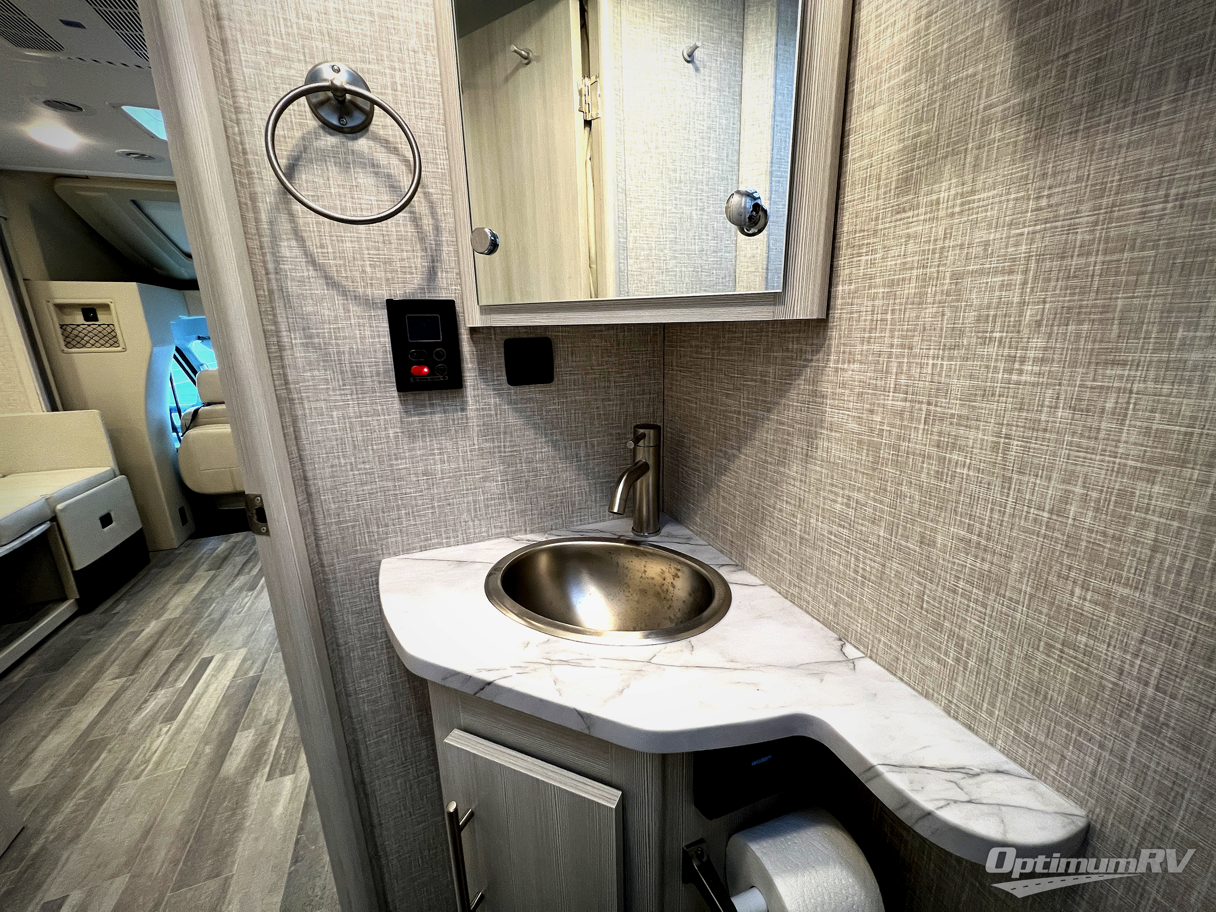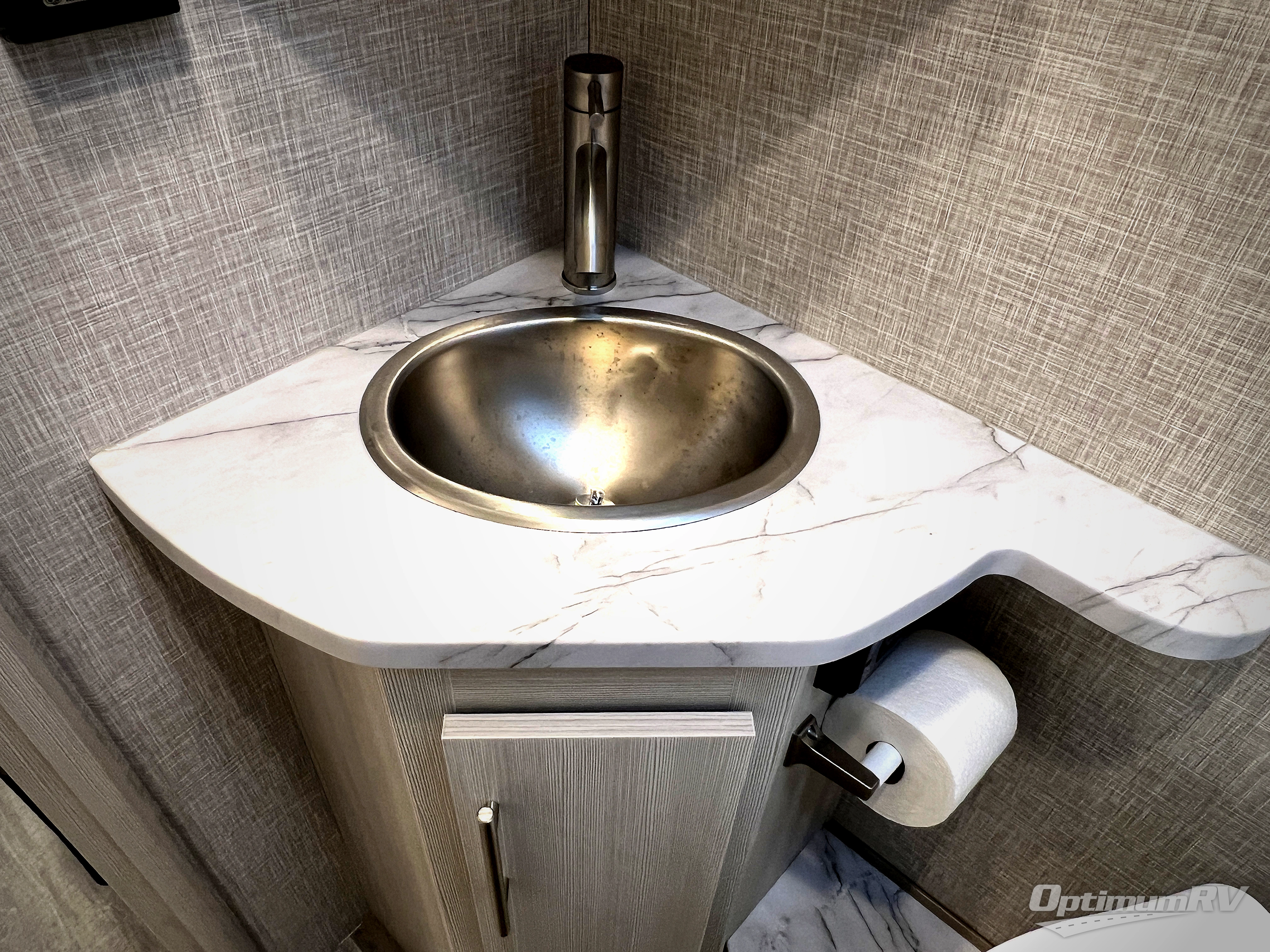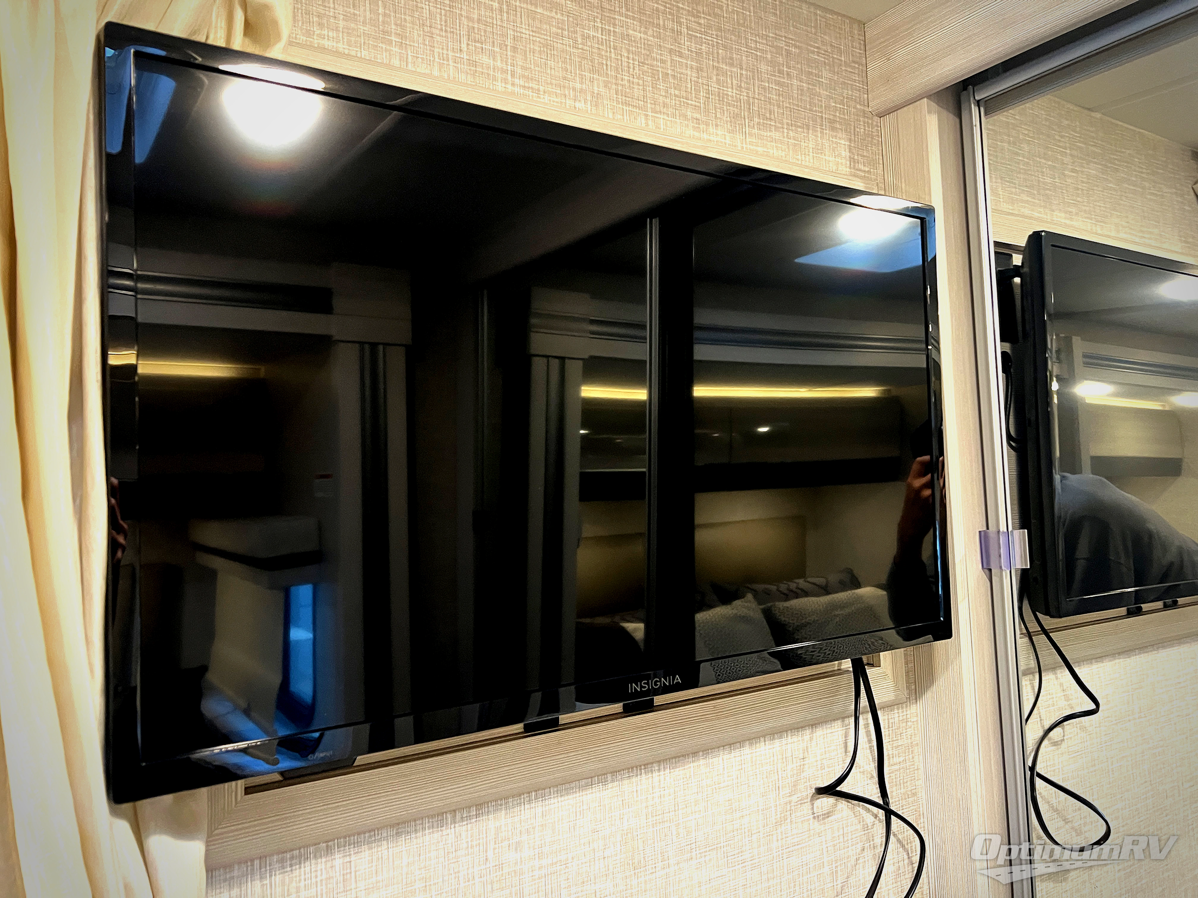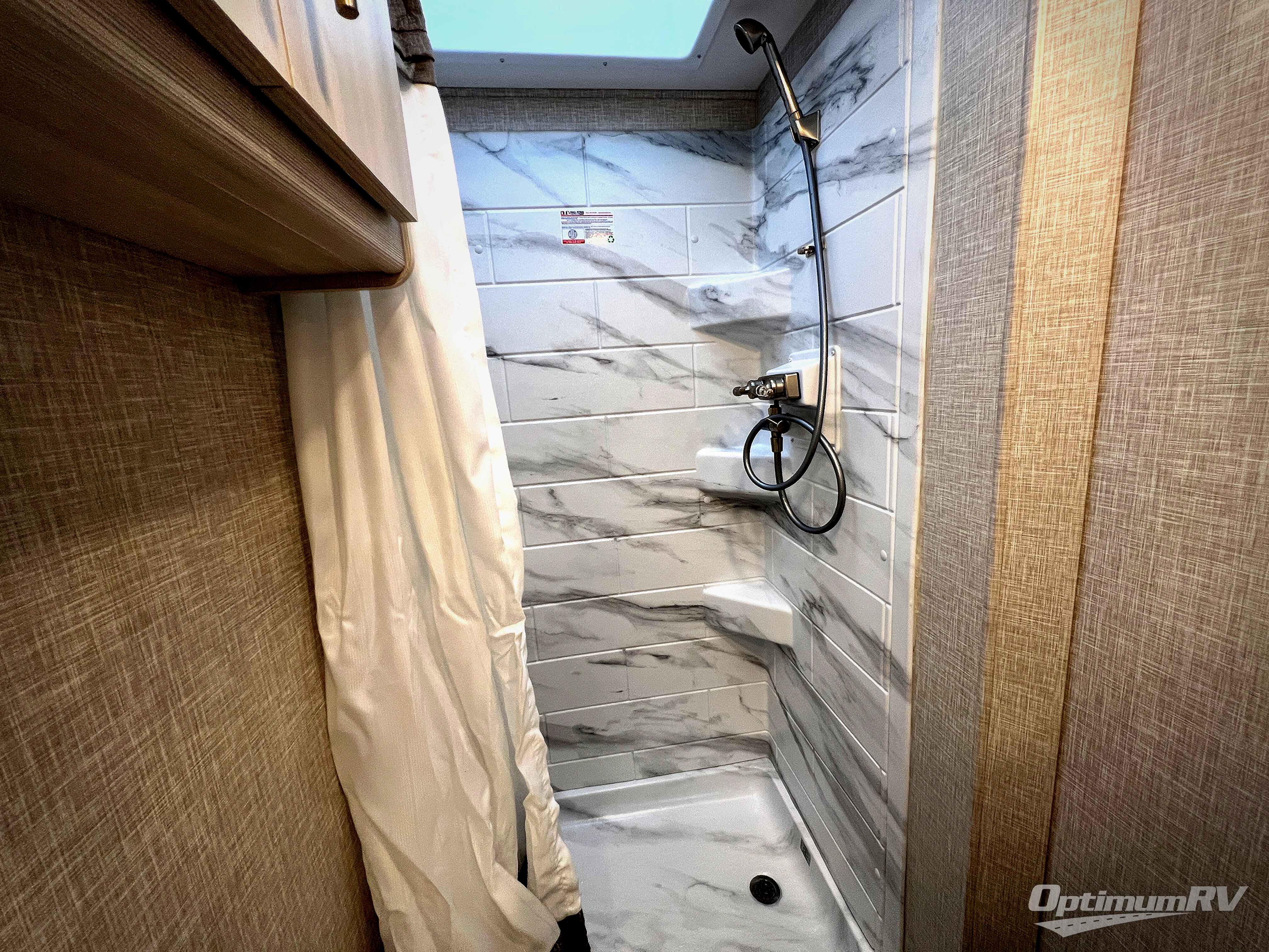 You can tour a local winery or trek up north to find a cozy and secluded camping spot with this Compass AWD Class B+ gas motorhome! All of your needs will be met with the excellent features and amenities included on this coach, like the full bathroom complete with a 24" x 32" shower, three robe hooks, a shower skylight, a foot-flush toilet, and a power bath vent. The kitchen is ready to help you make mobile meals, and the 68" Dream Dinette is the perfect place for eating those meals or playing a game later on. At the dinette table top, you'll find a wireless phone charger with USB plug so that you can charge your phones. There is a privacy curtain that sections off the flip-up RV queen bed, and you'll also find a 32" TV in the bedroom. The second 32" TV is located out in the main living area for everyone else to watch.