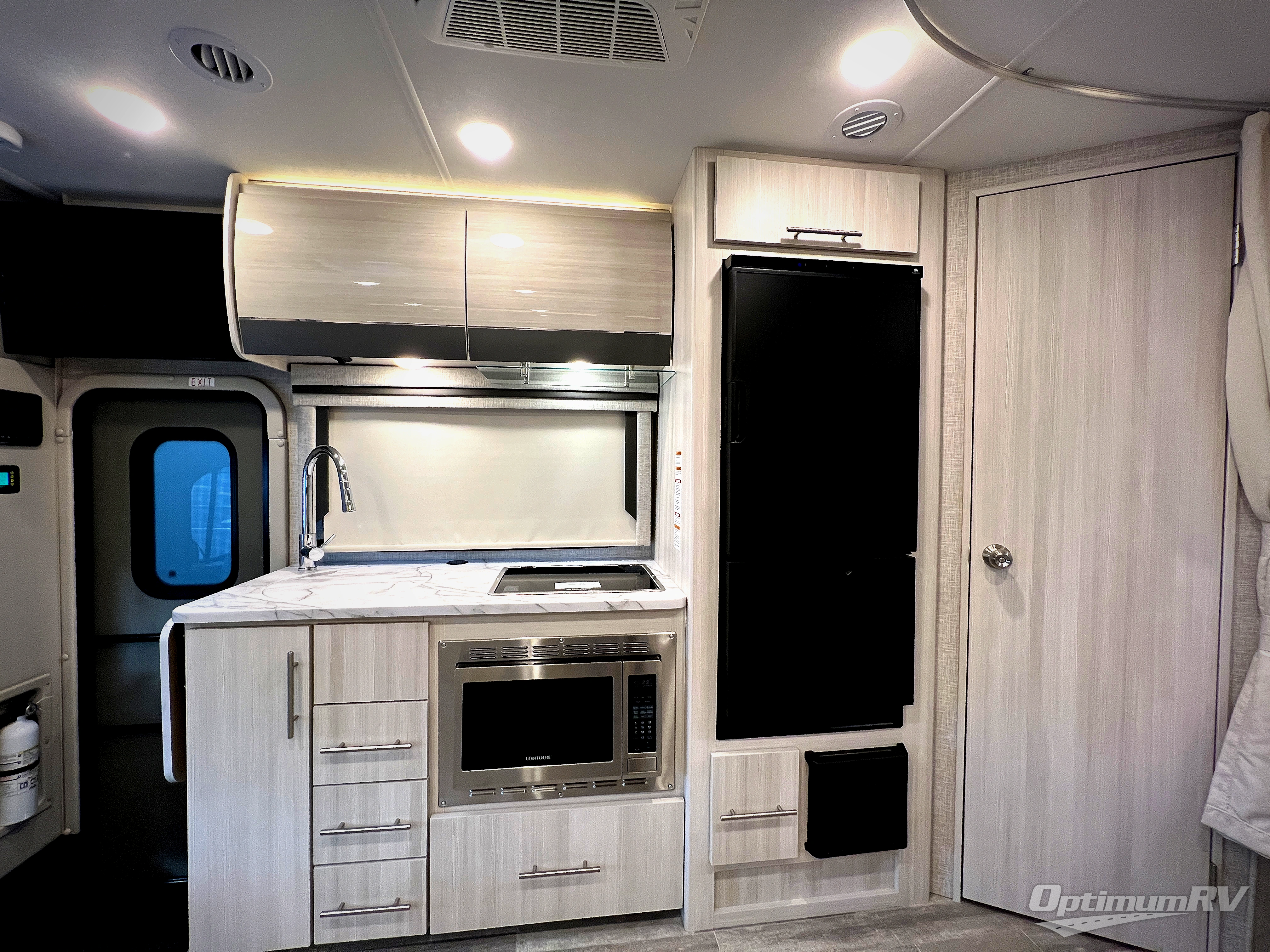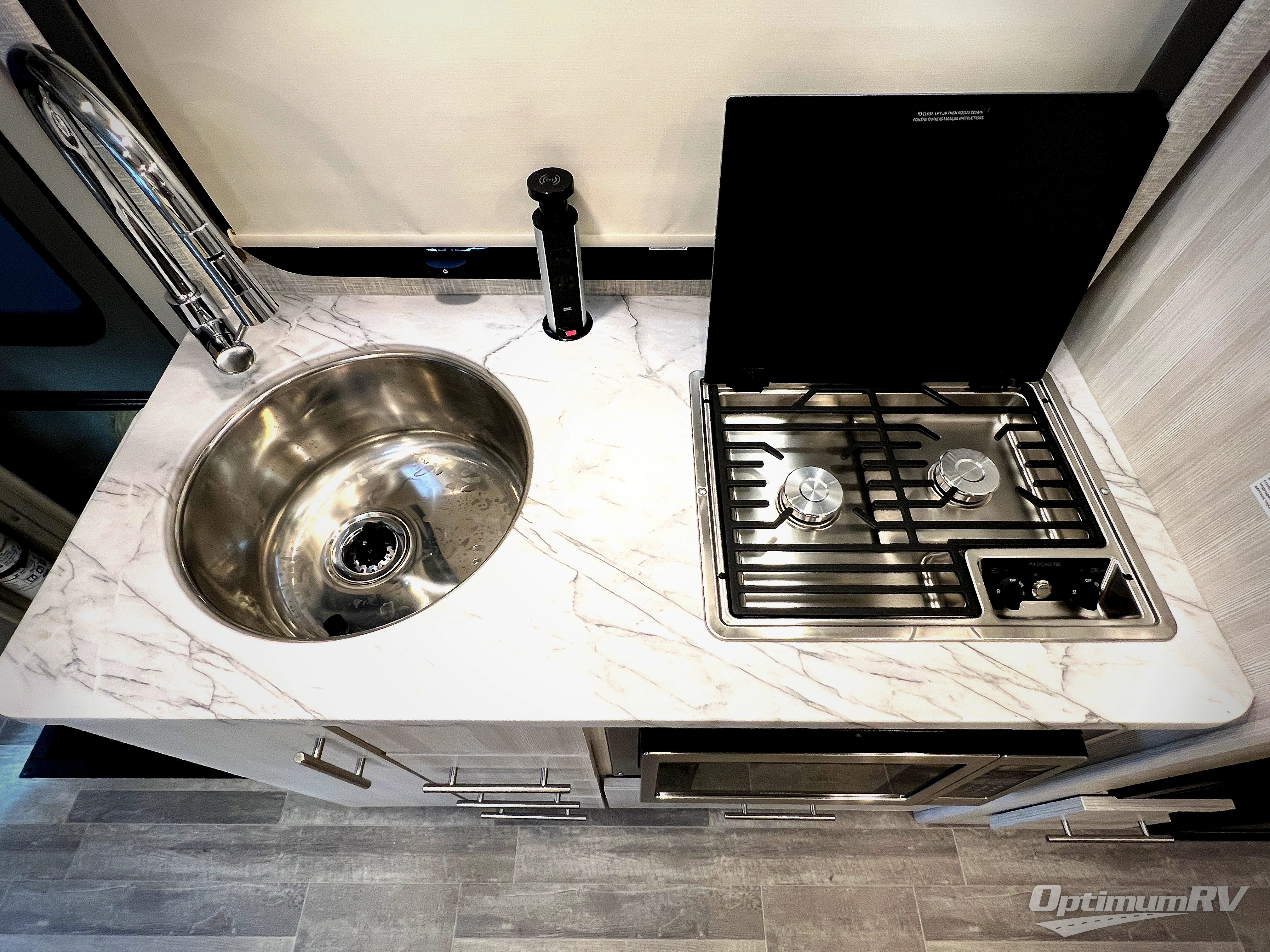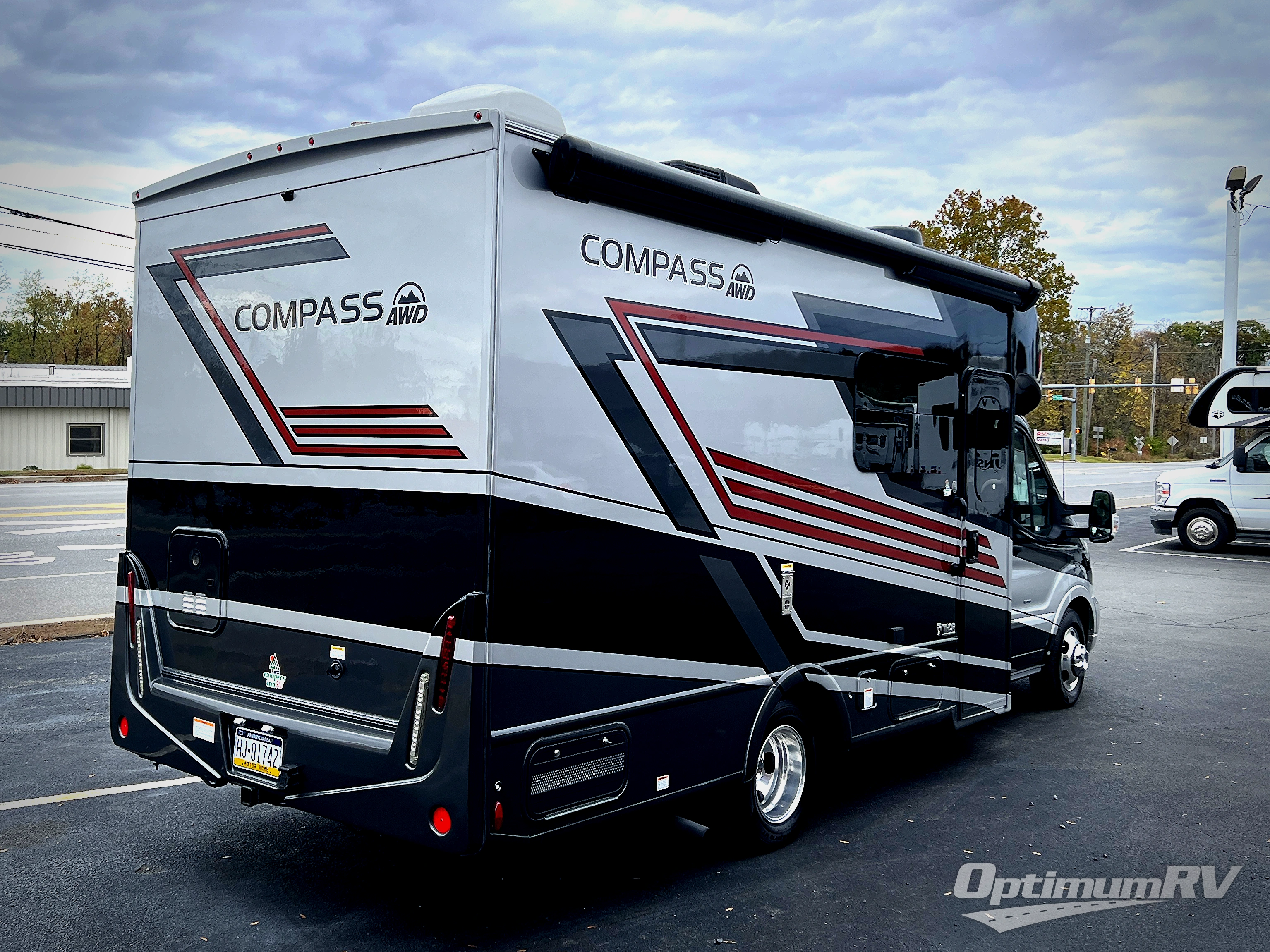 The Thor Motor Coach Compass AWD Class B+ gas motorhome is small but mighty! It includes all-wheel drive, and it is built upon a Ford Transit chassis, 3.5L V6 Eco Boost turbo gas engine, and Ford ten-speed automatic overdrive transmission. The Ford safety features provide excellent care while driving, and you can stay connected to your Compass AWD with the FordPass Connect. The power patio awning with LED lights can be moved out into position with just one touch on your cell phone thanks to the Rapid Camp+ multiplex control system. You will have a 100W solar panel with controller, a 15,000 BTU air conditioner, a Winegard ConnecT 2.0 Wi-Fi/4G/TV antenna, and a tankless water heater as some of the top electrical and plumbing features.