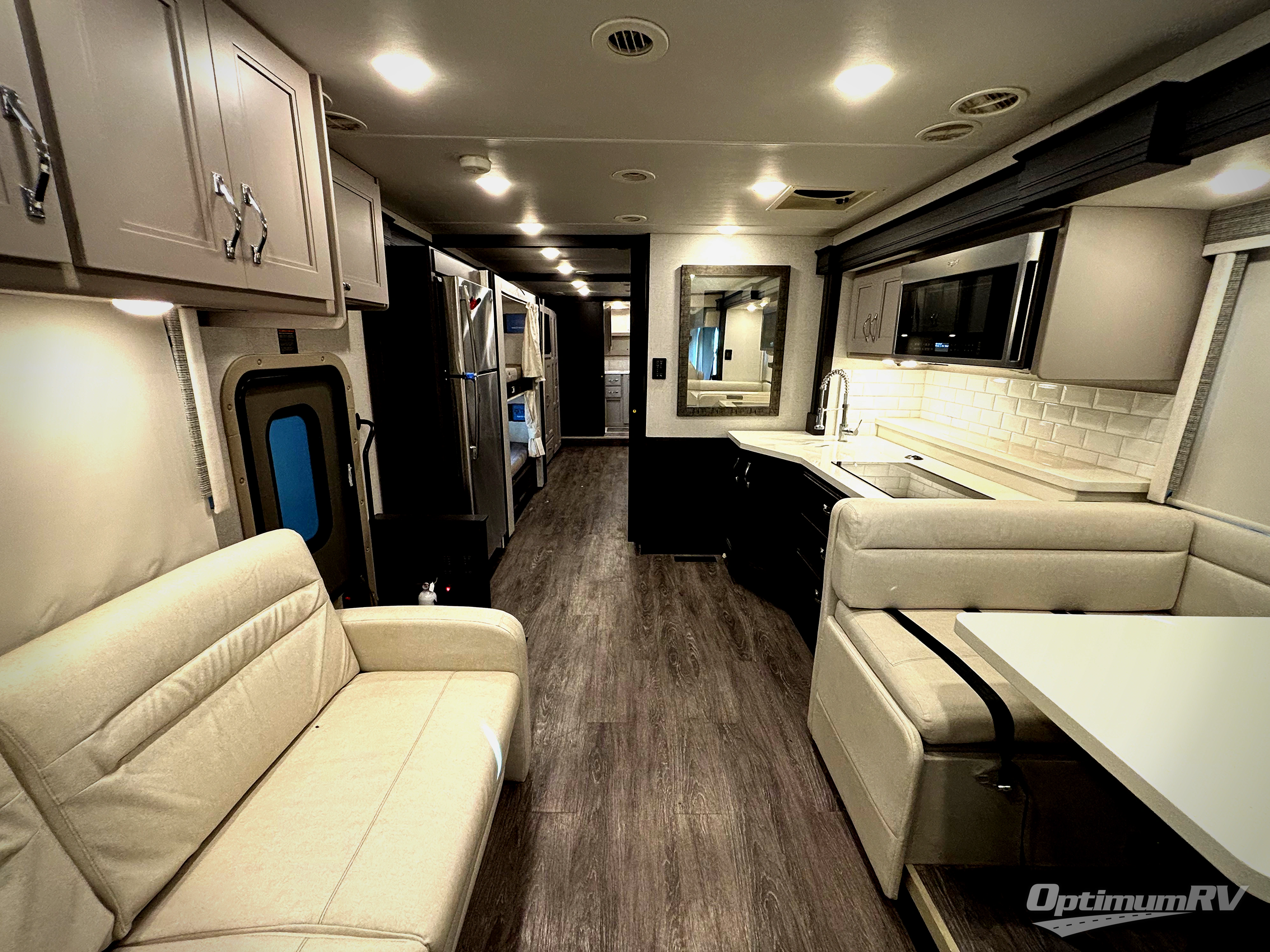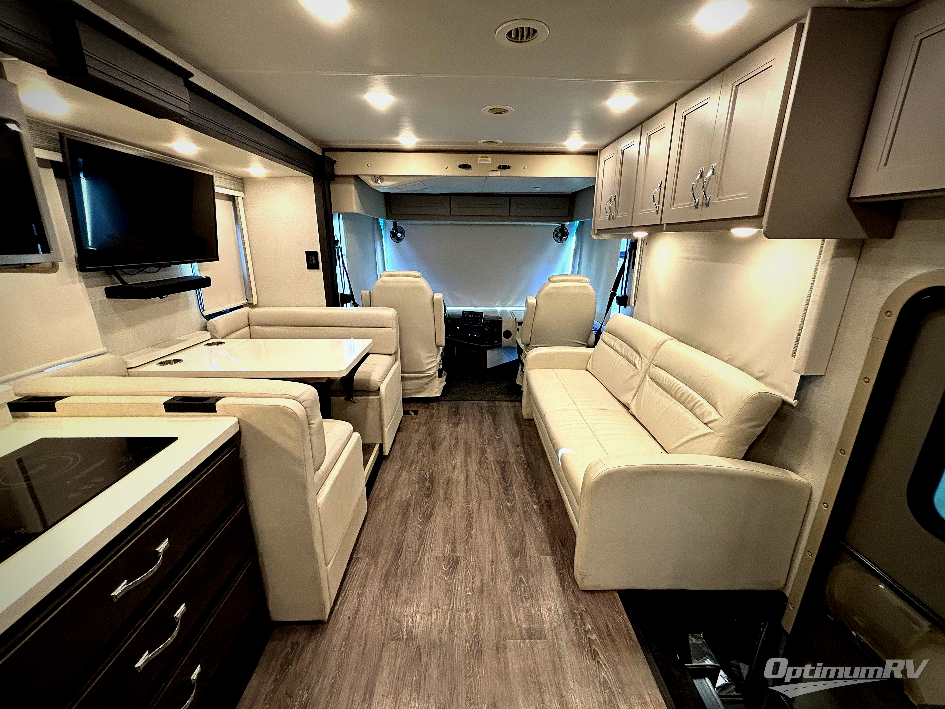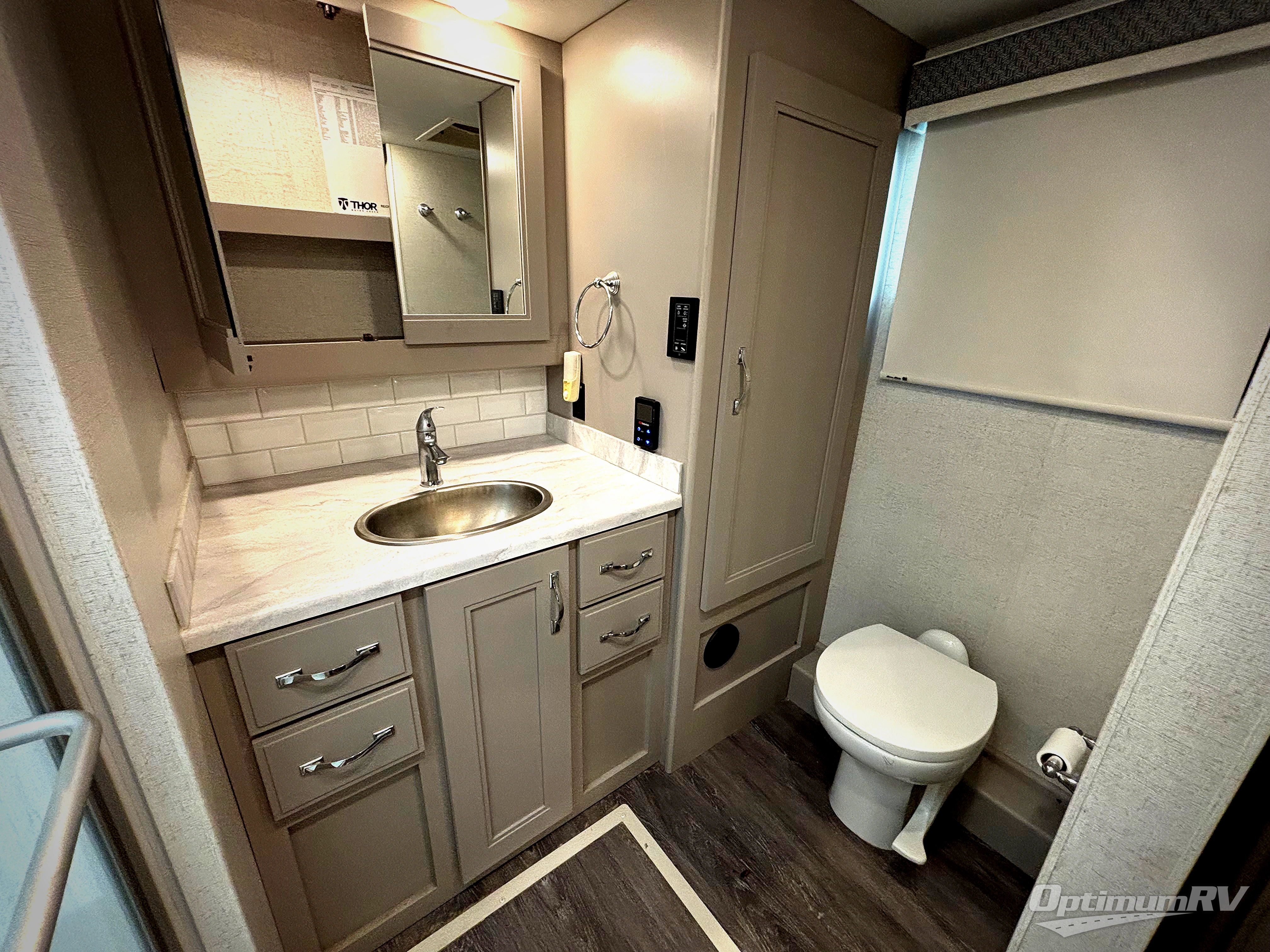Each journey you take with a Palazzo Class A diesel motorhome by Thor Motor Coach is made smooth thanks to the Air-Ride suspension, the Sachs shock absorbers, and the Atlas foundation. You'll enjoy hassle-free set up thanks to the Rapid Camp + multiplex wiring control system, and there is a Winegard ConnecT 2.0 WiFi/4G/TV antenna to keep you connected to the outside world as you're away from home. The exterior of the Palazzo features lighted storage compartments and a basement pass-through, a 40" LED TV, and invisible front paint protection to withstand the elements. You will fall in love with the interior that includes Studio Collection cabinetry, luxury vinyl tile flooring, leatherette furniture, solid surface countertops, plus many more comforts!
