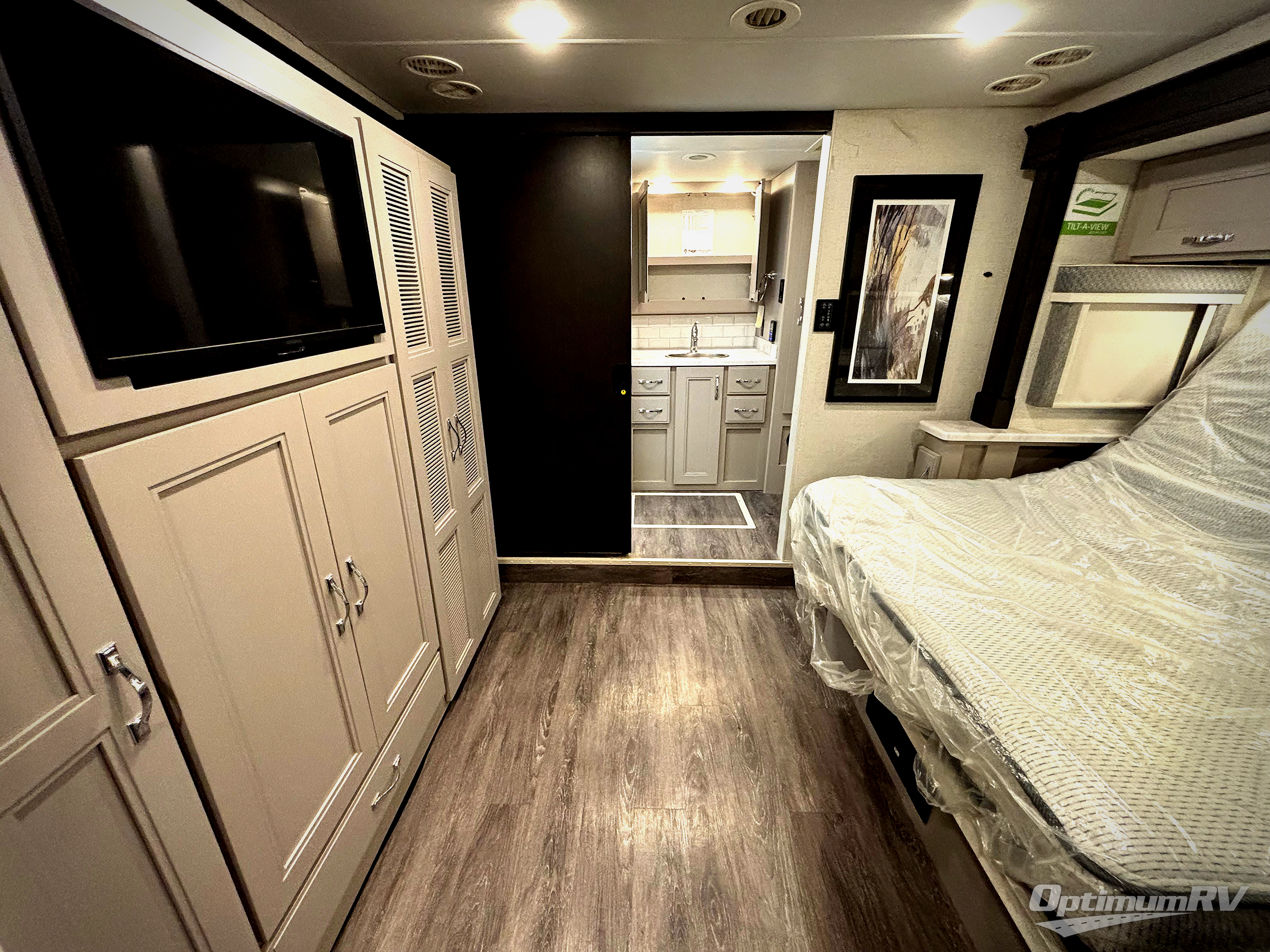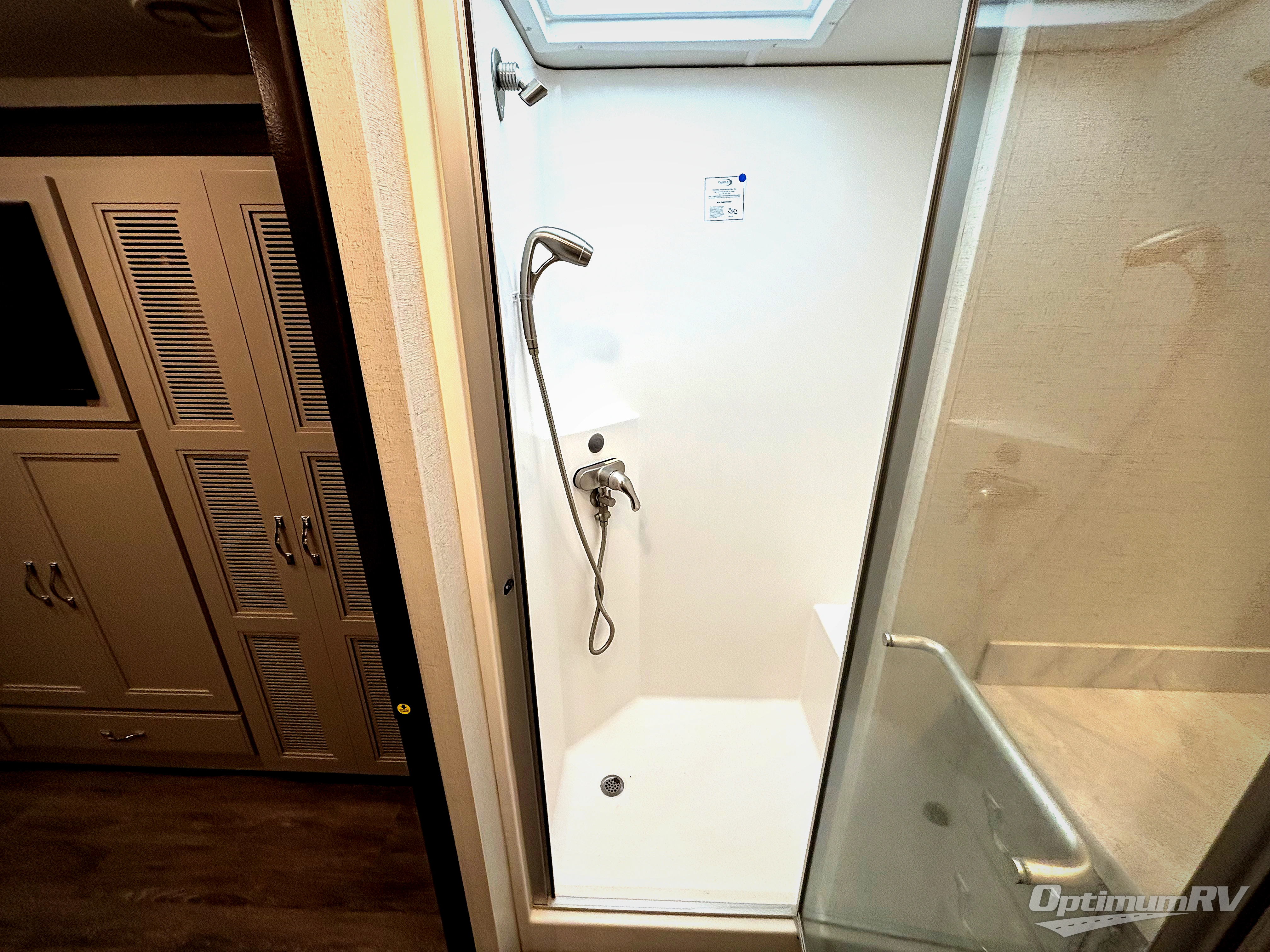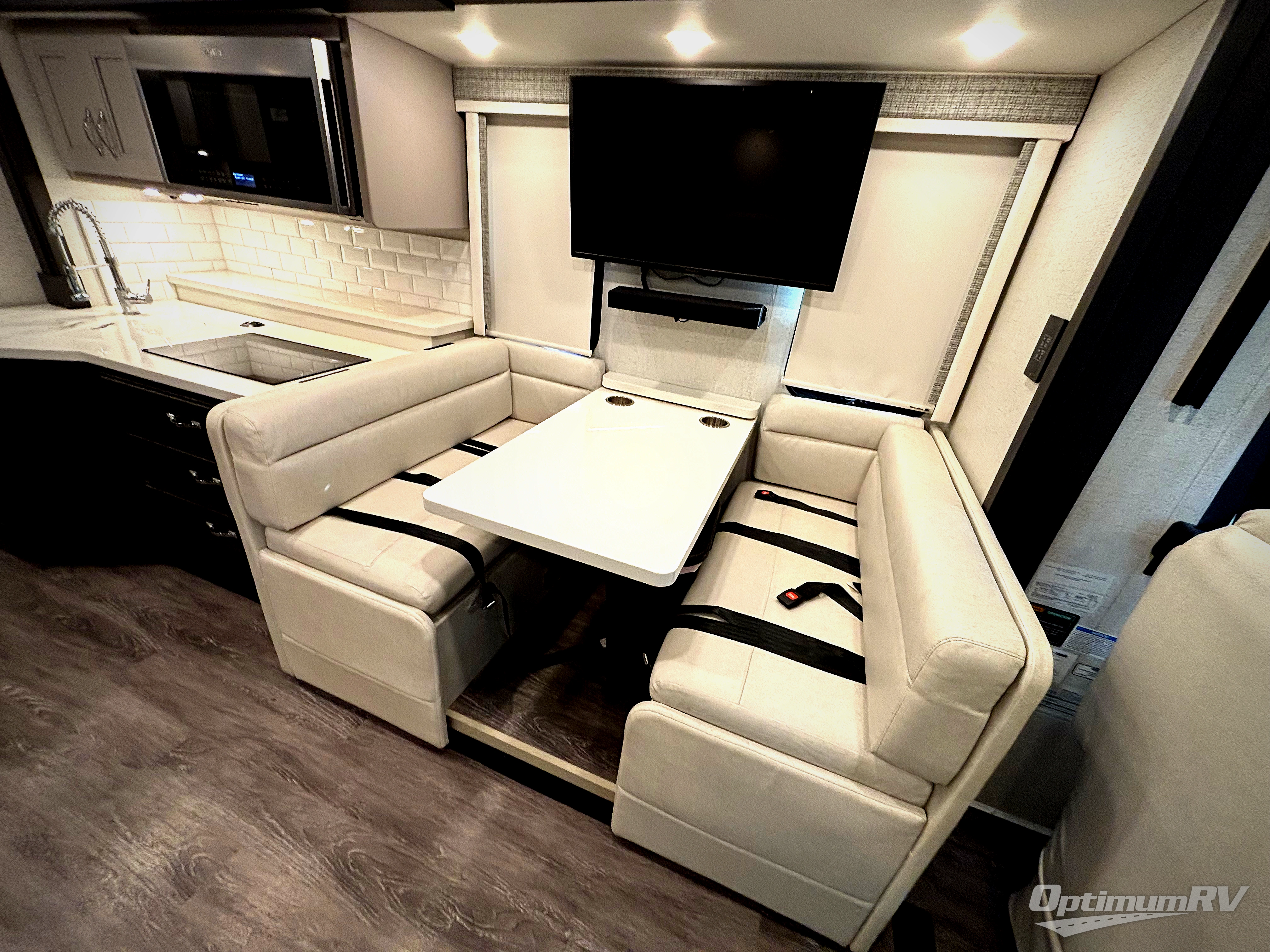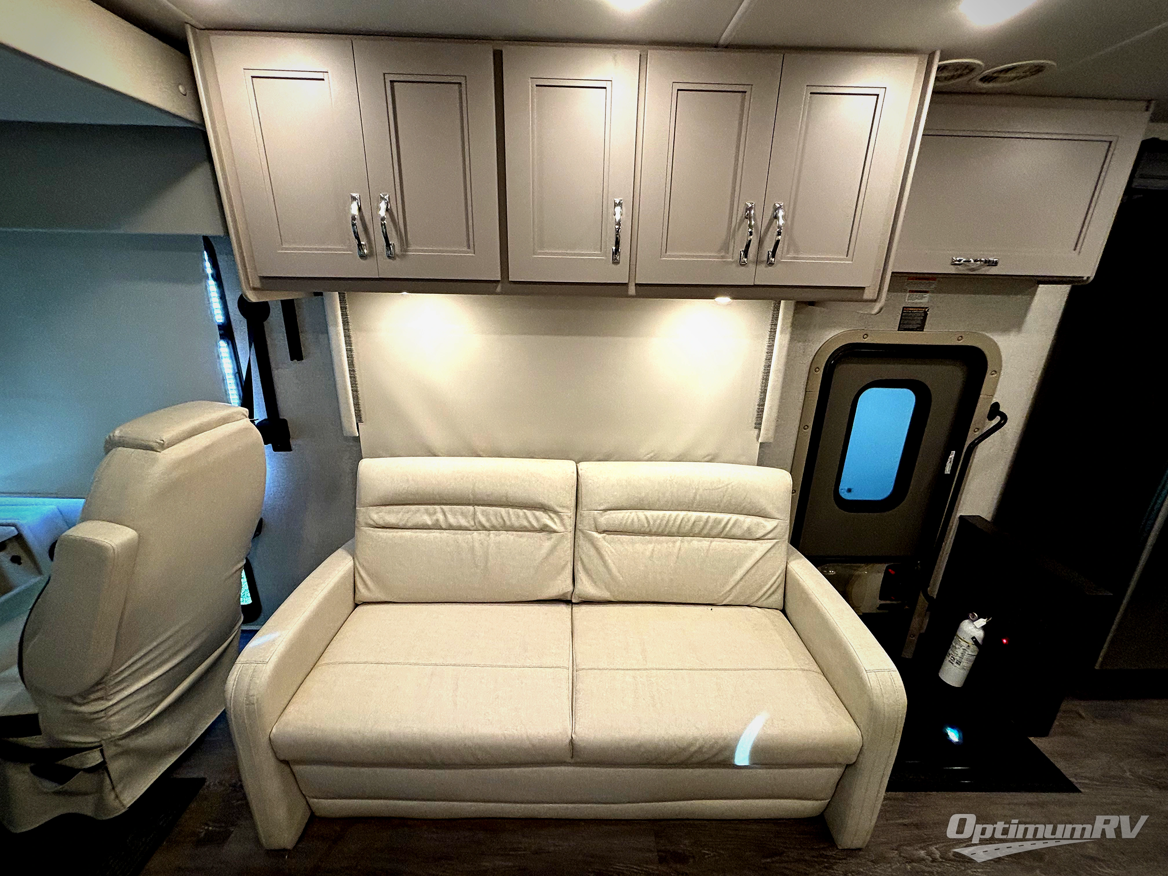 Each journey you take with a Palazzo Class A diesel motorhome by Thor Motor Coach is made smooth thanks to the Air-Ride suspension, the Sachs shock absorbers, and the Atlas foundation. You'll enjoy hassle-free set up thanks to the Rapid Camp + multiplex wiring control system, and there is a Winegard ConnecT 2.0 WiFi/4G/TV antenna to keep you connected to the outside world as you're away from home. The exterior of the Palazzo features lighted storage compartments and a basement pass-through, a 40" LED TV, and invisible front paint protection to withstand the elements. You will fall in love with the interior that includes Studio Collection cabinetry, luxury vinyl tile flooring, leatherette furniture, solid surface countertops, plus many more comforts!