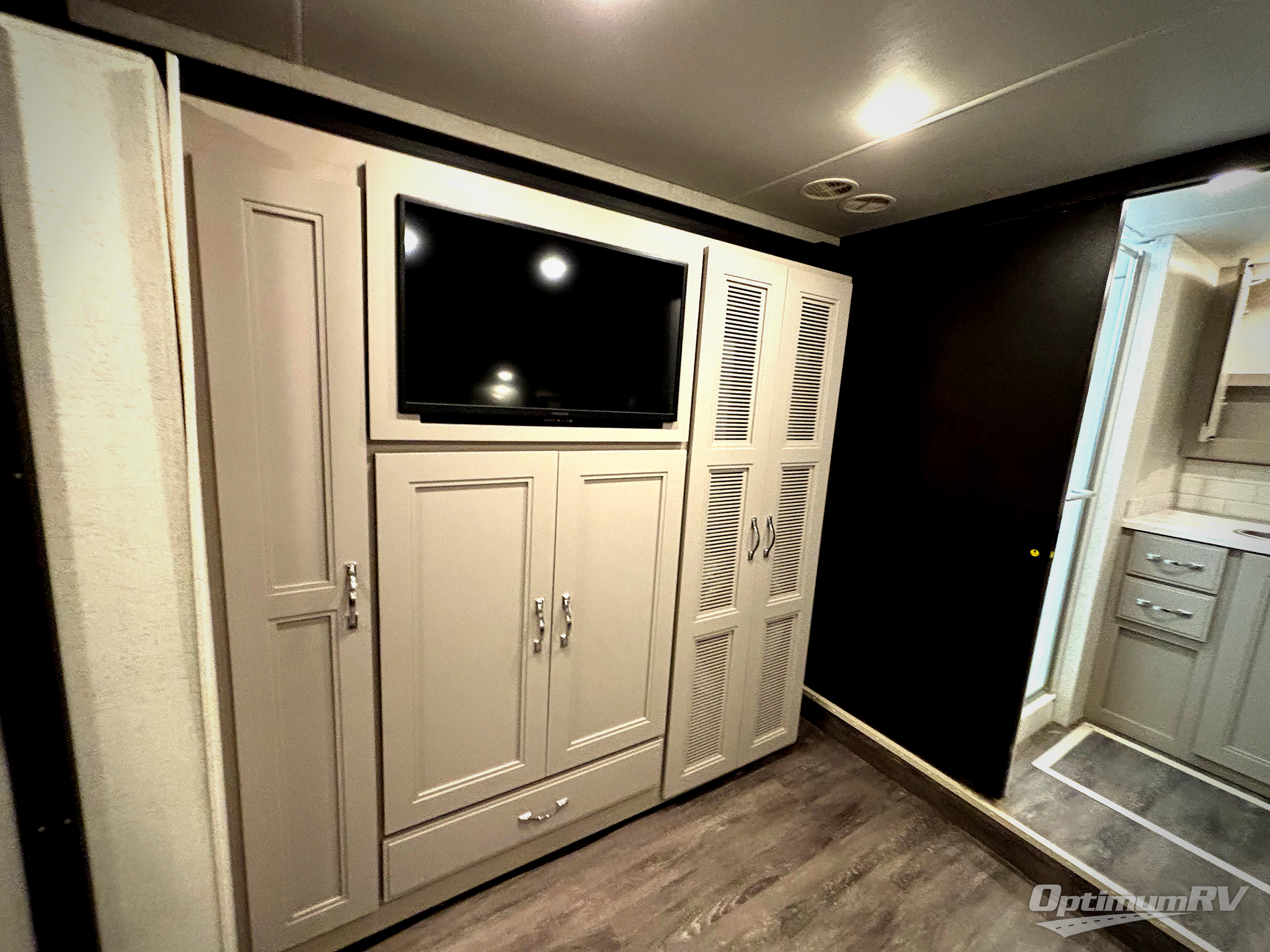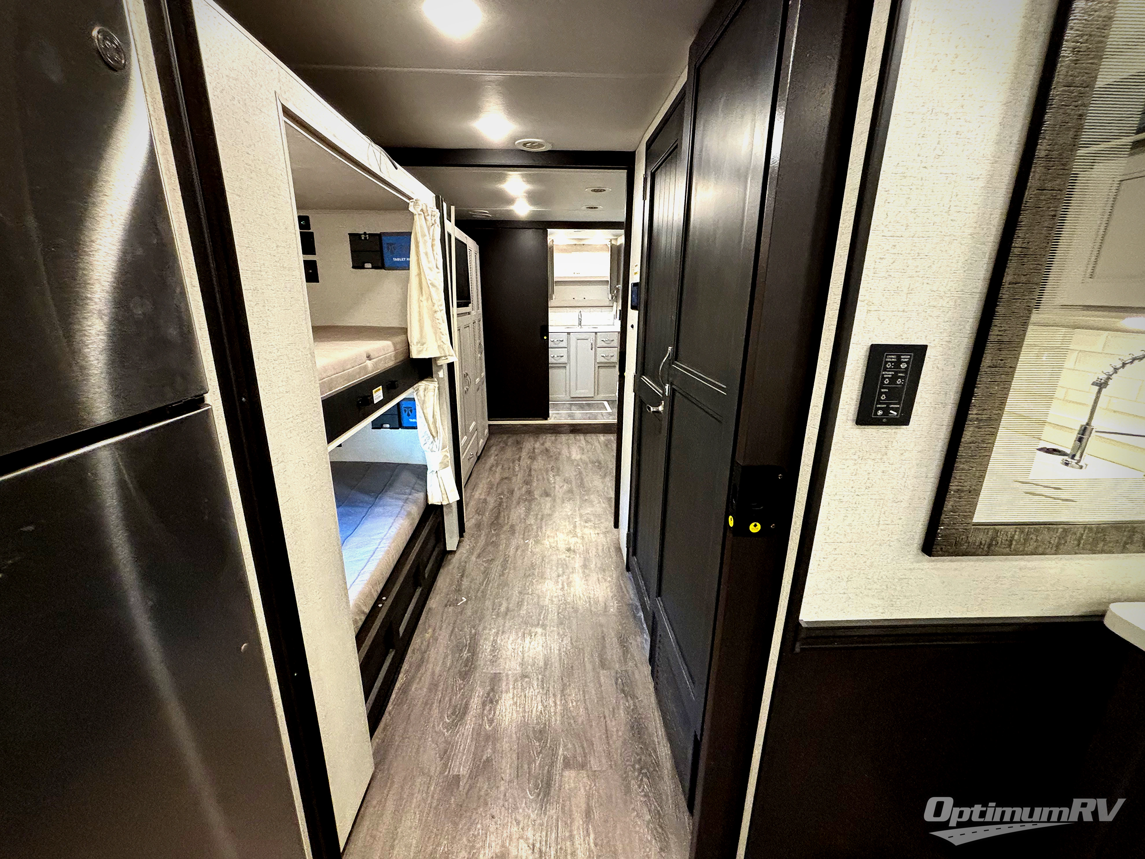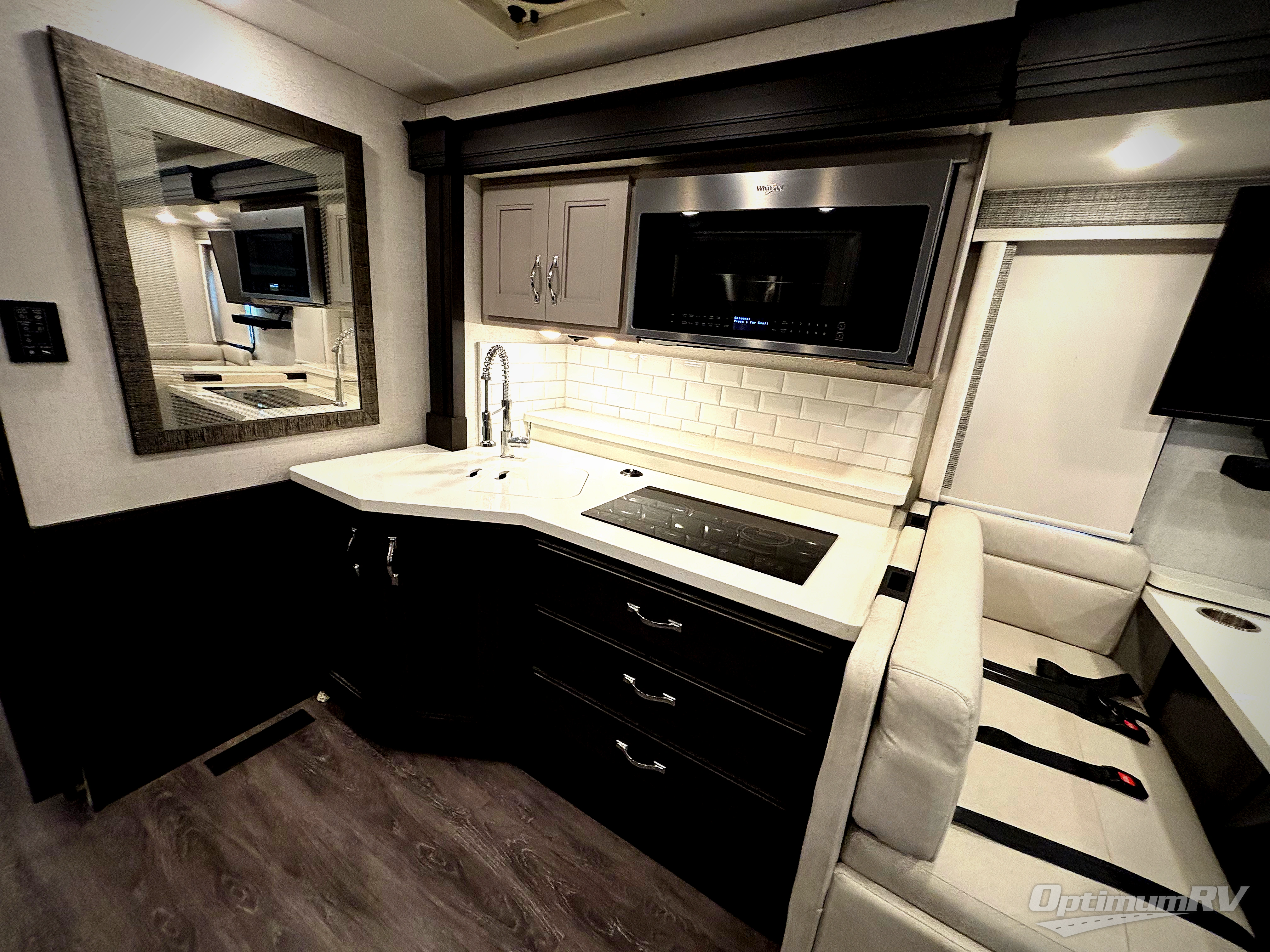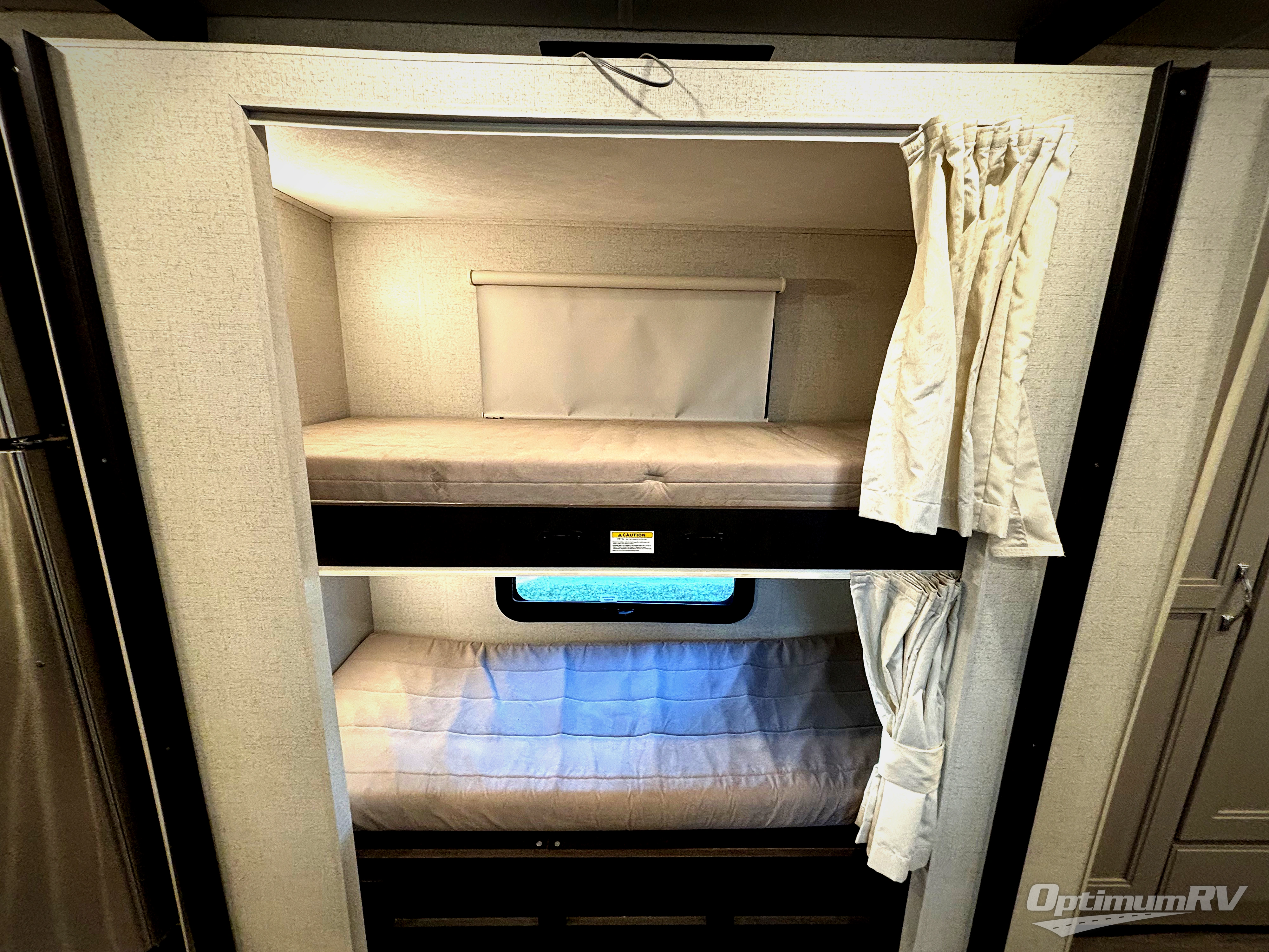 Traveling with a large group? This coach with two full baths, bunk beds, and triple slides will meet all your needs. You'll find comfortable seating space on the jackknife sofa and Dream Dinette, and the chef can make meals on the two burner electric induction cooktop while everyone visits. Your guests or the kids will love the bunk beds, plus there is an additional overhead bunk with a 48" x 74" sleeping area. This model includes a 39" LED Smart TV in the living area, a 32" LED TV in the bedroom, plus a 40" exterior LED TV for all your entertainment needs.