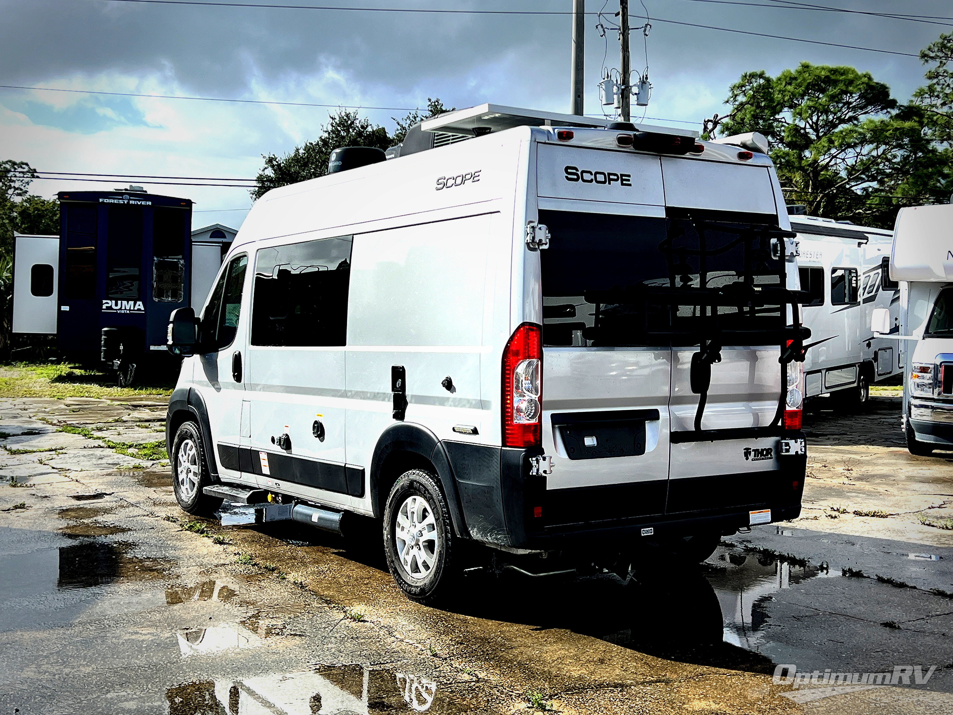 Each one of these Thor Motor Coach Scope Class B gas motorhomes are built for those who want to explore the great outdoors in comfort! They are front wheel drive and constructed with a RAM Promaster 1500 XT chassis, plus a 3,500 lb. trailer hitch with 4-pin connector so you can haul even more items with you. The side steps make it easier to enter and exit the units, and the entryway screen door is an added bonus. The single door 12V electric refrigerator is powered directly from the coach batteries which are charged by the quiet Onan® RV QG 2800 gas generator. You will also enjoy the residential vinyl flooring, premium window privacy roller shades, pressed countertops in the kitchen, and Euro-style upper cabinet doors for added comfort!