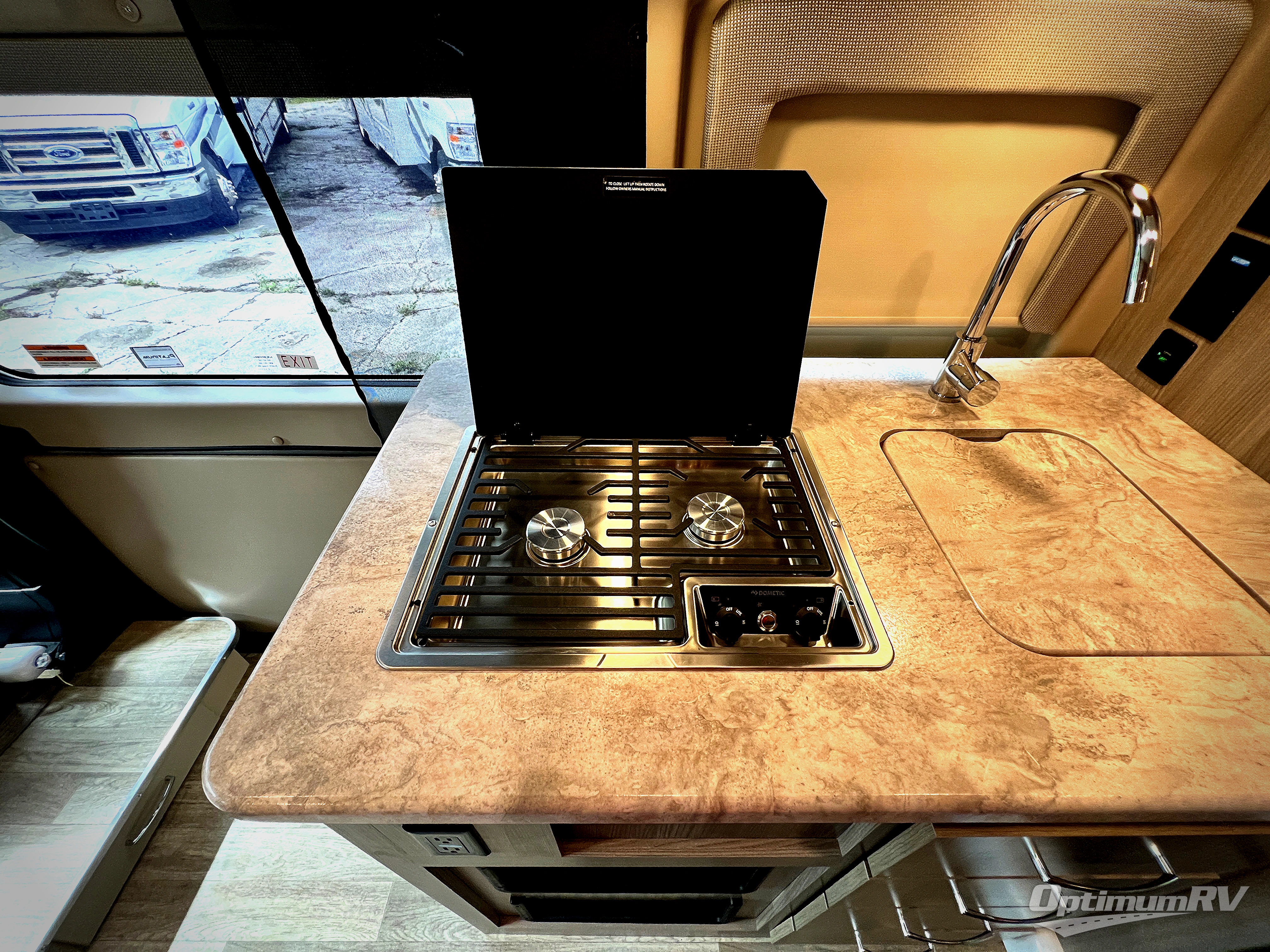 You can go wherever your heart desires with this motorhome! The rear wet bath adds comfort and convenience, plus there is storage to keep your towels close. You can prepare home cooked meals while at the campsite or cook some burgers for a tailgate with the portable cooktop while enjoying a cold beverage kept in the single door 12V electric refrigerator. The swivel captain's chairs are not only comfortable for driving, but also for socializing with guests. The 72" x 47" pull out bed has a removable table and is across from the electronics cabinet which has a HDMI cable and USB charging port.