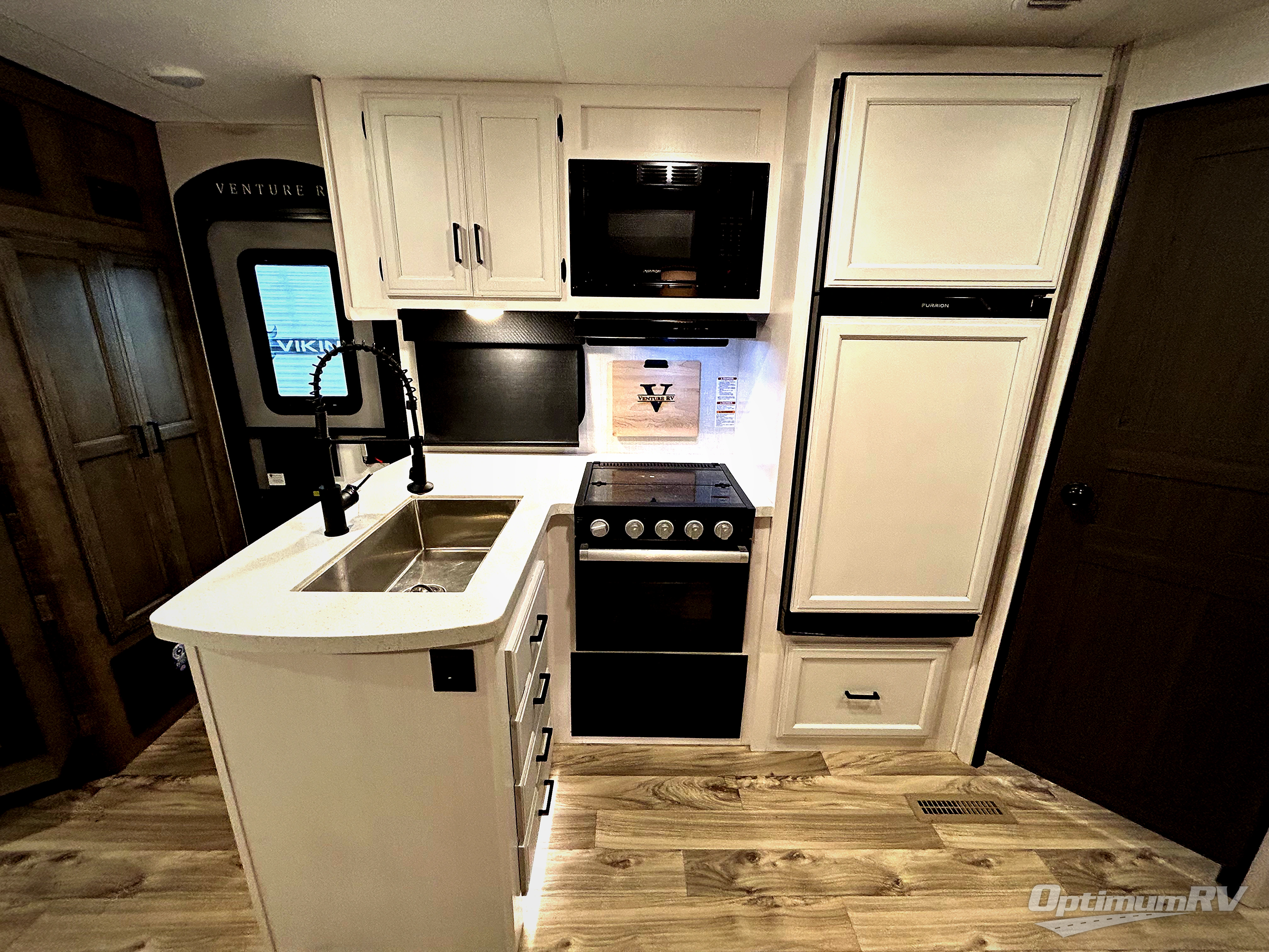 An elegant design and new features come with every one of these Venture RV SportTrek Touring Edition travel trailers! The NXG Huck bolt frame holds these units together and a walkable roof covers them. Heads will turn down the highway and at the campsite with an upgraded graphics package and a painted fiberglass front cap with integrated LED light. The exterior pass-through storage area has slam latch baggage doors with magnetic catches so you don't have to worry about them closing on you and a motion activated light to see your items clearly even at night. Luxury abounds throughout these units, especially with the mandatory Interior Luxury package which comes with solid surface kitchen countertops, designer valances with fabric nightshades, two 30" frameless fireplaces, and Beauflor wood plank flooring that is easy to clean. Come find your favorite model today!