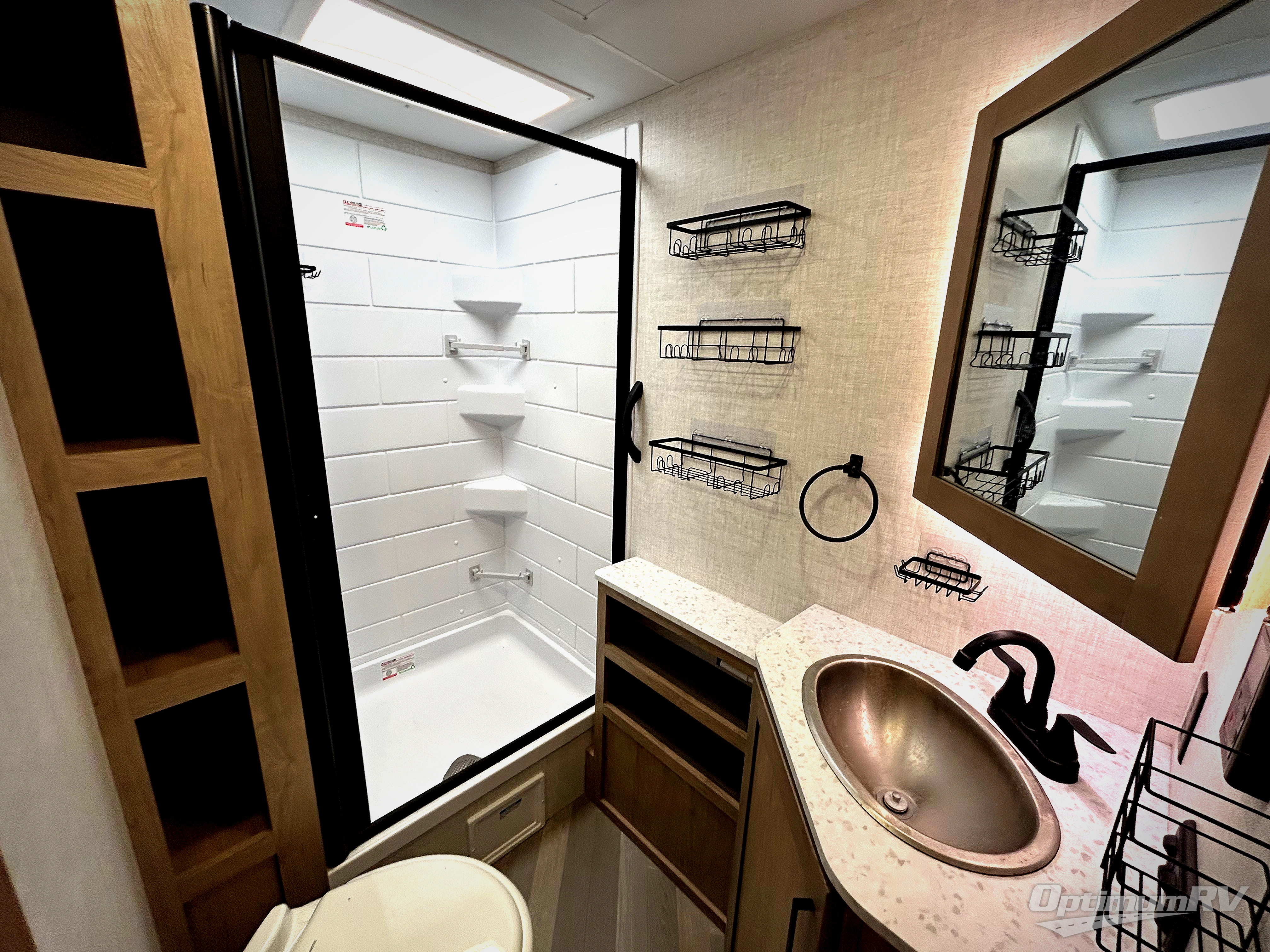 With any E-Series travel trailer by Ember RV you will enjoy a lightweight RV with all the "Essentials" needed for memorable trips in the great outdoors! Each model is constructed with durable laminated Azdel Onboard composite walls, a full walkable roof with a one-piece Tufflex PVC roofing material, and a gel-coated fiberglass exterior. The Dexter axles with E-Z lube hubs and forward self-adjusting electric brakes plus Goodyear Endurance tires will provide a smooth tow from home to campground. You will appreciate the Congoleum DiamondFlor "carpetless" interior that is easy to clean, and the hardwood framed cabinet doors will create a more residential feel. Each model includes a tankless on-demand water heater for endless hot showers and an 18,000 BTU Max Cool "Whisper Quiet" A/C, which is the largest single A/C in its class! If you're looking for off-grid capabilities, you might want to choose the optional Off-Grid Solar Package with 400 total watts of solar panels, a 2,000W Pure Sine wave inverter, and a Victron MPPT solar controller!