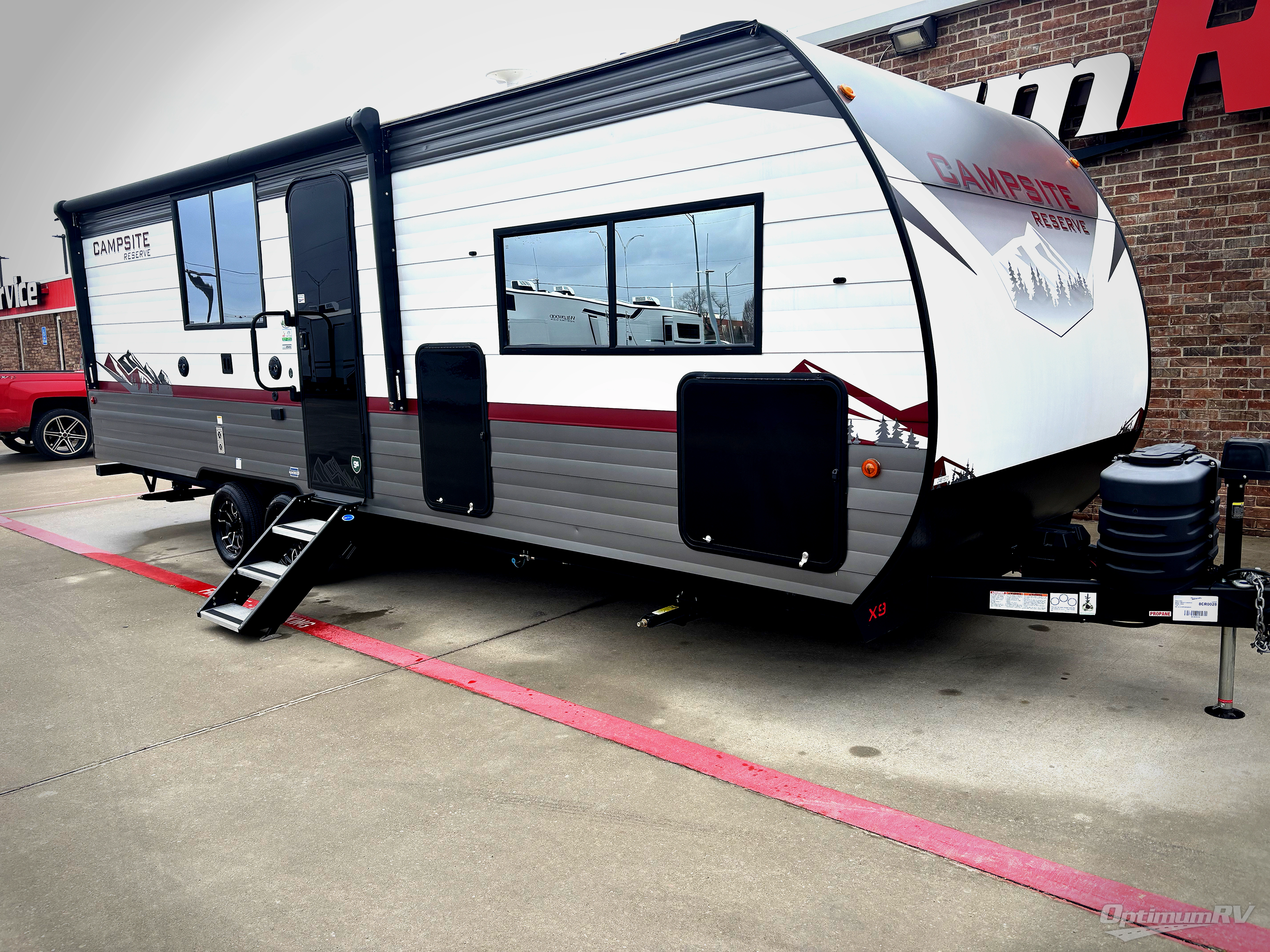 With any Campsite Reserve travel trailer by Forest River, you will enjoy comfort and convenience at every turn! They are built with a diamond plate front, max size square windows, and a one-piece PVC roof for added durability. The mega pass-thru storage will allow you to store camp gear, and the outside shower will come in handy when rinsing off your hiking boots. There are also NextGen stabilizer jacks and stable steps for added stability. Inside, you'll find convenient storage throughout, full bath and kitchen amenities, plus cozy seating and sleeping spaces to name a few comforts!