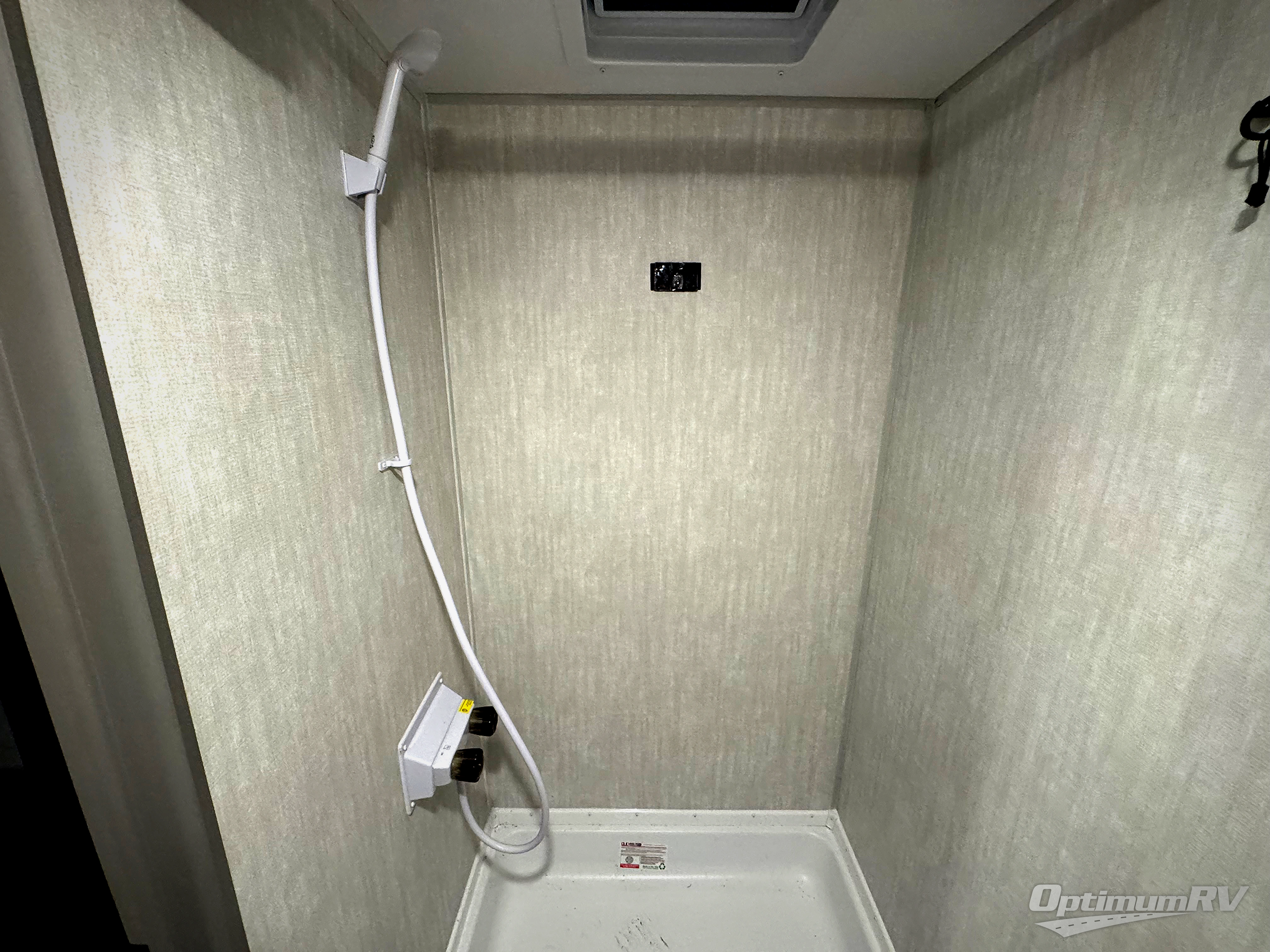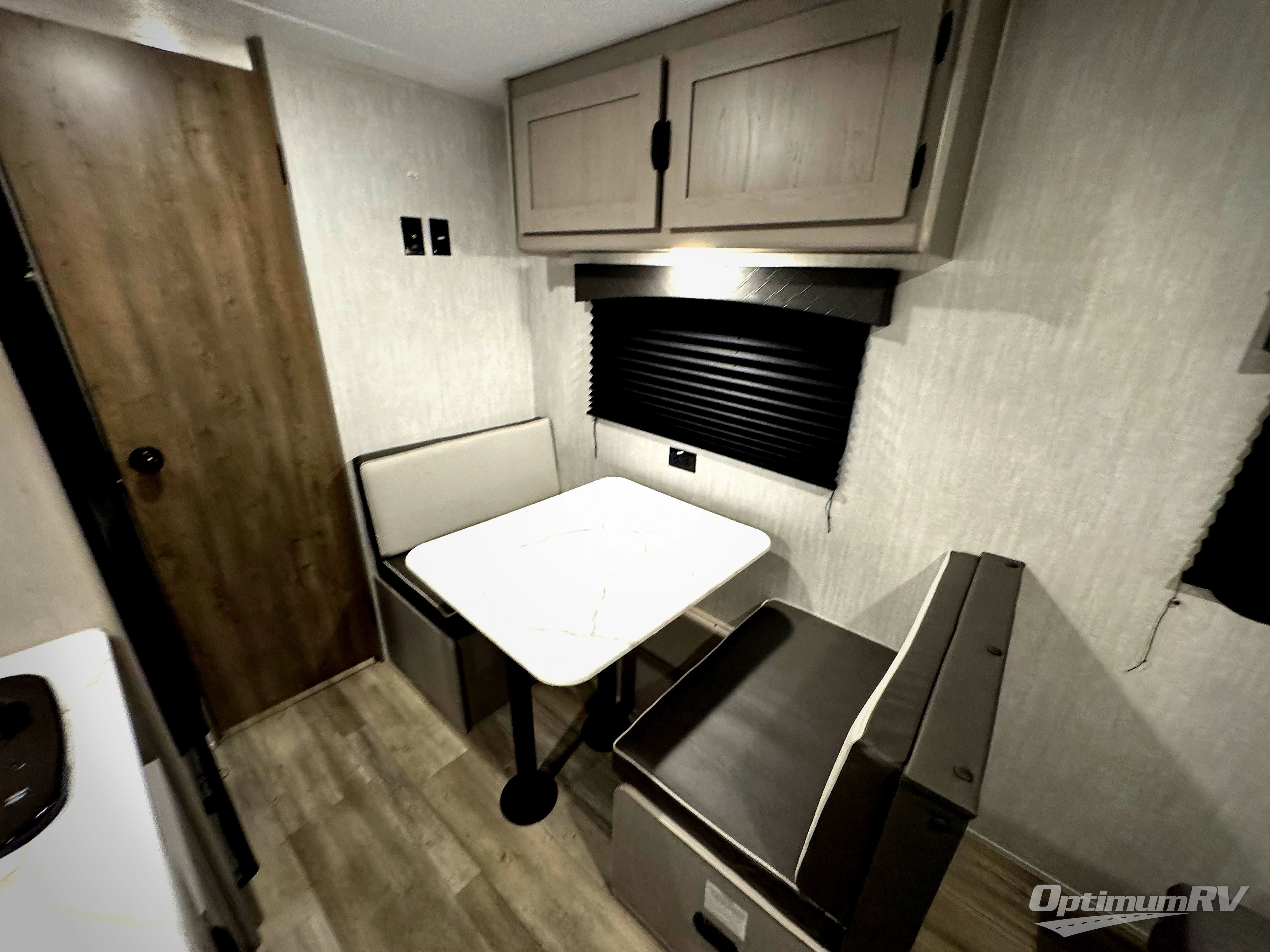 This Viking 3K Series is a cozy couples trailer or one perfect for a small family of three or four featuring a queen bed up front with overhead storage. The booth dinette also features additional storage and can be converted to sleeping space for one or two more depending on size. You will have an induction cooktop and sink with cover to provide a bit more counter space when the sink is not being used. A rear full bath including a 24" x 36" shower, toilet, and vanity with a sink, as well as an overhead medicine cabinet for your toothbrushes and other toiletries. On the outside, a 10' power patio awning will provide added protection from the sun and rain giving you added living space outside to enjoy with camp chairs. And, a front pass-through compartment for your outdoor camping gear, plus so much more!