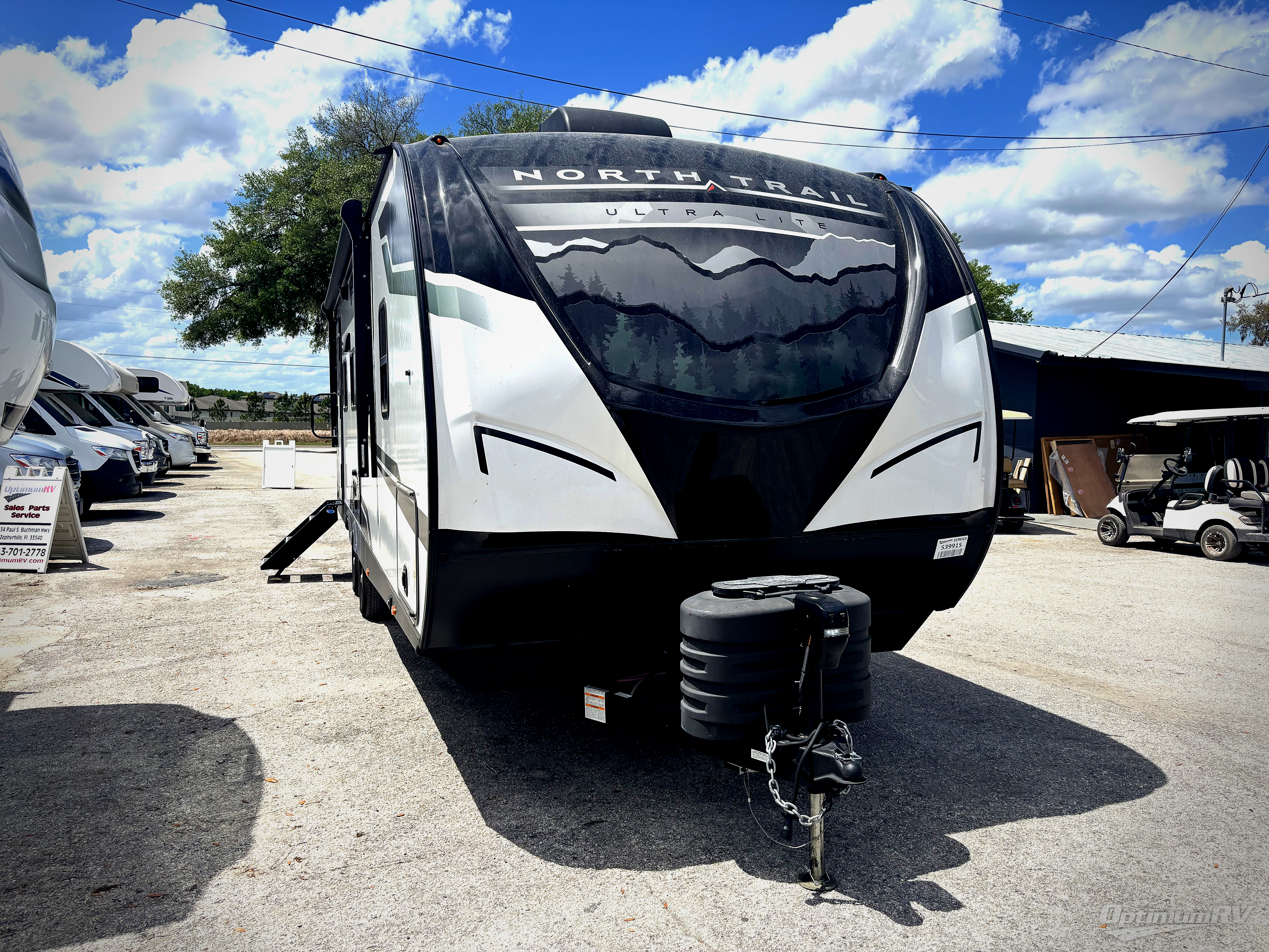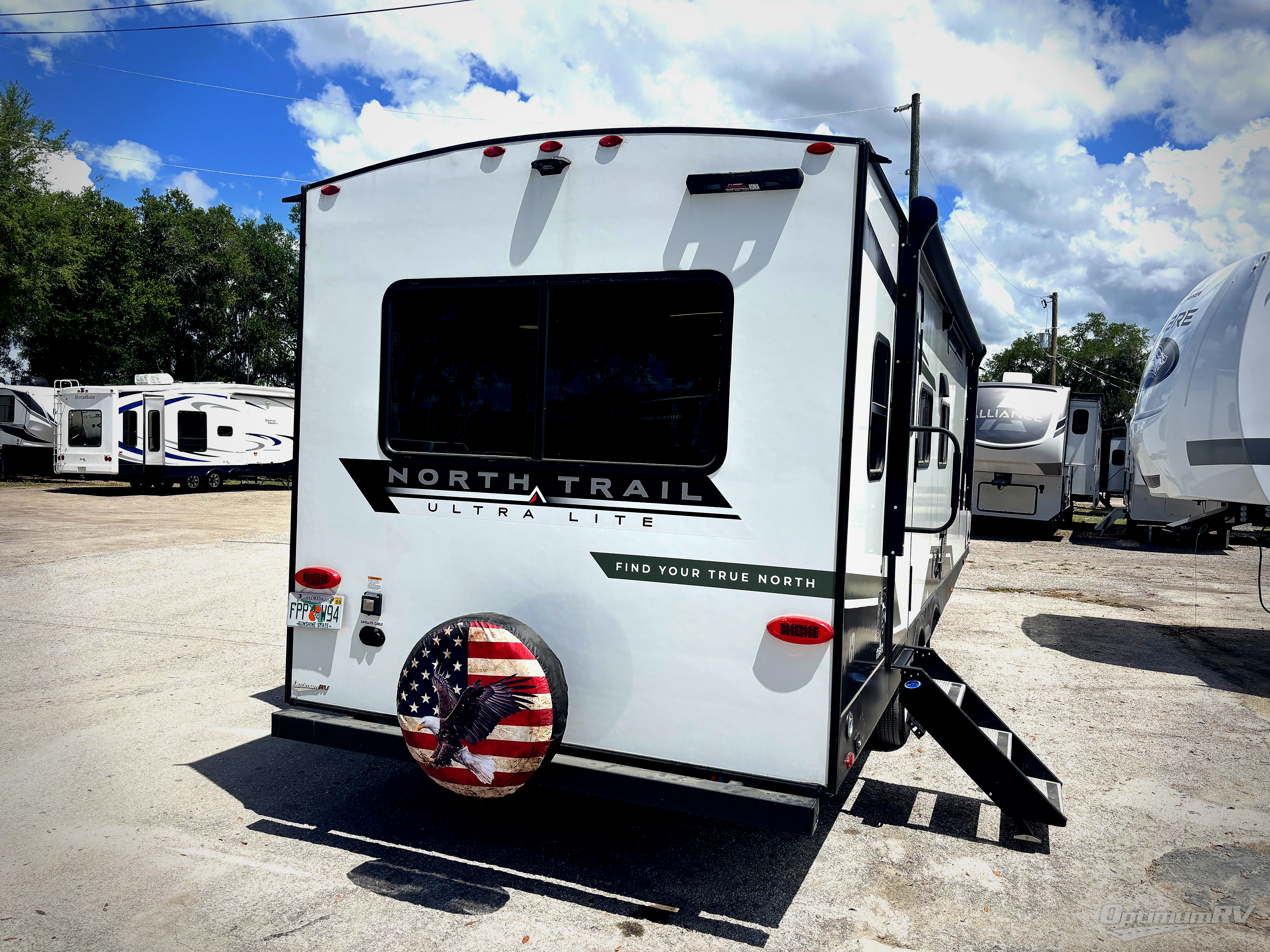 When you choose a North Trail Ultra-Lite travel trailer by Heartland you are choosing comfort, convenience, and quality craftsmanship at its best. The block foam brick insulation, enclosed and heated underbelly, plus Weather Guard thermal protection mean you can camp all year around. Each model features a Wide Trax suspension for a smooth ride, and the backup camera prep and solar prep make camping that much easier if you choose those options. Some of the other exterior features you will appreciate are the outside shower, the power stabilizer jacks and power tongue jack, and the outside speakers to keep the party going. Head inside to find stainless steel appliances, oversized windows, and premium flooring that is tear, slip, mold, mildew and cold crack resistant! You can't beat a North Trail travel trailer. Choose your favorite floorplan today!