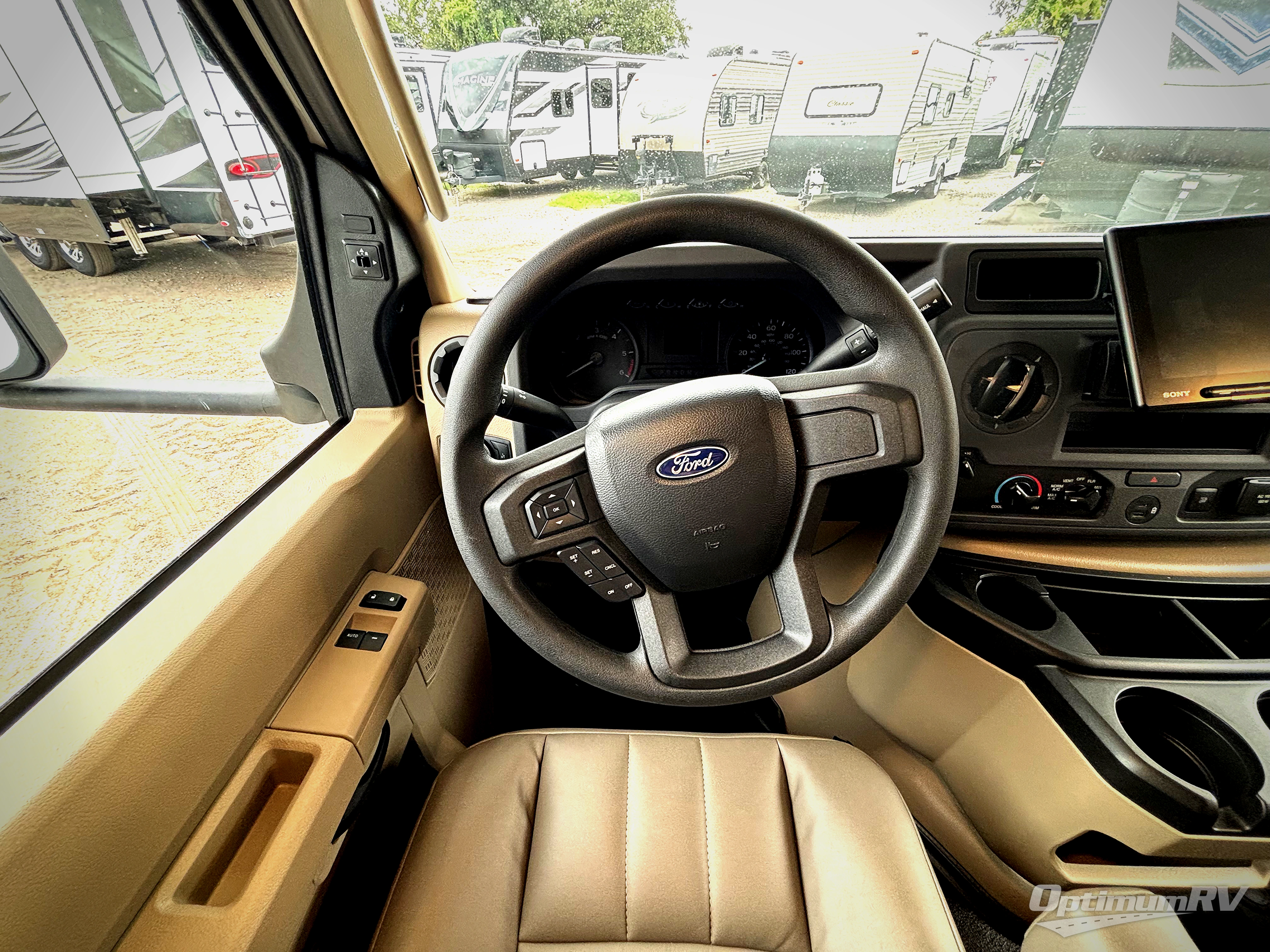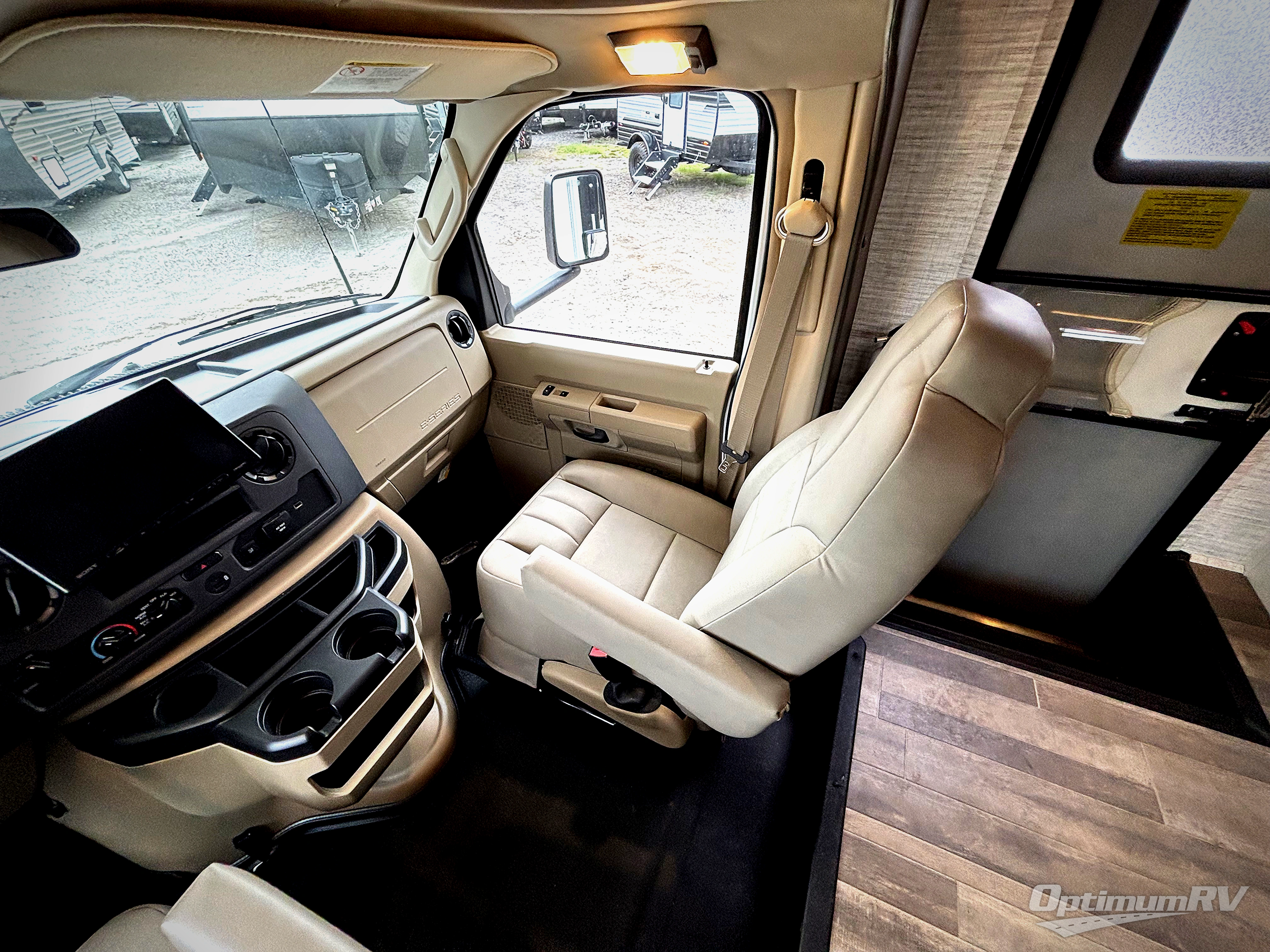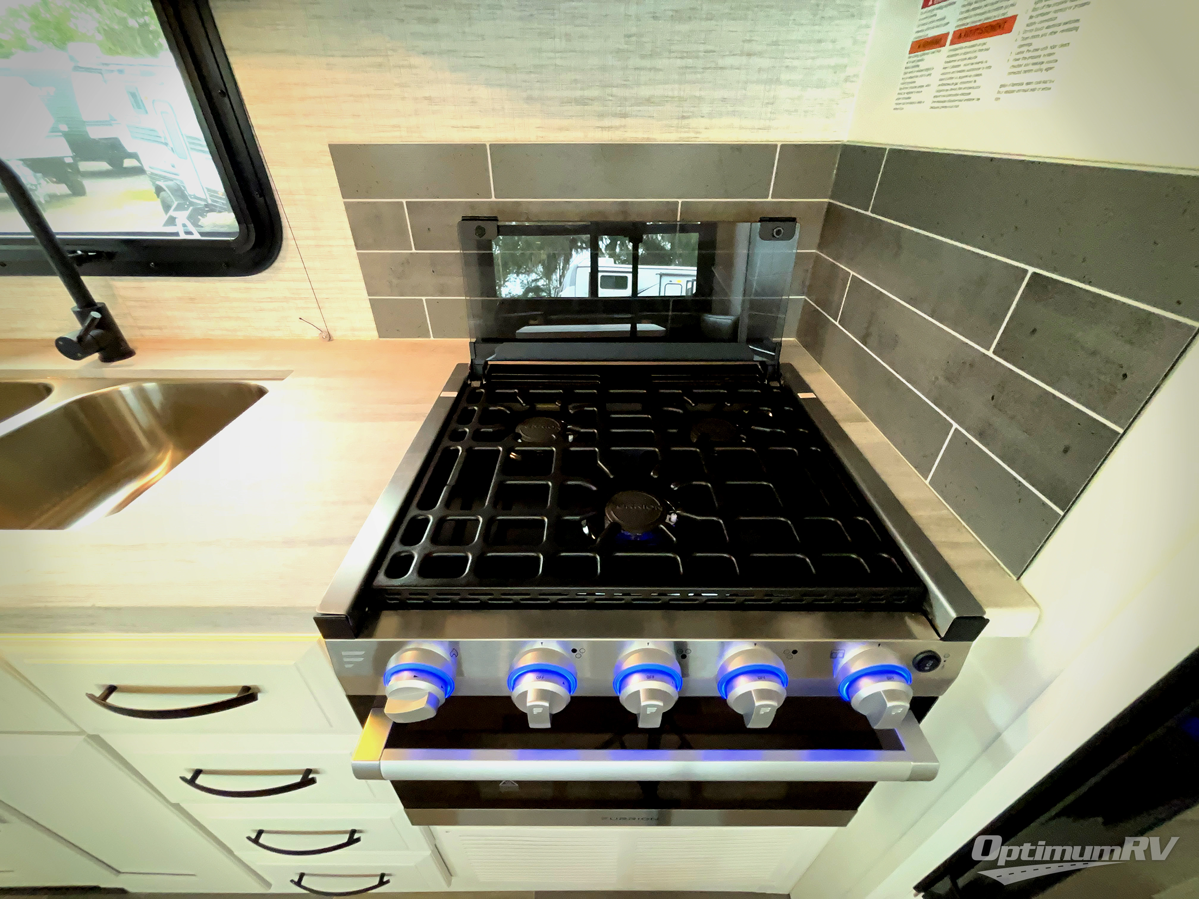 Explore new places as you travel in this coach with the comforts of home and the conveniences you are accustom to. In the rear bedroom, you will appreciate privacy when you close the divider to enjoy the walk-around queen bed with storage for your clothes. There is a private toilet and sink with the shower right across the hall so two people can freshen up at once. The chef will love the galley kitchen which is spacious thanks to the furniture slide out. The Furrion all-in-one cooktop along with the residential-size microwave, plus the 10 cu. ft. refrigerator will give the cook everything for warm meals for two or more. The driver and passenger seats swivel to become a part of the living area seating, and the cab-over bunk her will be a big plus for the little ones. You can also choose the optional theater seating in place of the sofa if you're not needing the additional sleeping space.