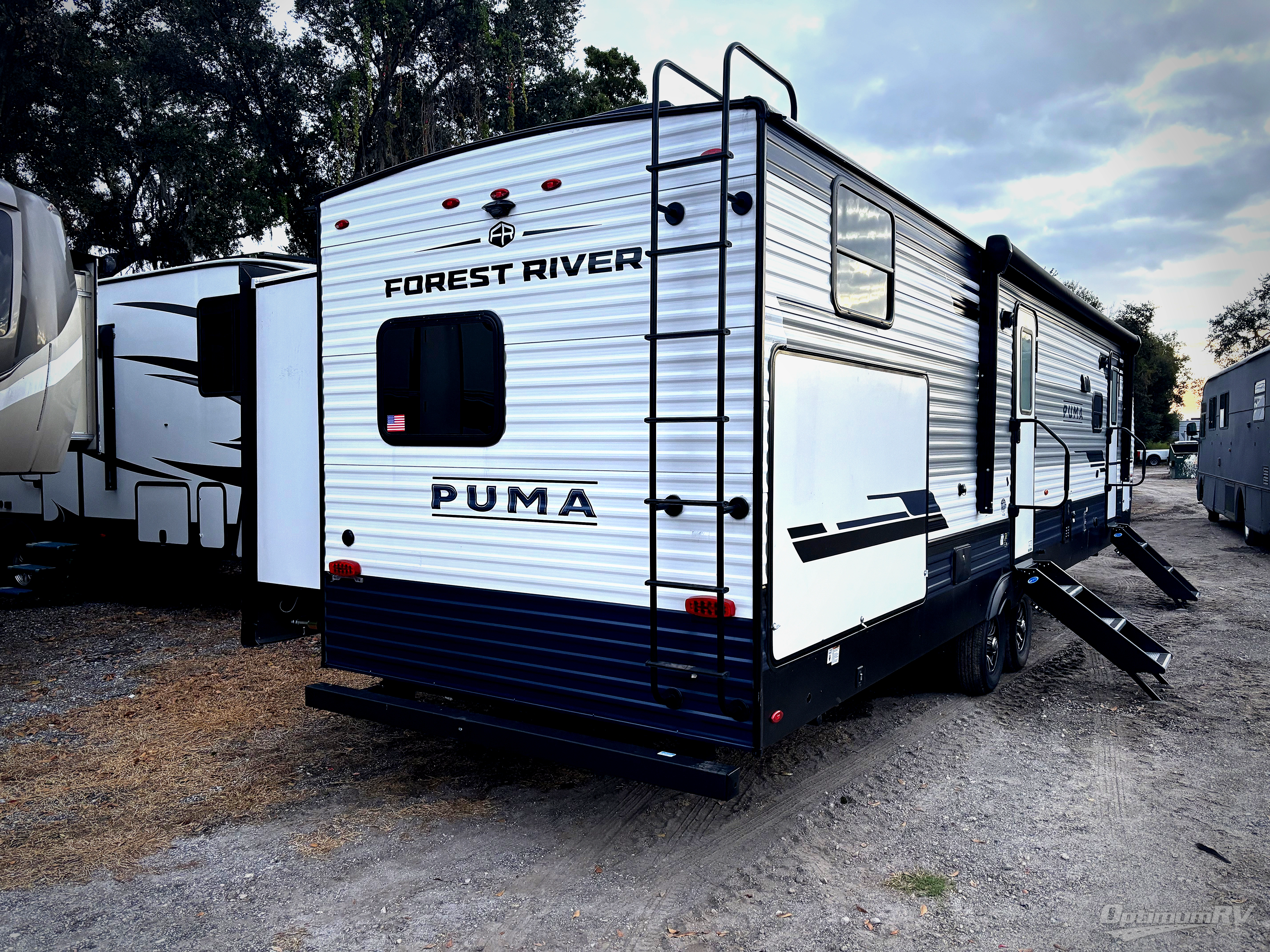 If you're looking for family-fun adventures then you need one of these Palomino Puma fifth wheels or travel trailers! They are built rugged, easy to tow, and jam packed with features. The Darco wrapped underbelly will protect your units vitals and the AlphaPly roofing membrane covers it. They also have new aluminum wheels and a powder coated steel I-beam frame. Inside, the Congoleum linoleum will be easy to keep clean, and the night roller shades will provide privacy when it's time to turn in. You'll also enjoy an electric awning with an LED light strip plus an AM/FM/Bluetooth stereo and two outside speakers to keep the party going!