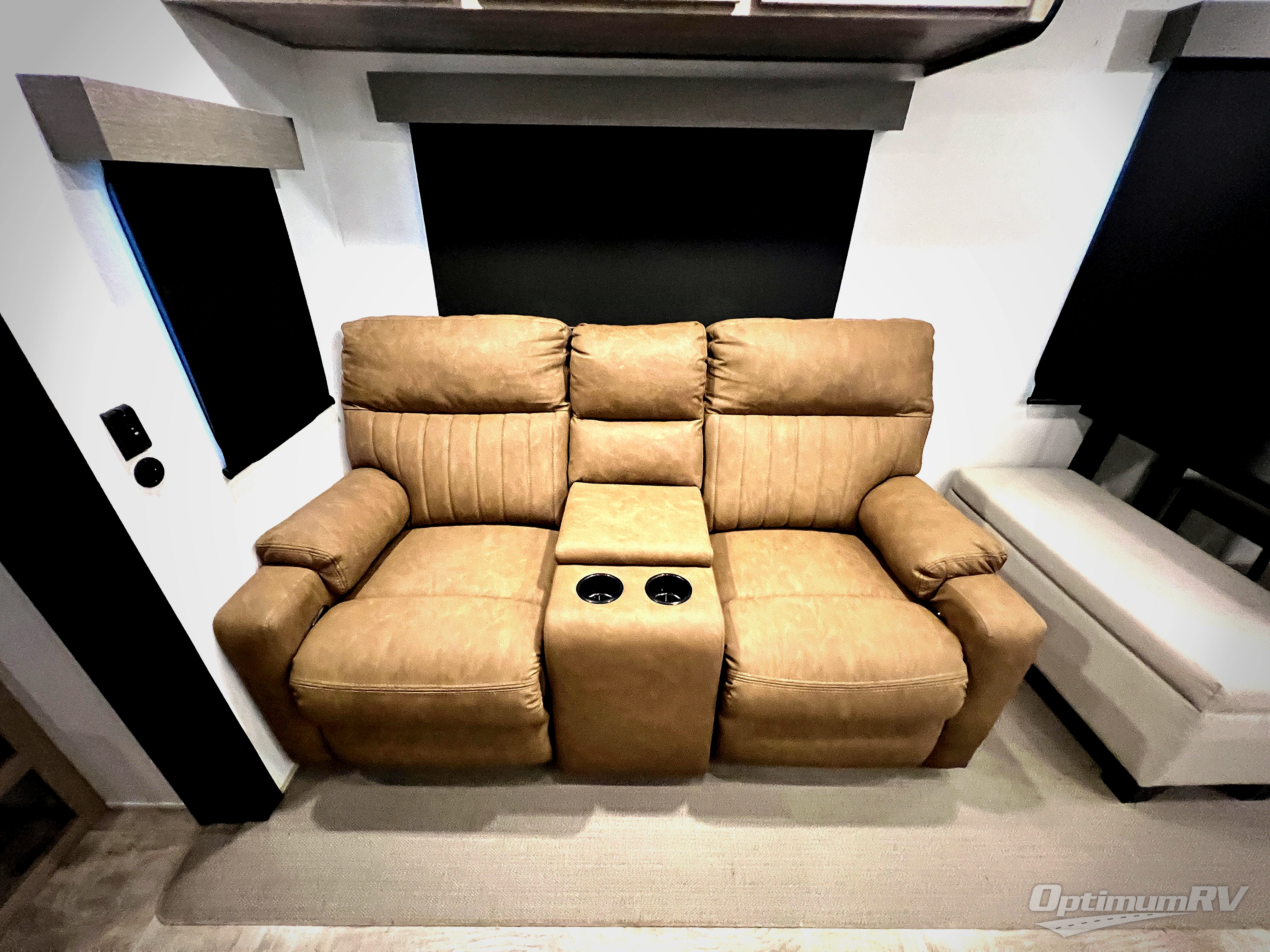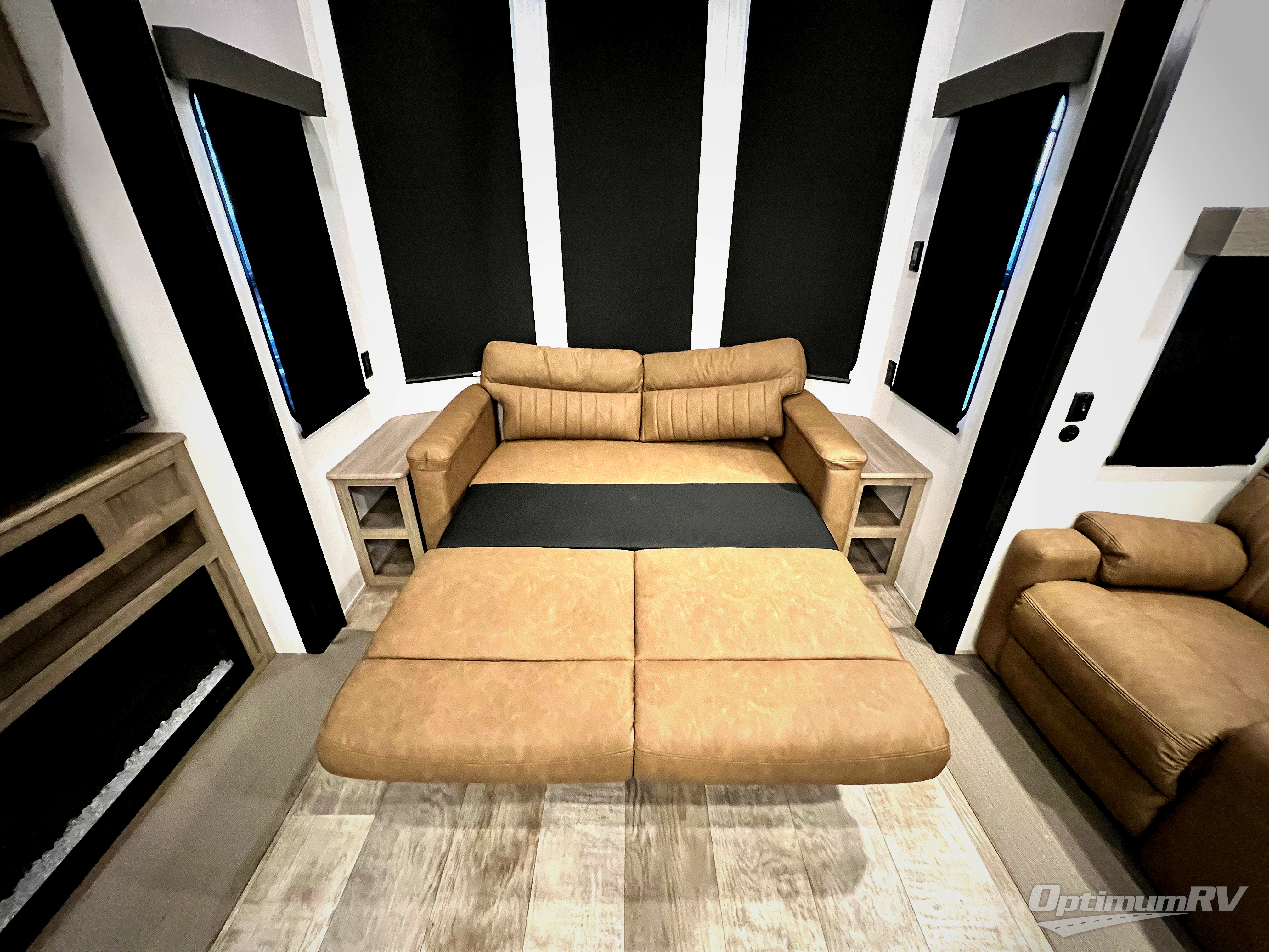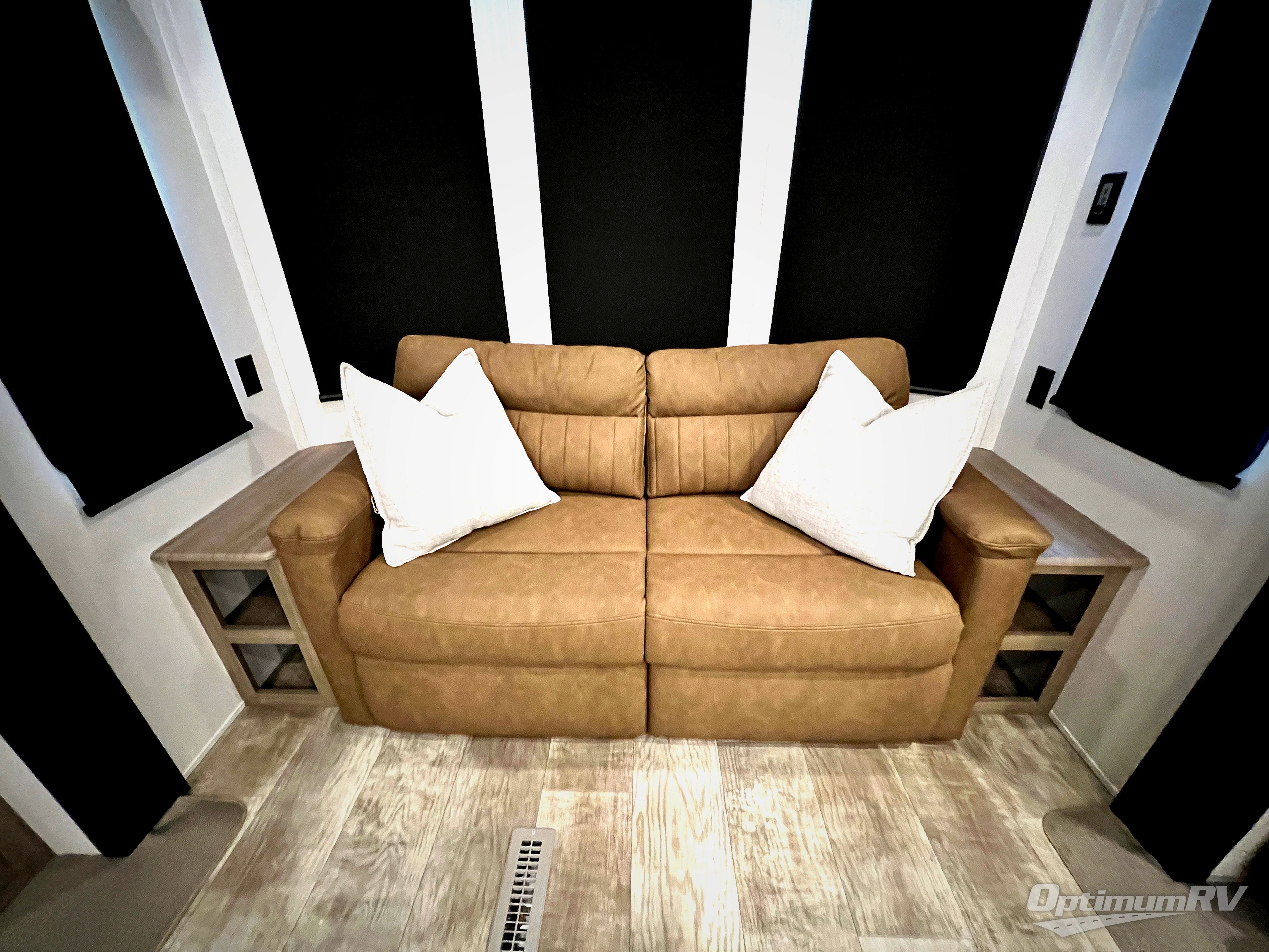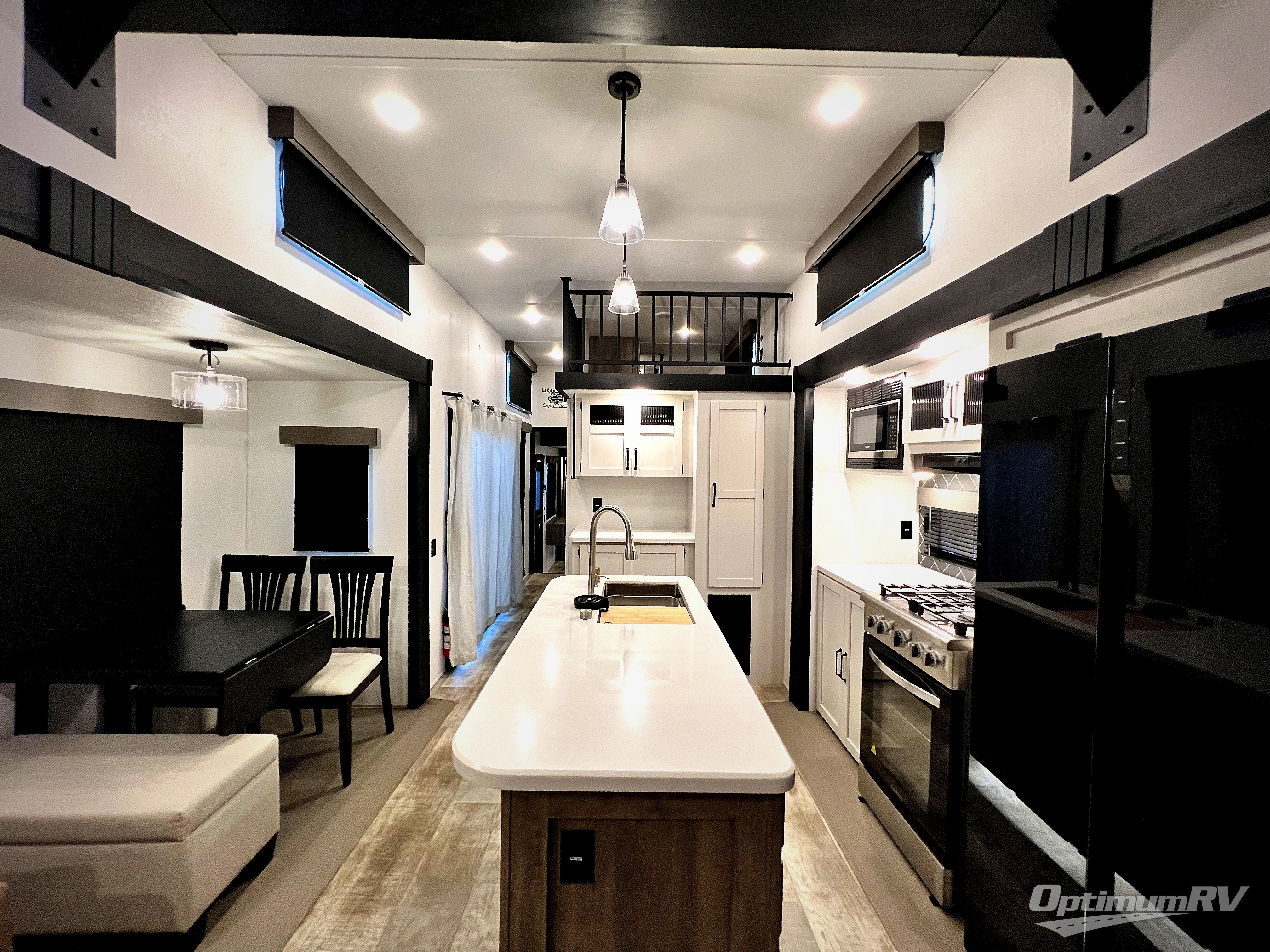 Wherever your destination may be, you can be sure to enjoy it to the fullest with this trailer in tow! With two entry doors, you can enter in through the rear private bedroom or the main living area. The bedroom includes a king bed slide out, a wardrobe/closet to keep your clothes organized, plus a closet with the option to add washer and dryer prep. Just outside this room are steps that lead to the large loft area with a 58" x 58" bunk mat and a cabinet on one side, plus two 32" x 69" bunk mats on the other. There is also a cabinet and a wardrobe/closet for plenty of storage space. Once you've headed back downstairs, you can relax on the dual recliners, front sofa, or free-standing table with a bench and two seats. And the chef of your group will love the kitchen with its residential style refrigerator and pantry, kitchen island, and four burner cooktop!