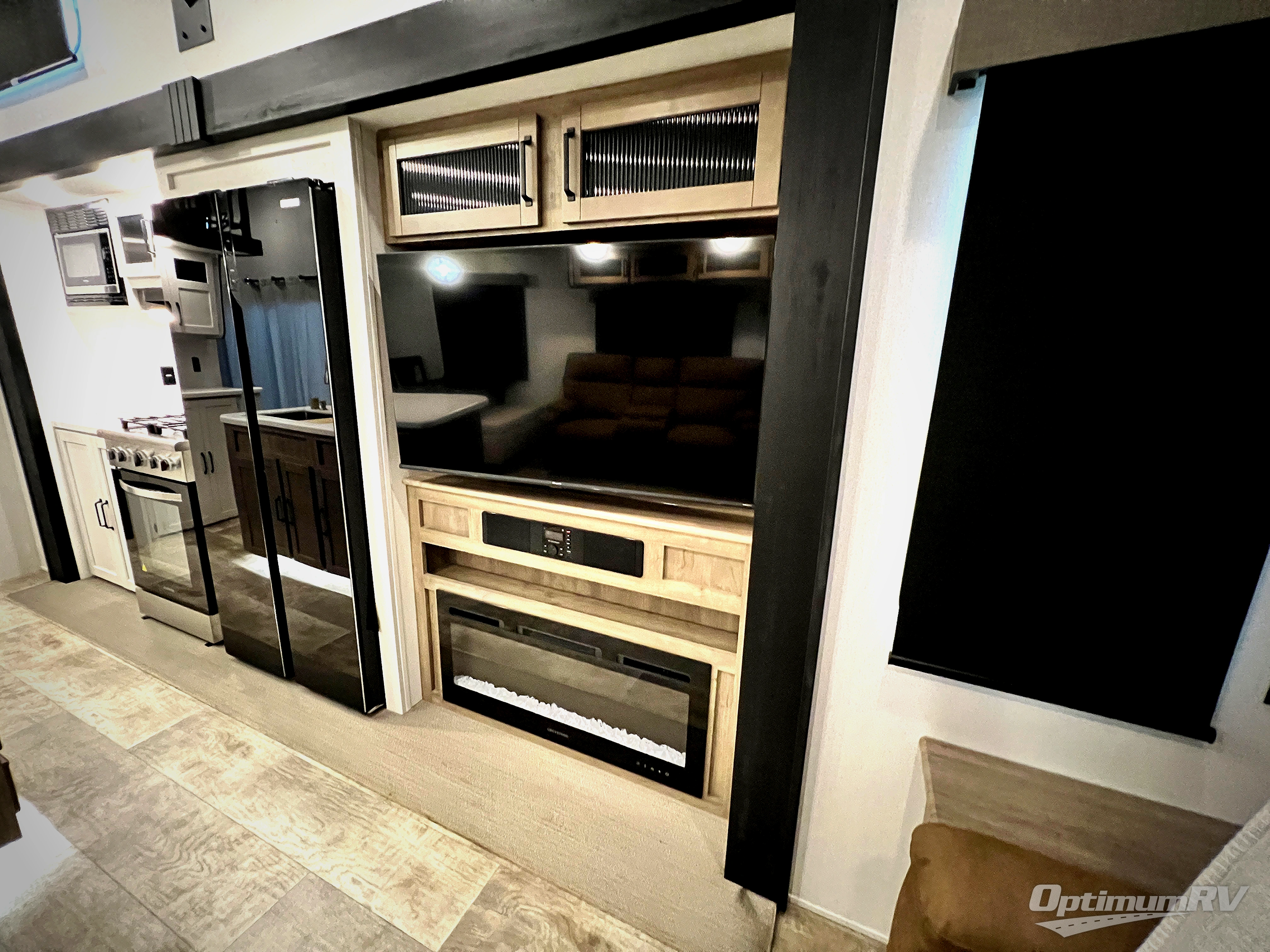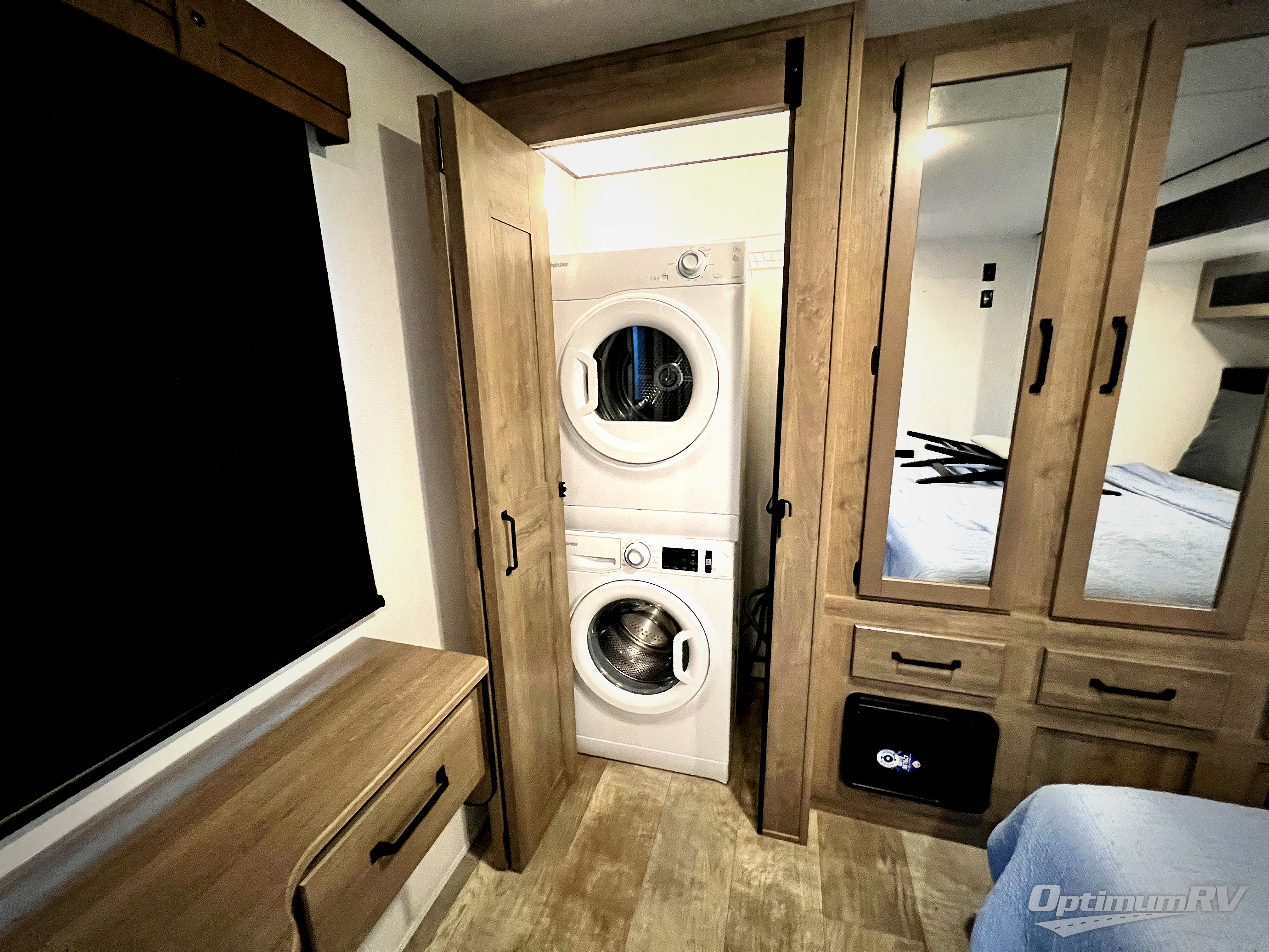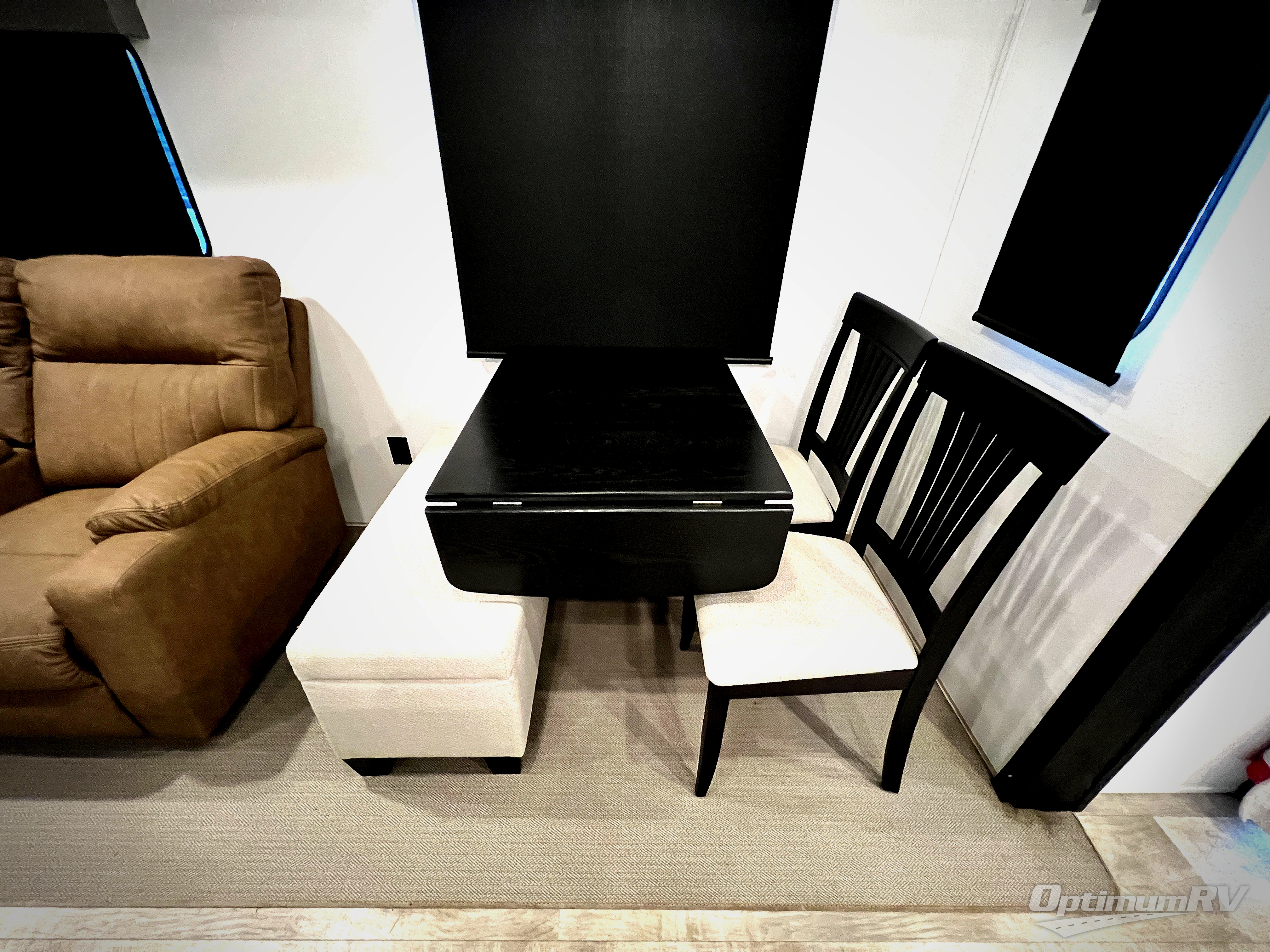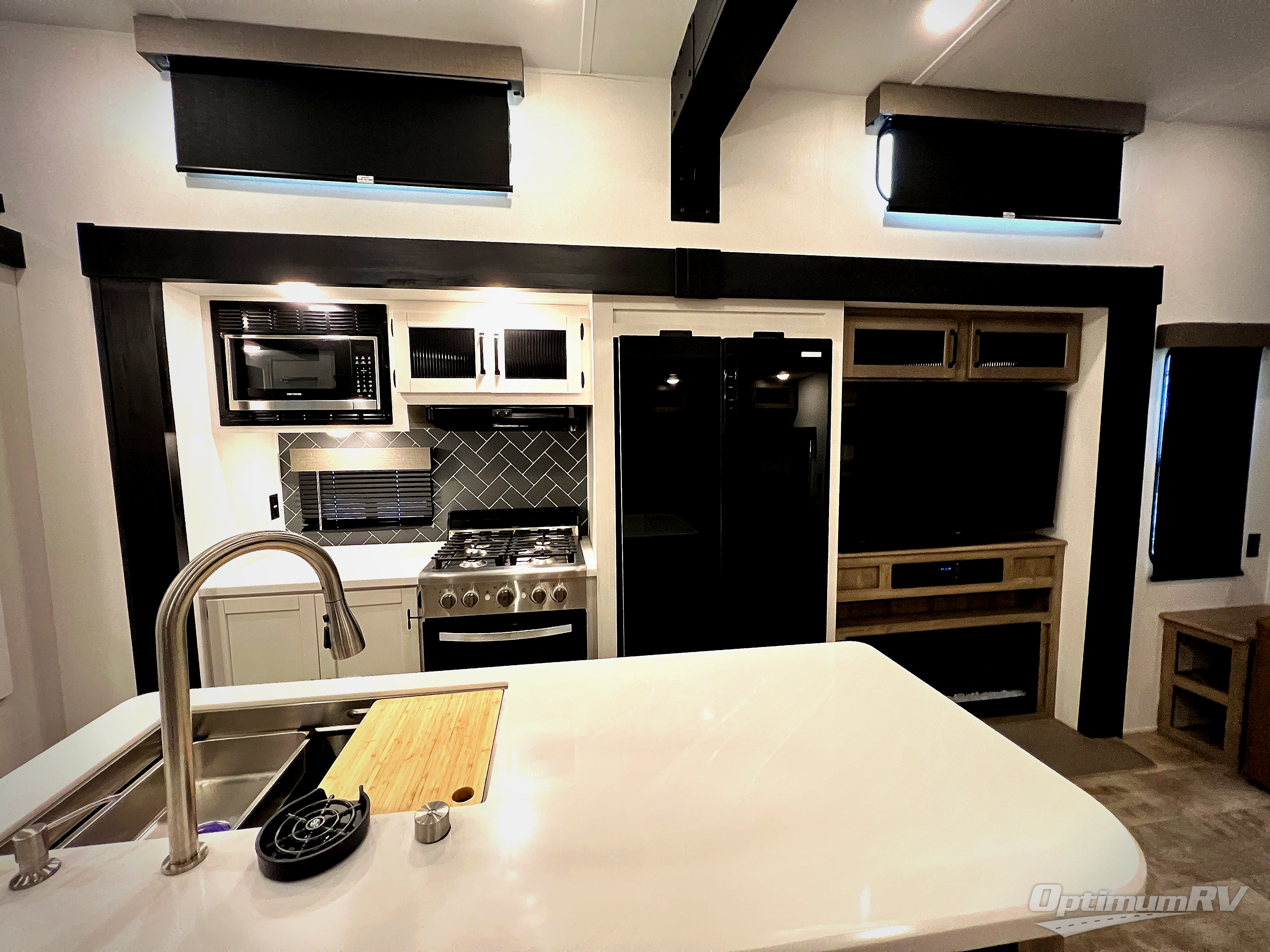 Wherever your destination may be, you can be sure to enjoy it to the fullest with this trailer in tow! With two entry doors, you can enter in through the rear private bedroom or the main living area. The bedroom includes a king bed slide out, a wardrobe/closet to keep your clothes organized, plus a closet with the option to add washer and dryer prep. Just outside this room are steps that lead to the large loft area with a 58" x 58" bunk mat and a cabinet on one side, plus two 32" x 69" bunk mats on the other. There is also a cabinet and a wardrobe/closet for plenty of storage space. Once you've headed back downstairs, you can relax on the dual recliners, front sofa, or free-standing table with a bench and two seats. And the chef of your group will love the kitchen with its residential style refrigerator and pantry, kitchen island, and four burner cooktop!
