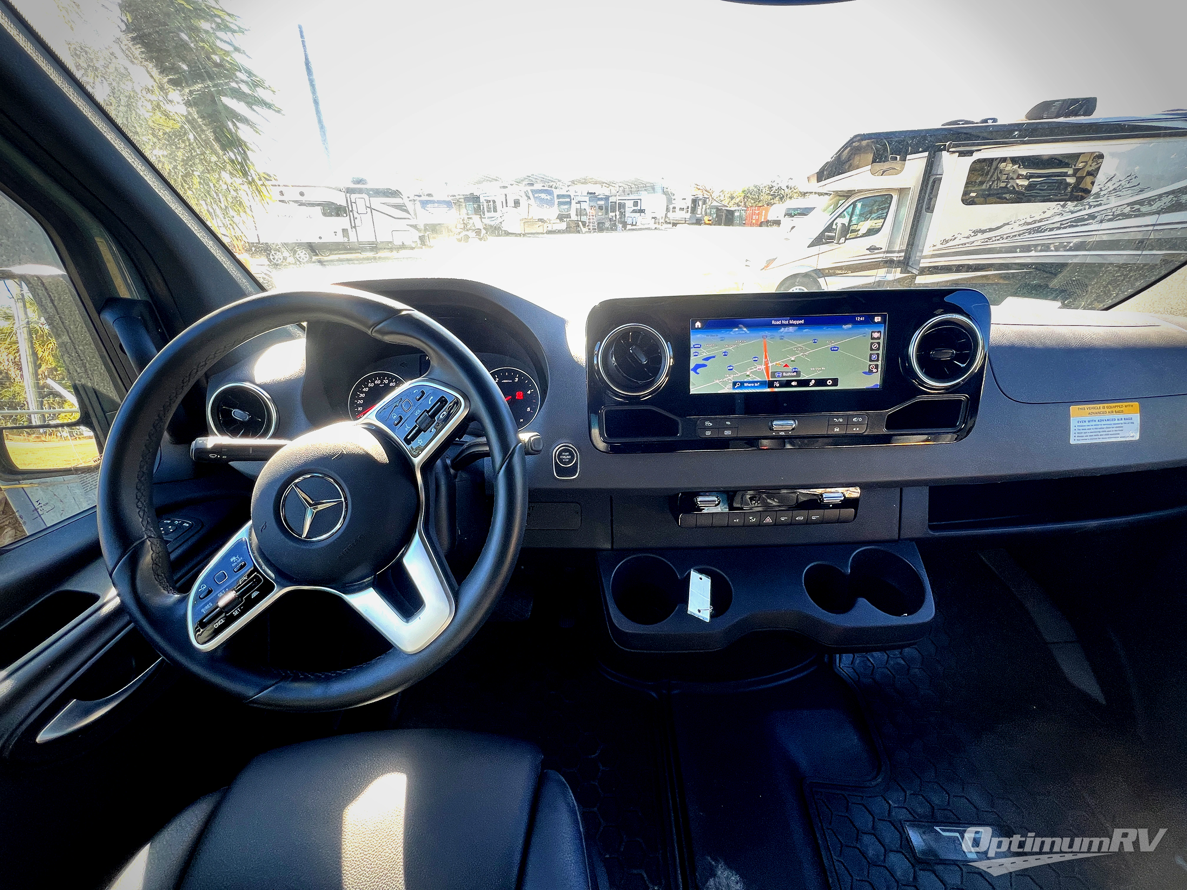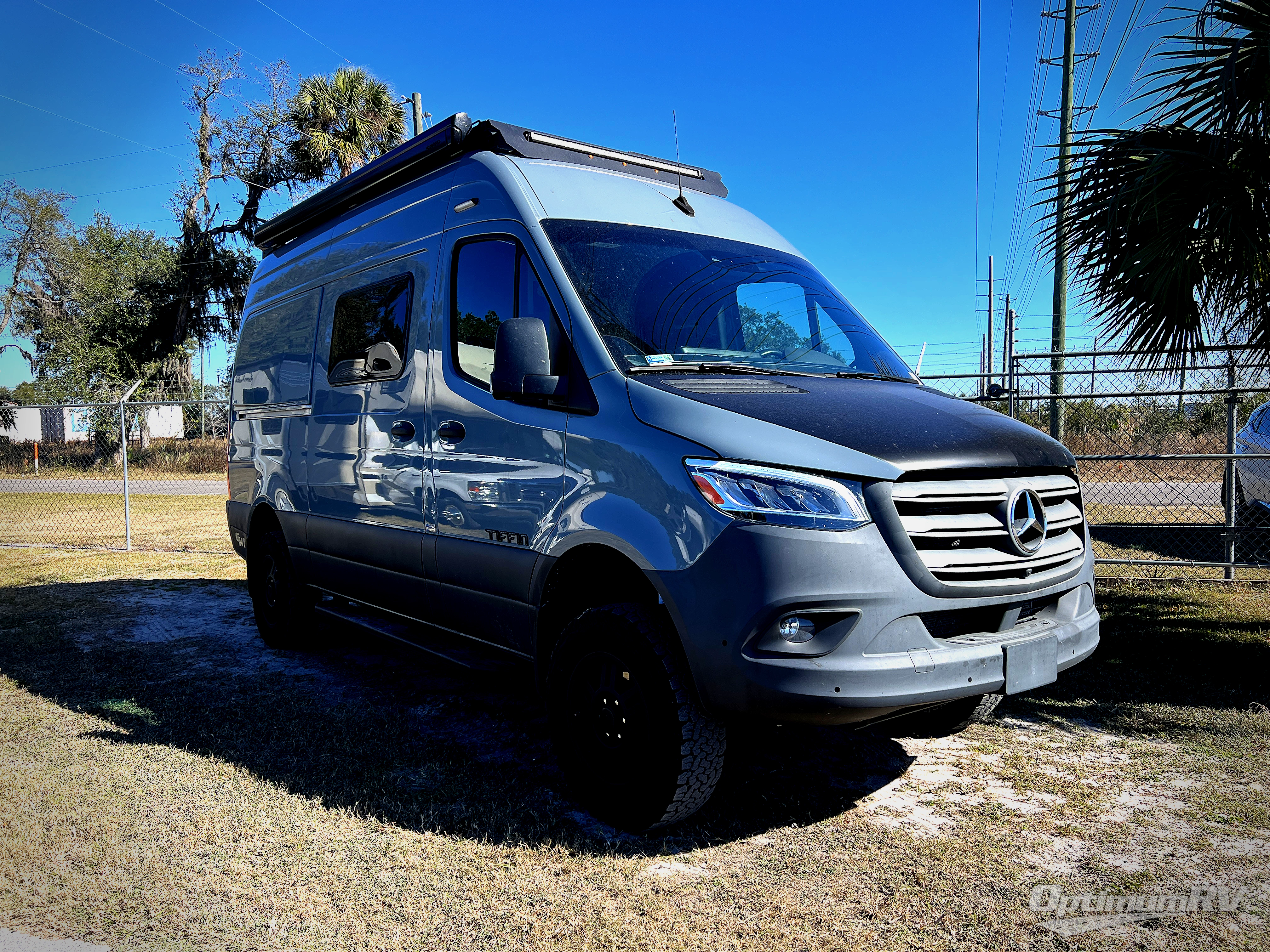 Pick a place, any place, and start packing. This off-road capable diesel van features a 49" x 79" gear garage beneath the power lift bed where you can store camp chairs, paddle boards for the lake, outdoor games and plenty of hiking gear. The on-board wet bath will keep you fresh and clean, and you can easily whip up meals and snacks in the kitchen with a single-burner induction cooktop and refrigerator beneath the counter for your perishables. There is also a sink for cleaning up and a removable counter extension. An optional jump seat and removable wall mounted swivel table behind the driver's seat can accommodate you for meals or a game of cards, or you can choose the optional adventure bar work/storage solution in place of the jump seat. Both front driver and passenger seats swivel to the back so you'll have plenty of seating even with company. At night, the power lift bed will allow you to get a great night's rest so you can enjoy it all again the next day!
