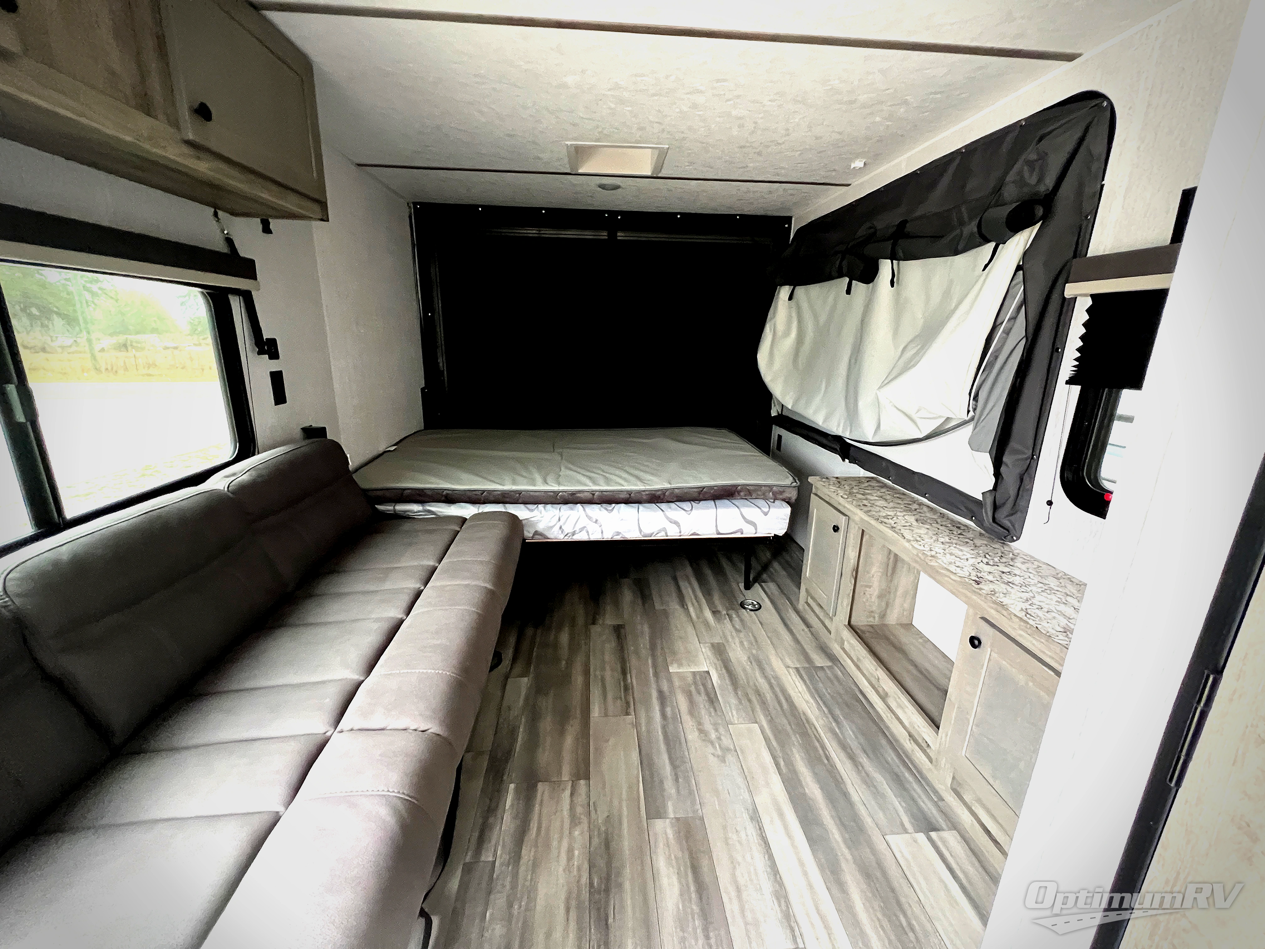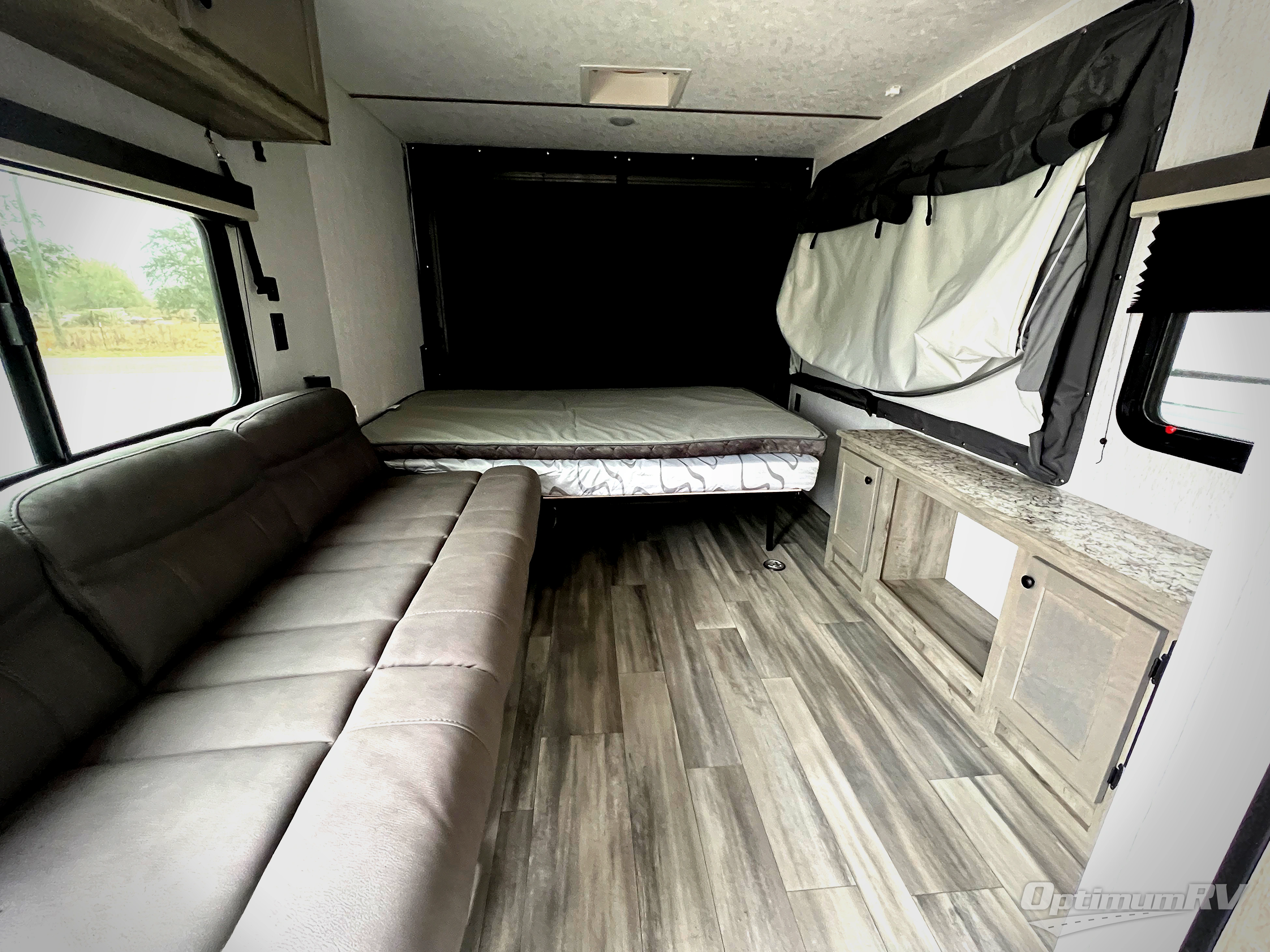 Get ready for a great camping experience where you can take along your favorite ride-on toys, kayaks, or other items that you may not normally have room to load as this toy hauler features 13' 2" of cargo space that can easily be loaded using the rear ramp door. Once unloaded, set up with the fold-down bed that will make for a great night's rest. There is also a jiffy sofa that can transform into added sleeping space at night. The kitchen amenities will make it easy to create a warm meal, and you can get cleaned up and refreshed in the bathroom with tub/shower and toilet. This unit also includes the Rush Toy Hauler Package with a ramp door, dual cargo loading lights, a magnetic rear bug screen, and four D-rings to secure your toys.