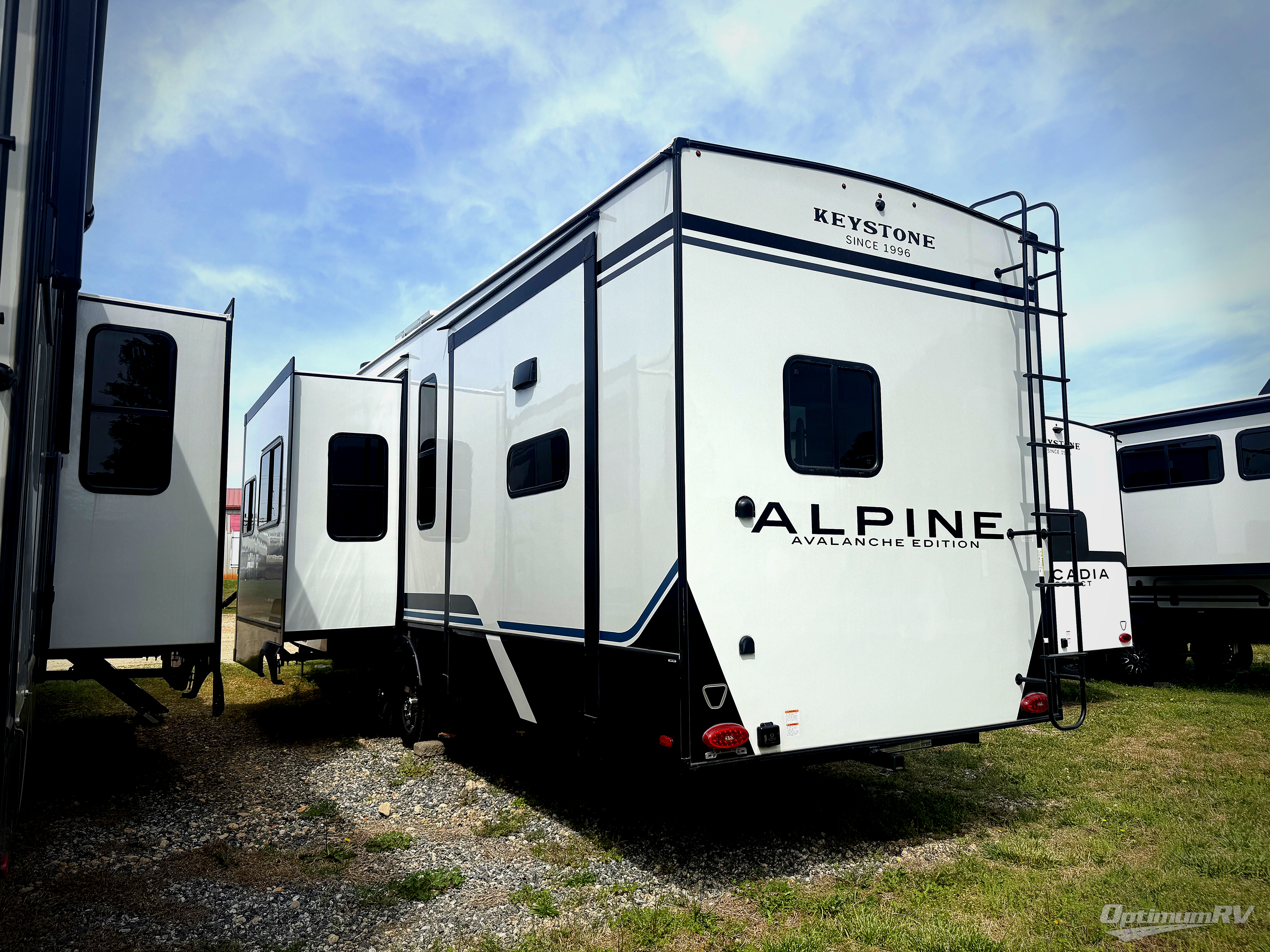 With any Keystone luxury Alpine Avalanche Edition fifth wheel, you will experience wide-body construction that allows you to stretch out and stay awhile during any season thanks to the Polar Pack All Season Protection that includes a heated and enclosed underbelly, an Astro foil reflective layer on the roof, front and rear walls, and two static attic vents, plus more! The interior offers hardwood slide out fascia with wood accents, designer upholstered window valances with custom wood window frame, plus your choice of modern interior design. There are many more Keystone exclusives, like the Tru-Fit slide construction, the in-floor heating ducts, KeyTV™, and much more to bring you a full-packed, luxury fifth wheel!