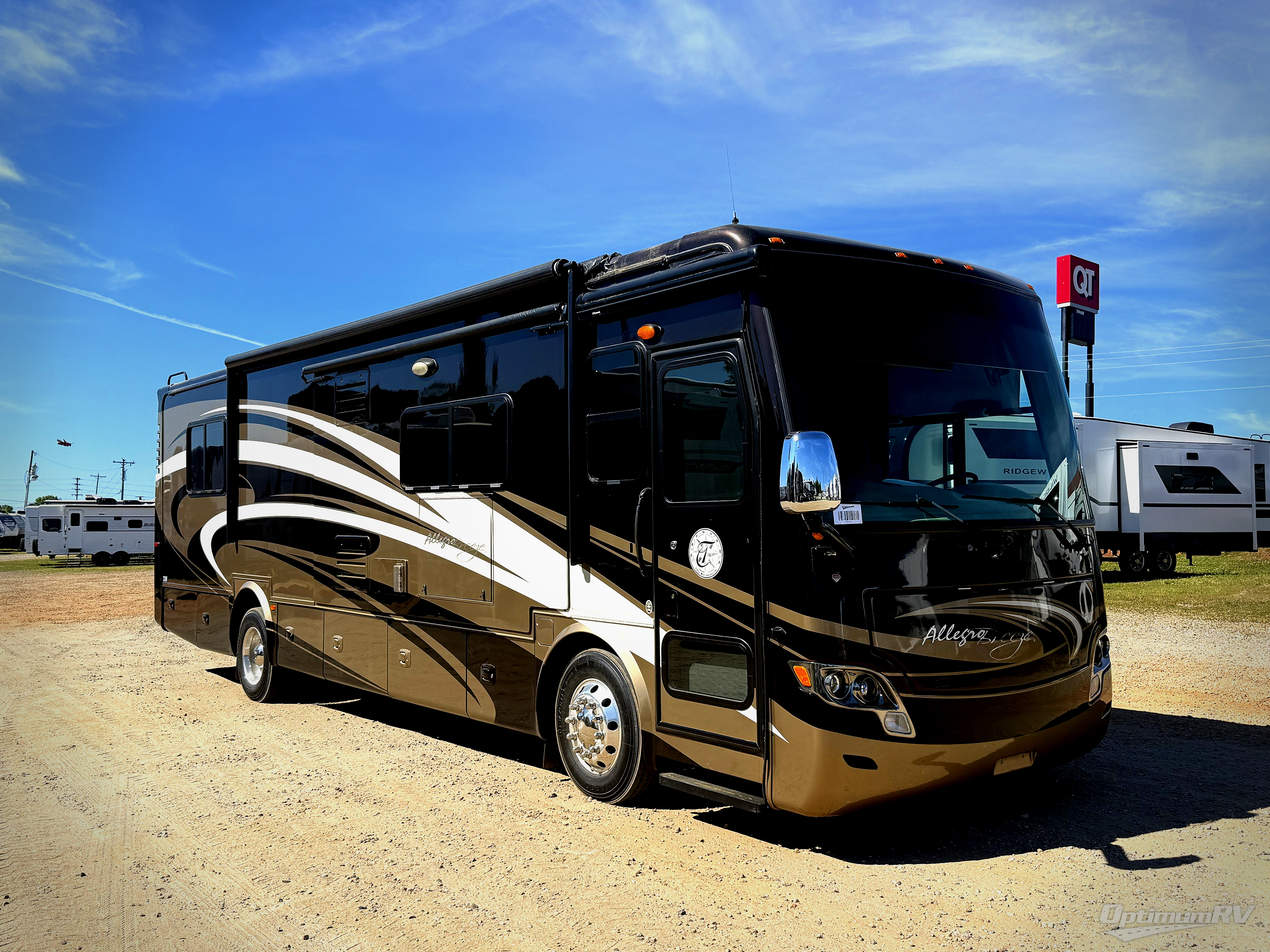 The Tiffin Allegro Breeze 32 BR class A diesel motorhome features wide open living space thanks to two slides that are opposite each other.