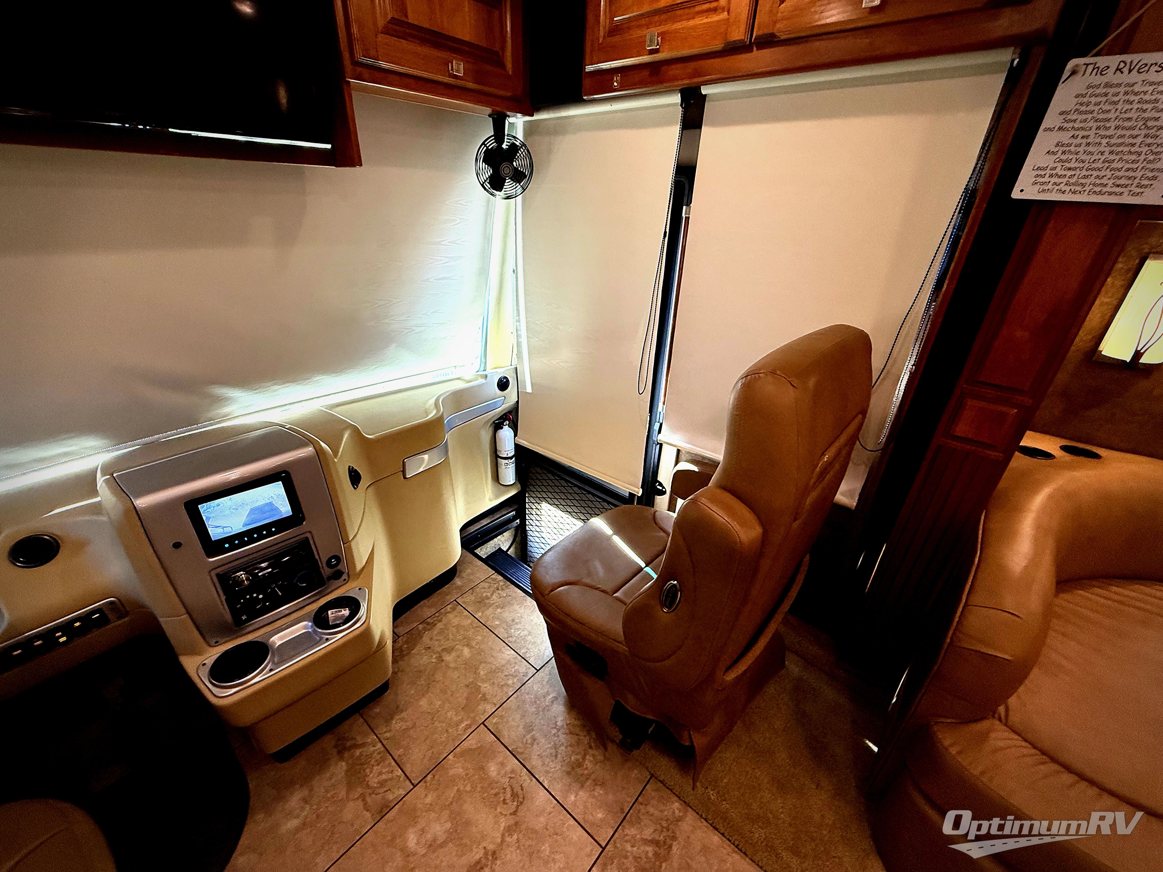 Step into the front entry to find two captains chairs, overhead cabinets, and an optional TV at the center front.