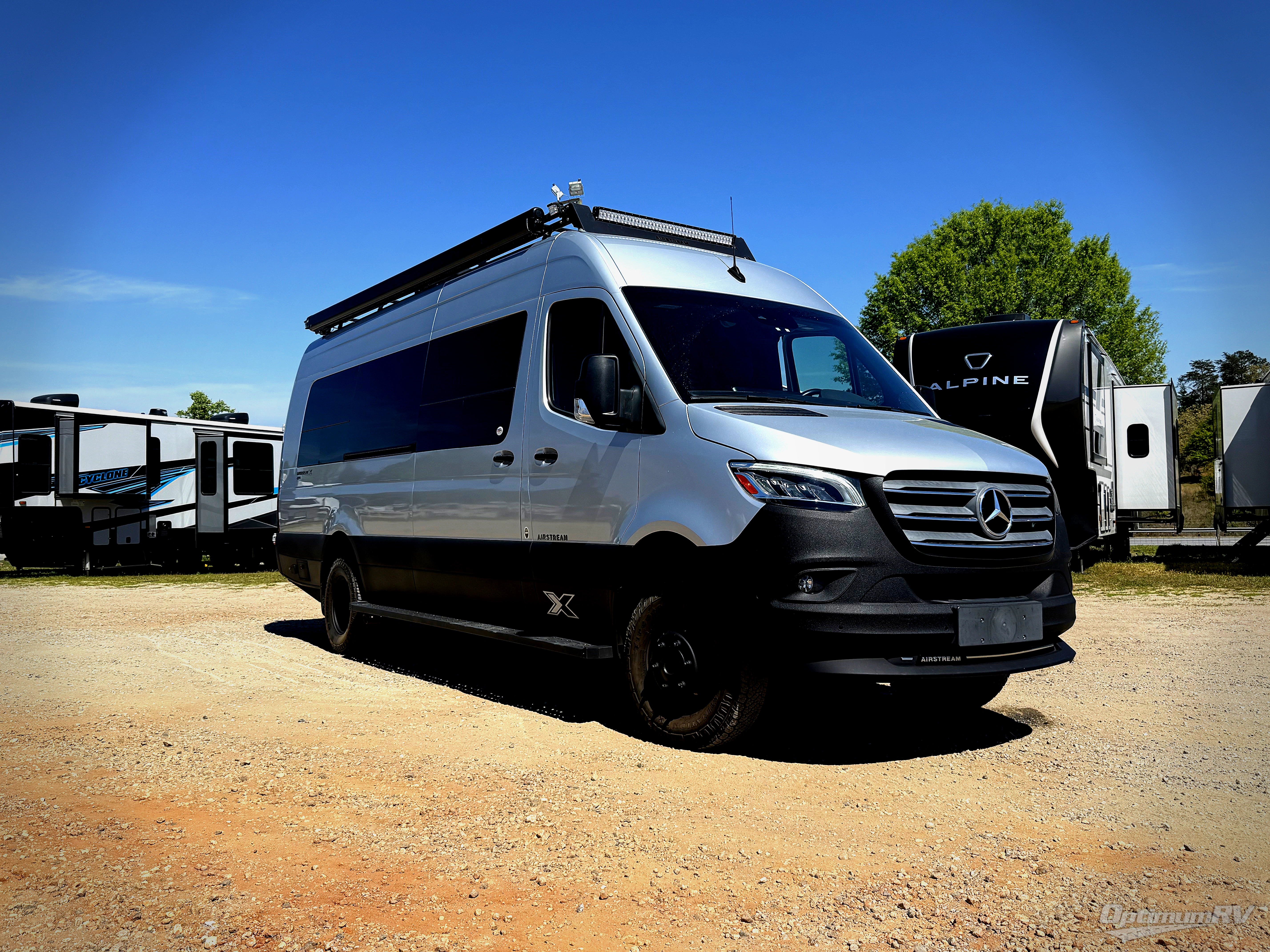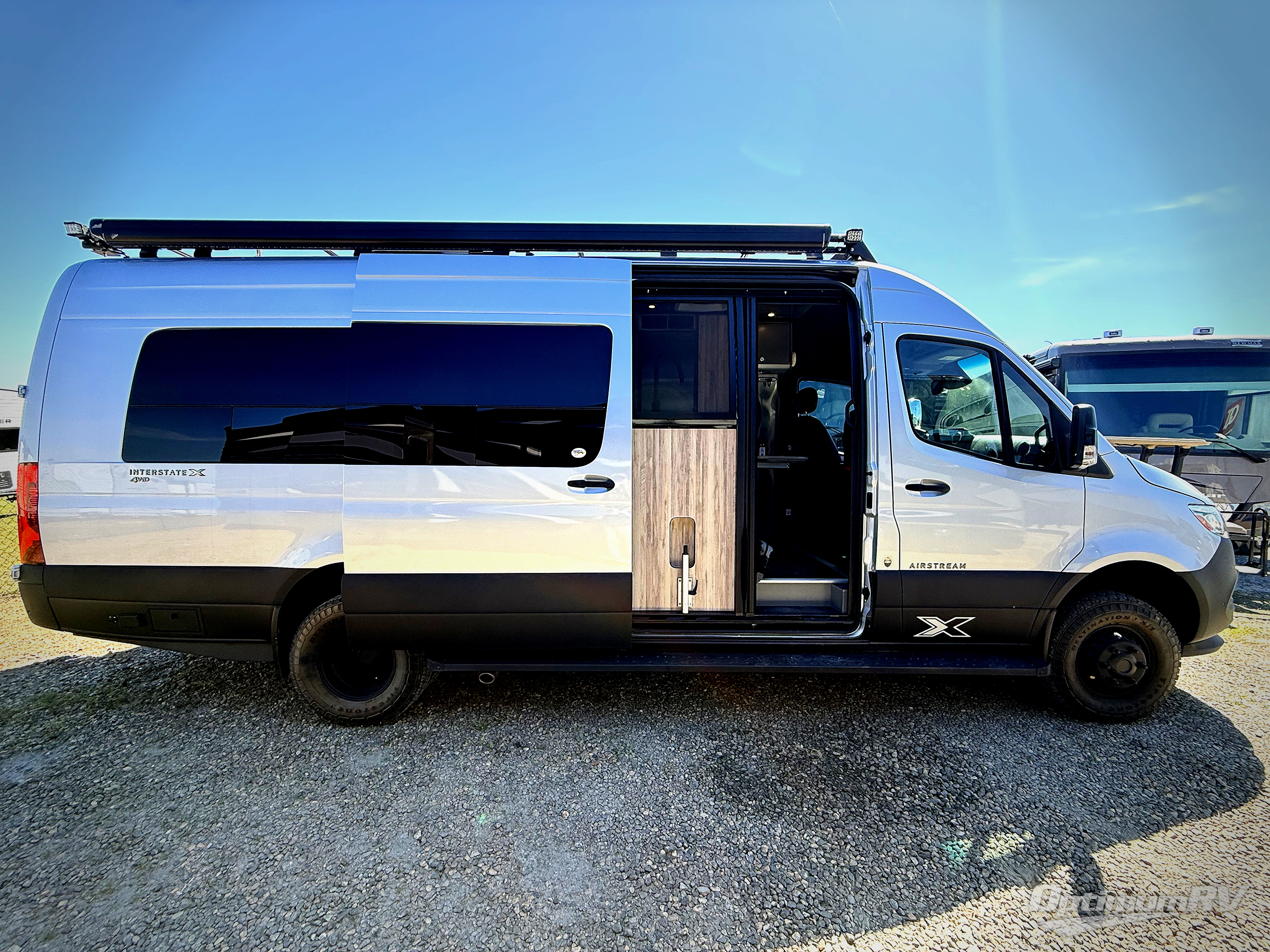 For the true adventurer, there isn't much that quite compares to the Airstream Interstate 24X Class B diesel motorhome! This brand is exceptional for off-grid tours because of its four-wheel drive, air ride suspension, all-season all-terrain rugged tires, black roof rack, exterior gear wash station, and off-road front HD LED light bar. The cockpit has an MBUX infotainment system and premium digital media receiver with Bluetooth connectivity for the tech enthusiast, and you can also add an optional front bed system to the cockpit if you need another sleeping space.