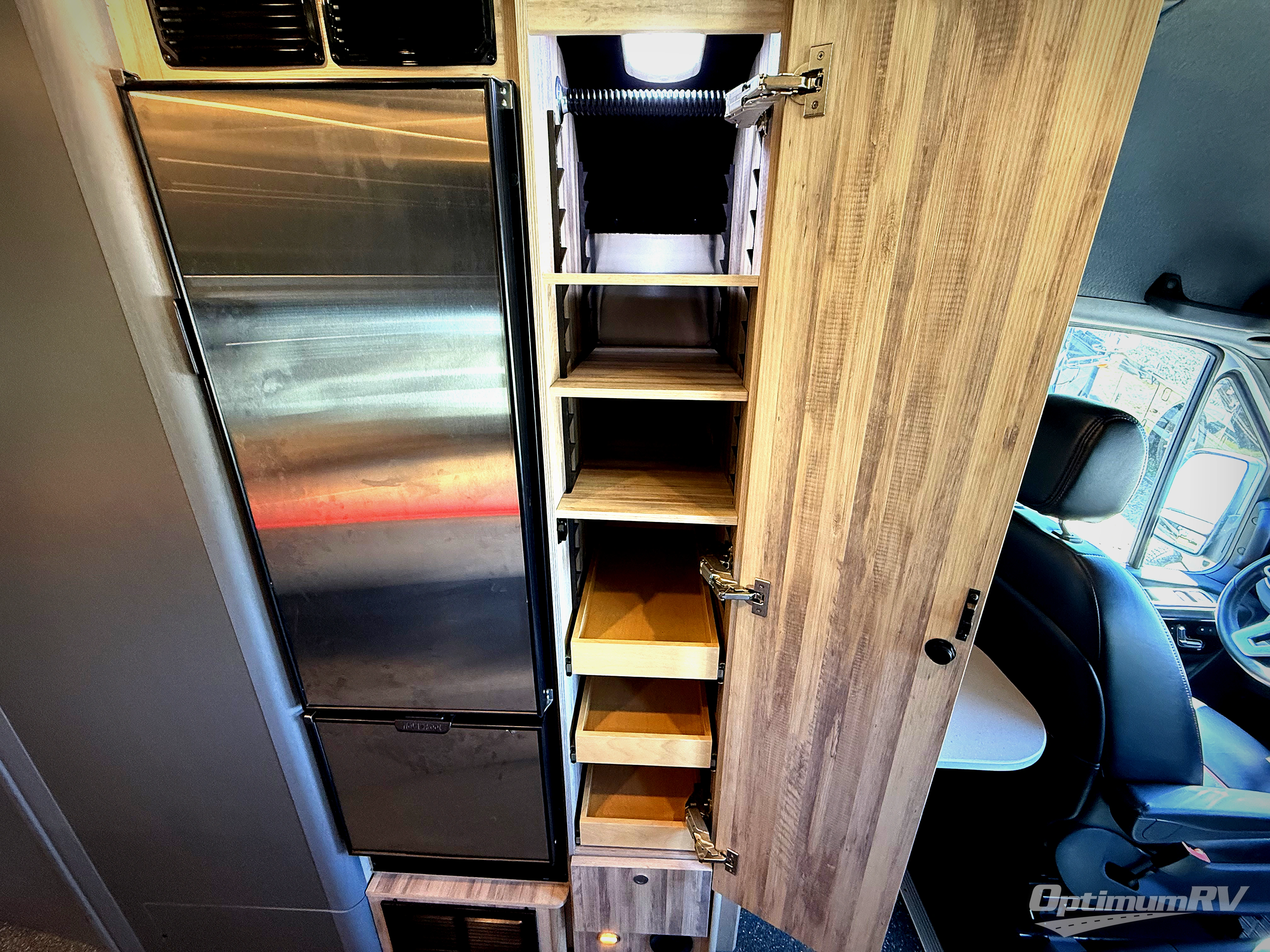 You'll be ready for just about anything with this Interstate 24X Class B diesel motorhome! This coach has some great storage solutions with the aluminum aircraft L-track storage system, lower storage compartments under the seating, oversized center aisle storage for kayaks or bikes, a pantry with built-in drawers and shelves, and a security safe. Nothing will be more convenient to have while traveling on the road than the heated wet bath with retractable clothesline and towel rack and the galley kitchen with cooktop, sink, and refrigerator. The blackout privacy and light shades are another useful feature that will allow you to block out the light while you sleep.