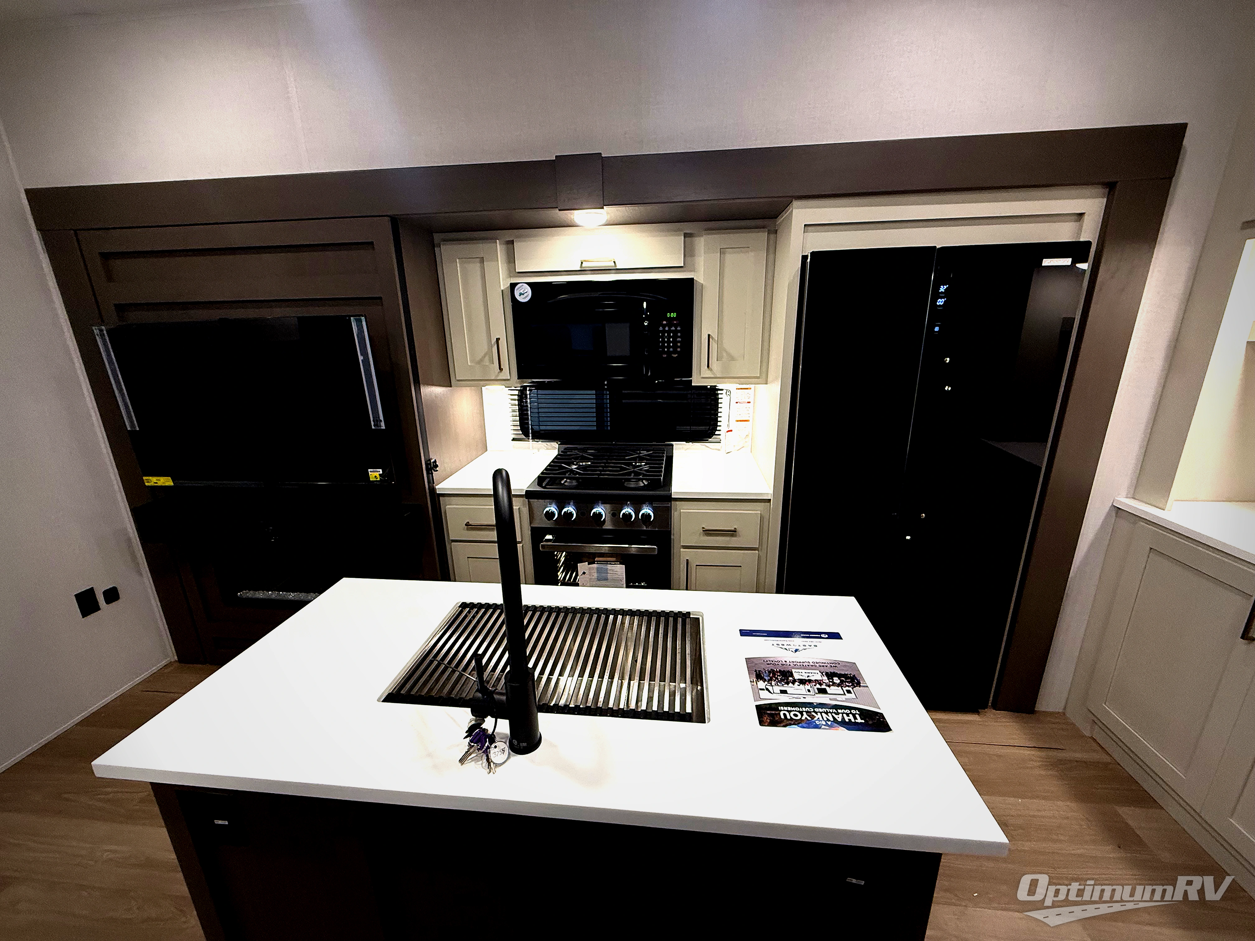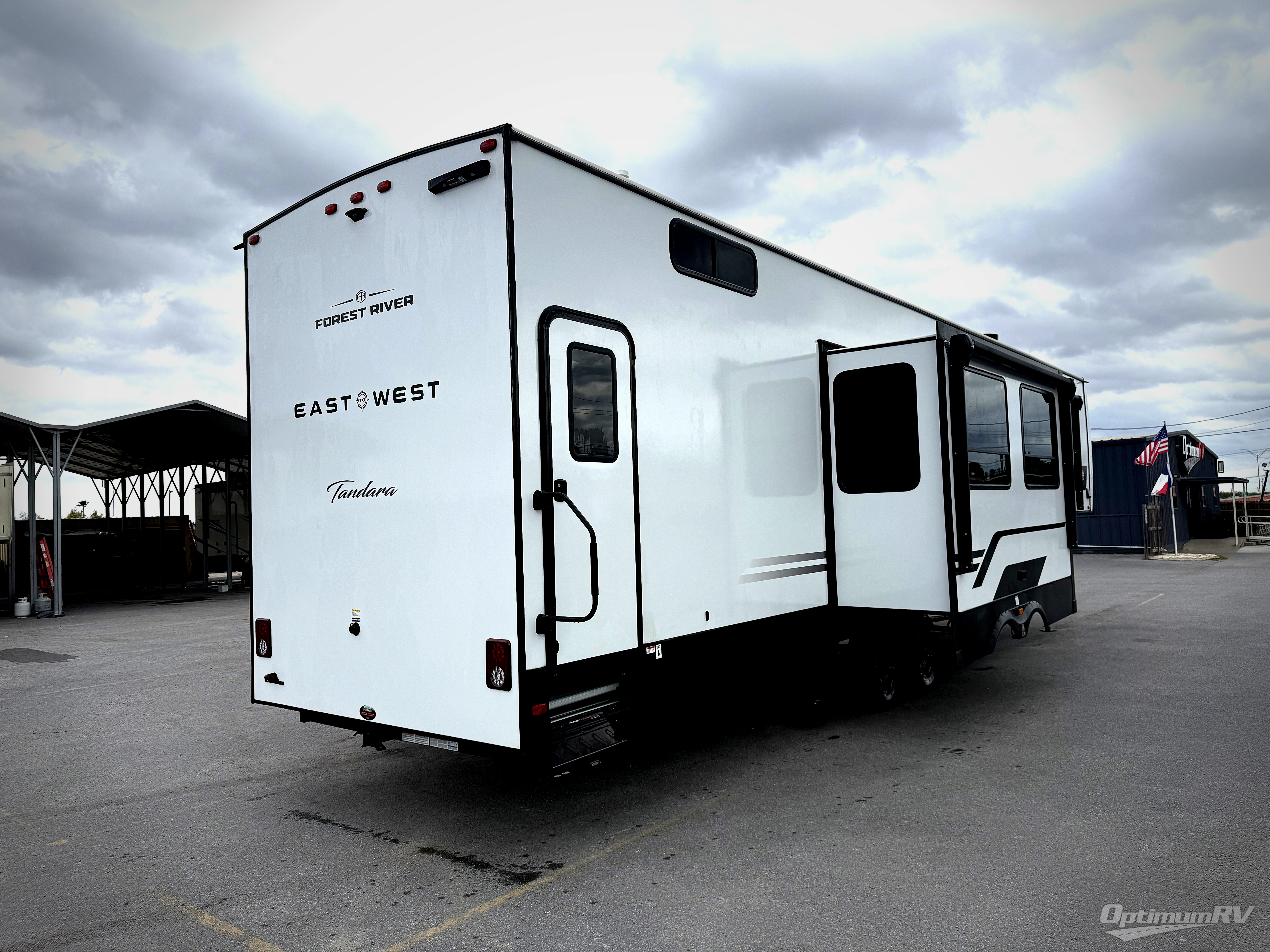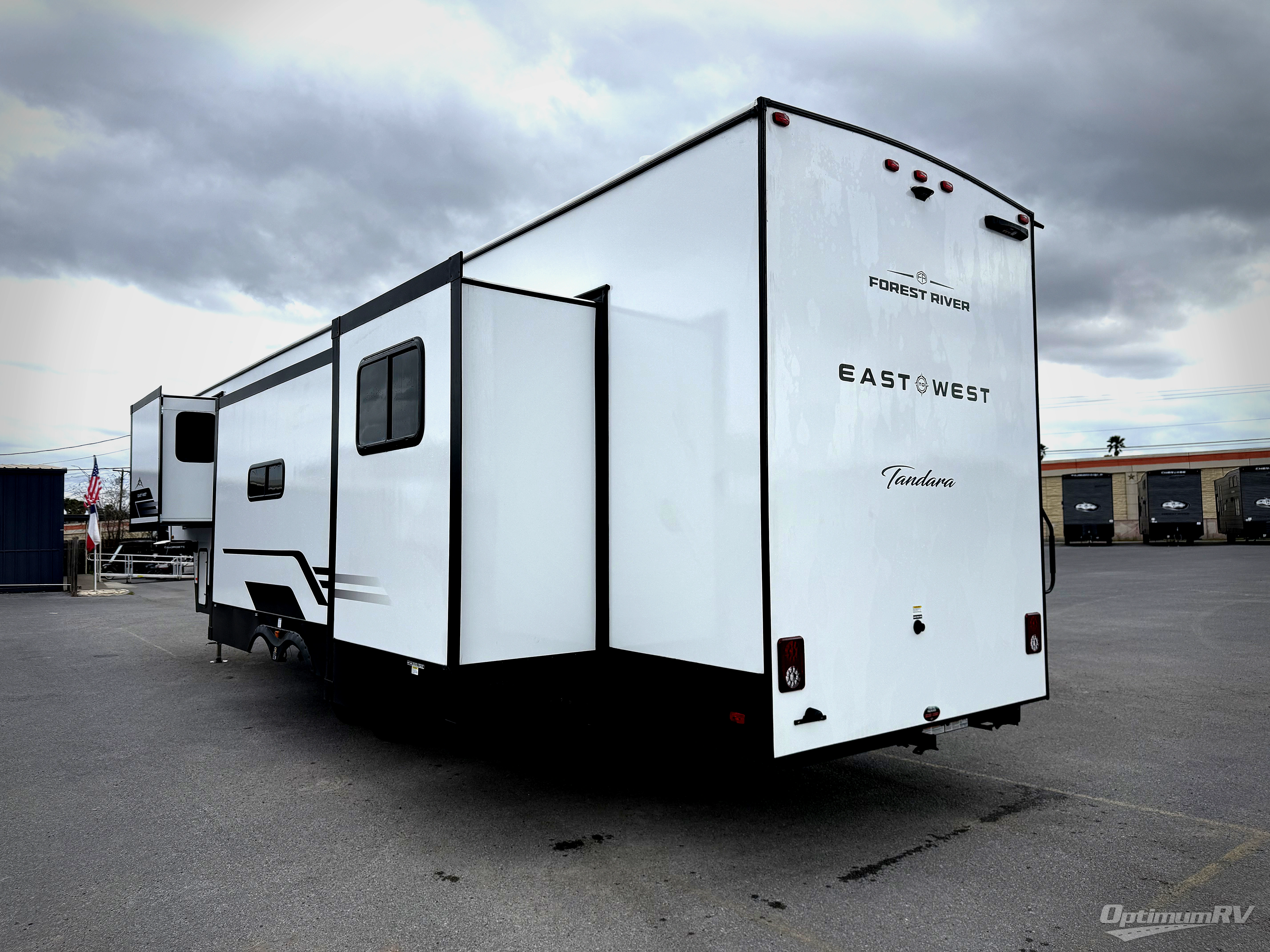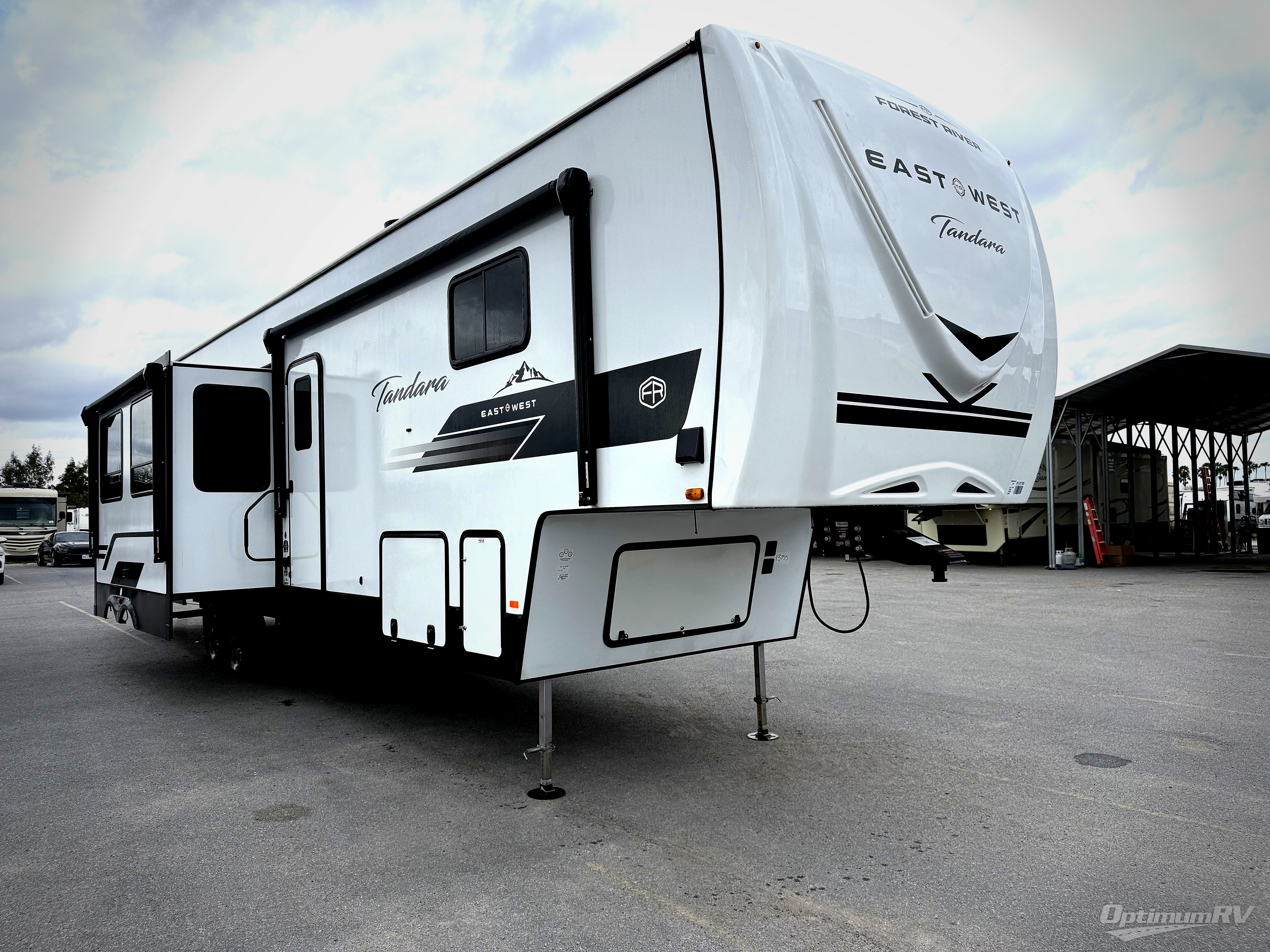 With any Tandara fifth wheel by EAST TO WEST, you will enjoy many standard features to make each trip enjoyable. The Tandara Exterior Luxury Package includes a universal all-in-one docking station, an automatic leveling system, metal slam latch cargo doors, and a 200W solar panel for off-grid capabilities. You will also appreciate the Tandara Climate Package with ductless flooring, dual attic vents, plus a heated and enclosed underbelly for added protection. Inside, you'll find a flush floor kitchen slide, Slow Rise roller shades, solid surface kitchen countertops, and more stand-out features included in the Tandara Interior Luxury Package.
