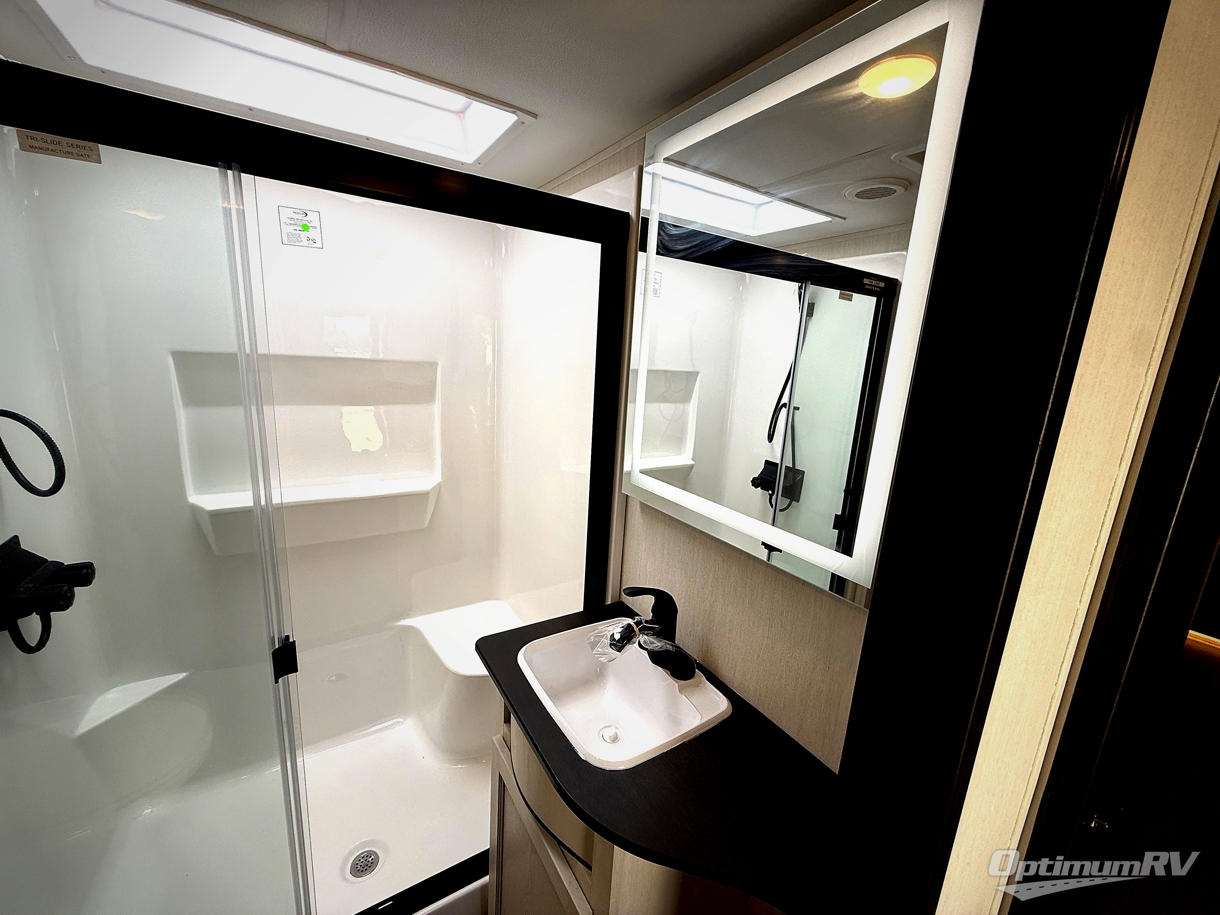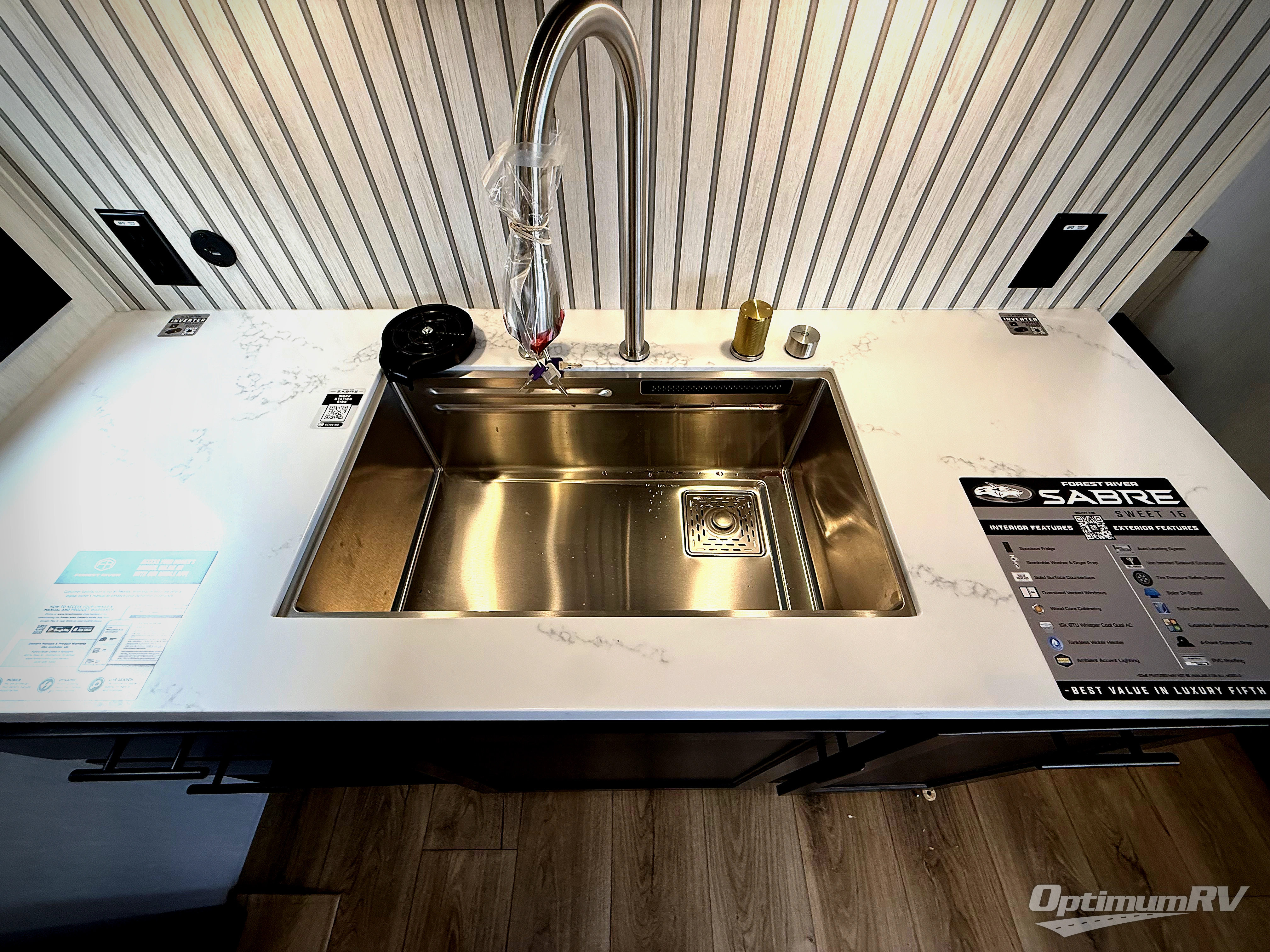 You will experience luxurious camping trips at an affordable price with any one of these Forest River Cherokee Sabre fifth wheels! These models are durable and ready to travel anytime of the year thanks to features like the high-gloss gel-coat front cap with LED lighting, the PVC roof membrane, and the forced air underbelly with enclosed gate valves. The electric auto-leveling system makes setting up easy and safe, and the adjustable power awning with LED lighting will create an inviting outdoor living space. Each model includes a universal docking station which includes a black tank flush and an outside shower, and adjustable stable steps for you to enter and exit the unit safely. Inside, you will love the design of the ambient accent lighting in the living area, the real wood lumbercore cabinetry, and the linoleum flooring!