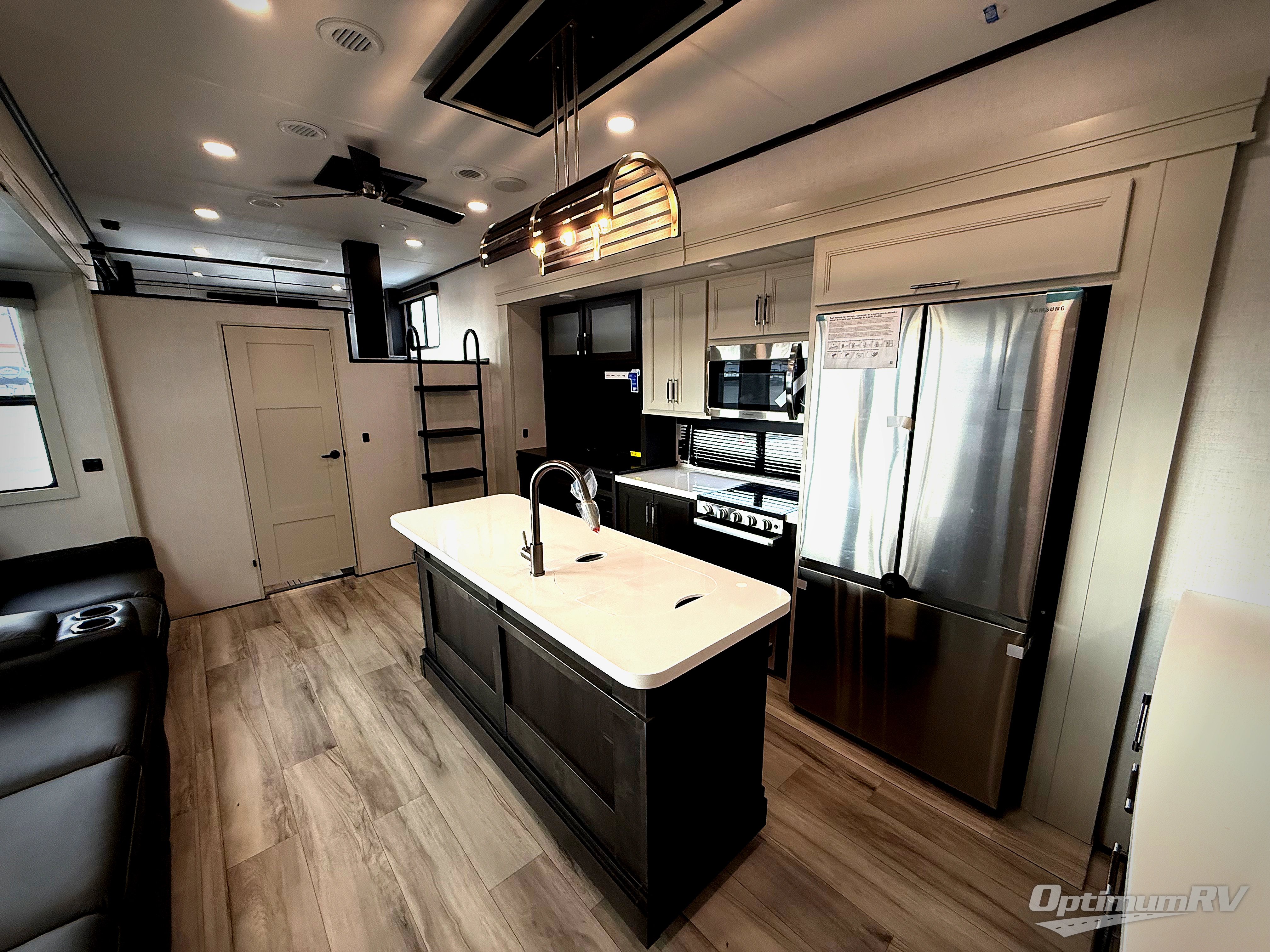 Get ready for family fun in this fifth wheel offering a front master bedroom with a king-size bed slide, plus a second master bedroom for your guests! The second bedroom includes a queen-size bed slide, a loft above the bedroom that sleeps three more, plus a rear full bathroom including a unique rear entry/exit door. And both entrances include the LCl SolidStep. The main living and kitchen area offers dual opposing slides and include theater seating, a free standing dinette, a fireplace, a center island and full kitchen amenities to feed your entire crew.