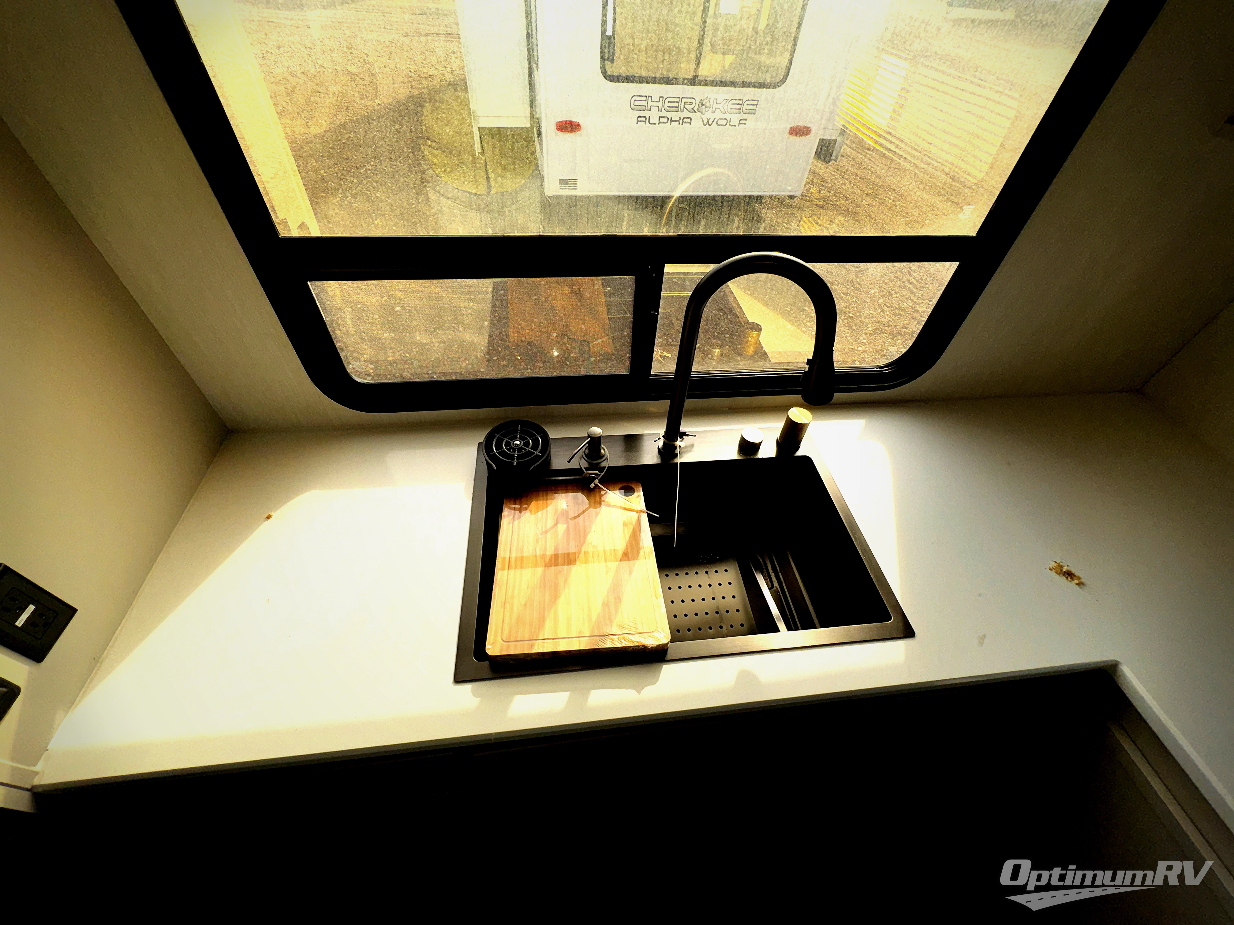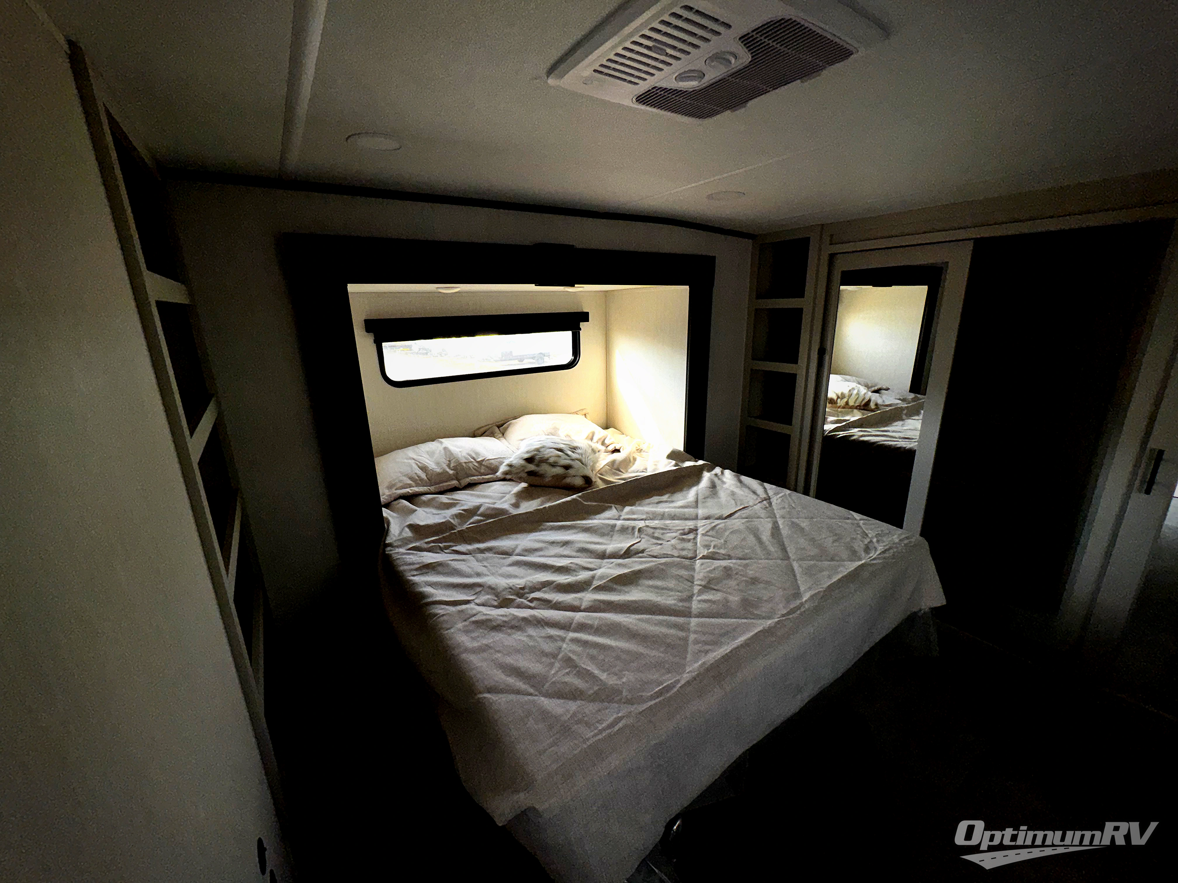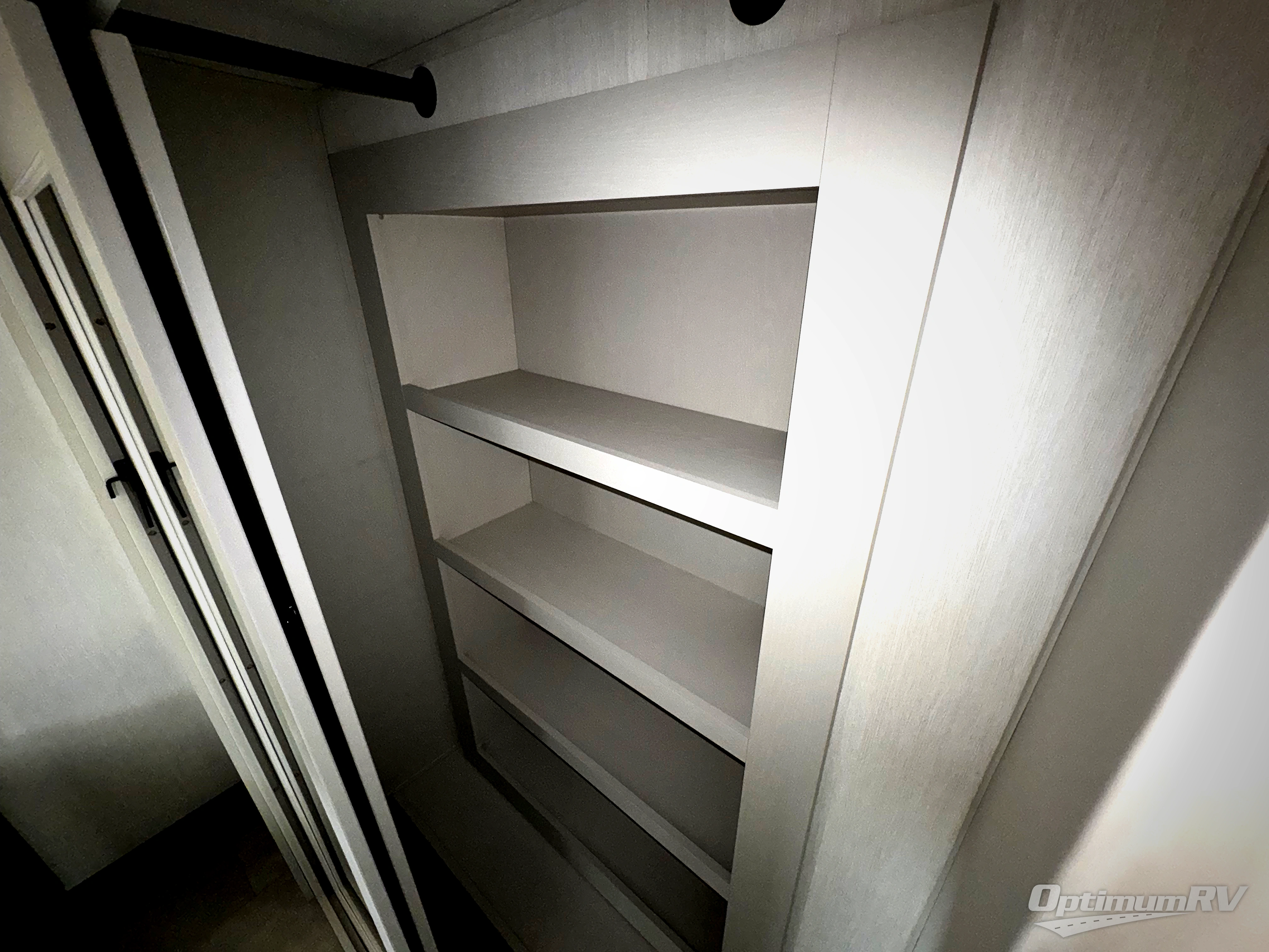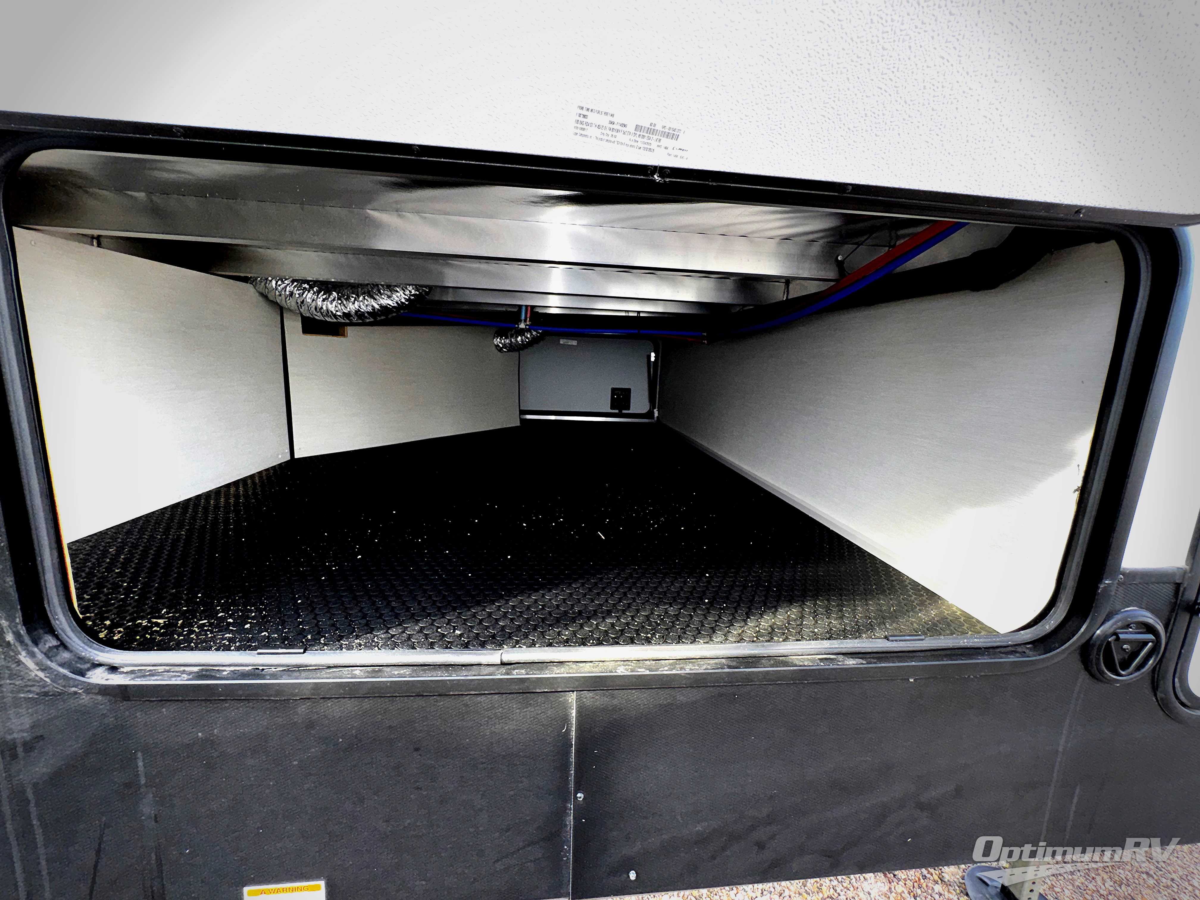 If you enjoy camping with family or friends, this fifth wheel is sure to meet all of your needs! The front bedroom includes a King bed slide out for more space and comfort, plus a front wardrobe/washer and dryer prep. And the full bath is right next door for easy nighttime use. The living room is made spacious thanks to the dual opposing slides, and you'll find a sectional sleeper sofa here, as well as a hybrid desk/dinette, perfect for a quick meal and to catch up with some emails. And don't overlook the rear kitchen with ample counter space, a four burner range, an accessory sink and a French door 12V refrigerator!