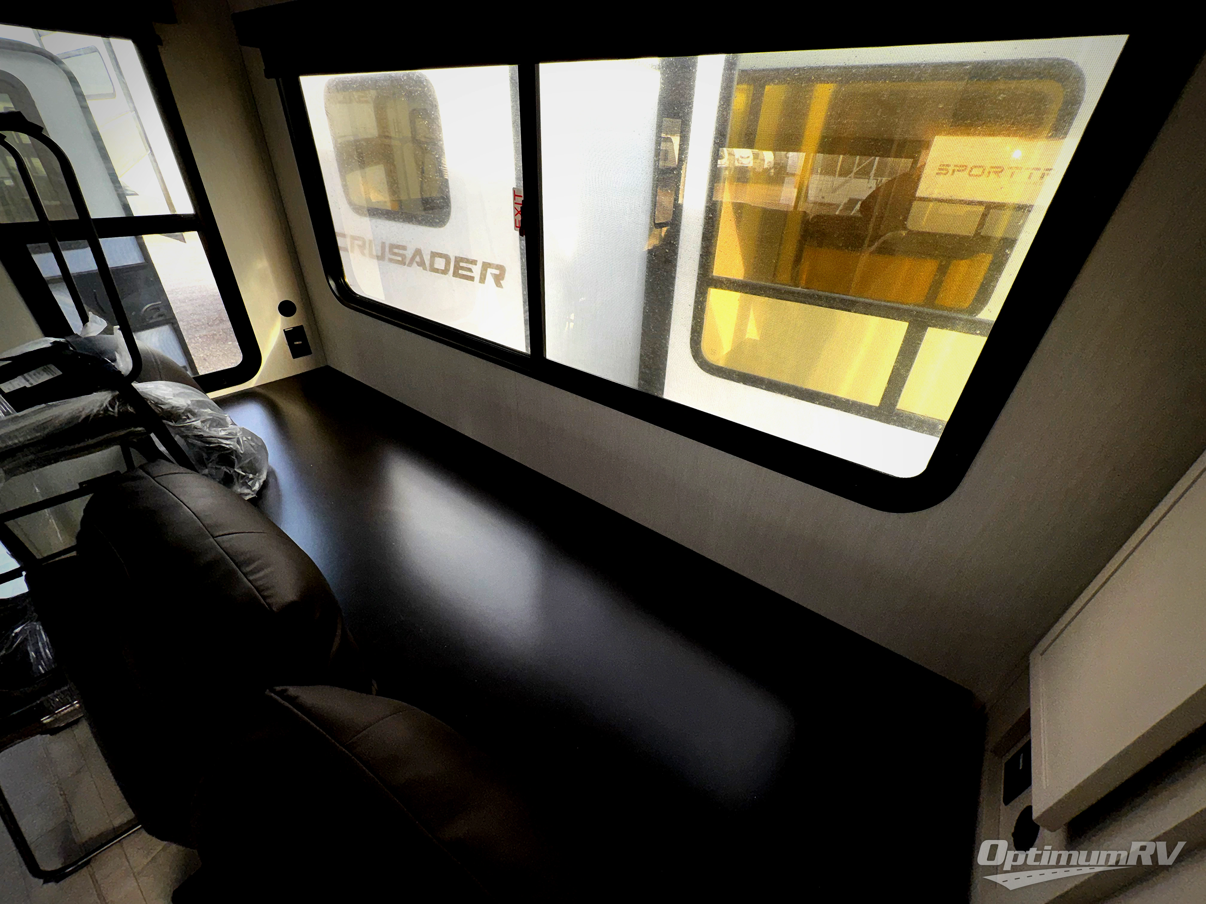With any Crusader fifth wheel by Prime Time, you will enjoy outstanding quality and premium features! The Dexter E-Z Flex rubberized suspension equalizer will help make towing smoother than ever, and the high gloss gel coated exterior fiberglass is sure to be eye-catching. There are also thick insulated pass-through storage baggage doors outside, along with a 102" wide body, and hassle-free one-touch auto leveling. Inside, you'll find real wood cabinet doors, carpet-less slide rooms, blackout roller shades, and stain resistant, easy clean furniture. The Crusader fifth wheels are built with Eternabond construction, a one-piece PVC roof membrane, radiant foil insulation, plus rack and pinion slide systems.