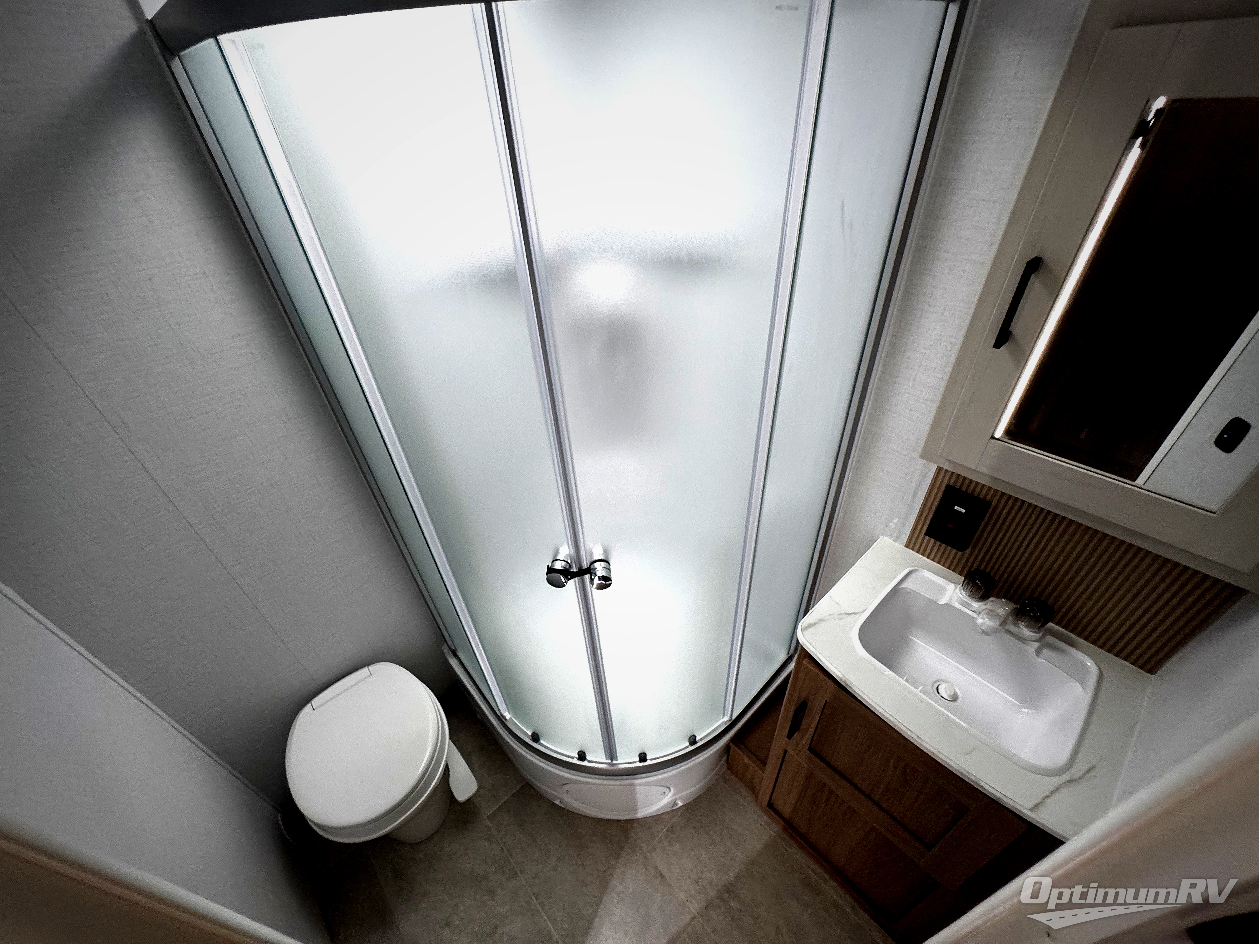 Whatever reason you camp, this lightweight trailer allows you to easily tow to your campsite, and enjoy comforts of home such as your own residential queen bed, wardrobe storage, and a full bathroom with a shower. The booth dinette provides both seating space and sleeping space for a guest. The cook will have an oven and a microwave to make meals, and a 10 cu. ft. 12V refrigerator for cold items, plus a galley sink with high rise faucet to keep the dishes clean.