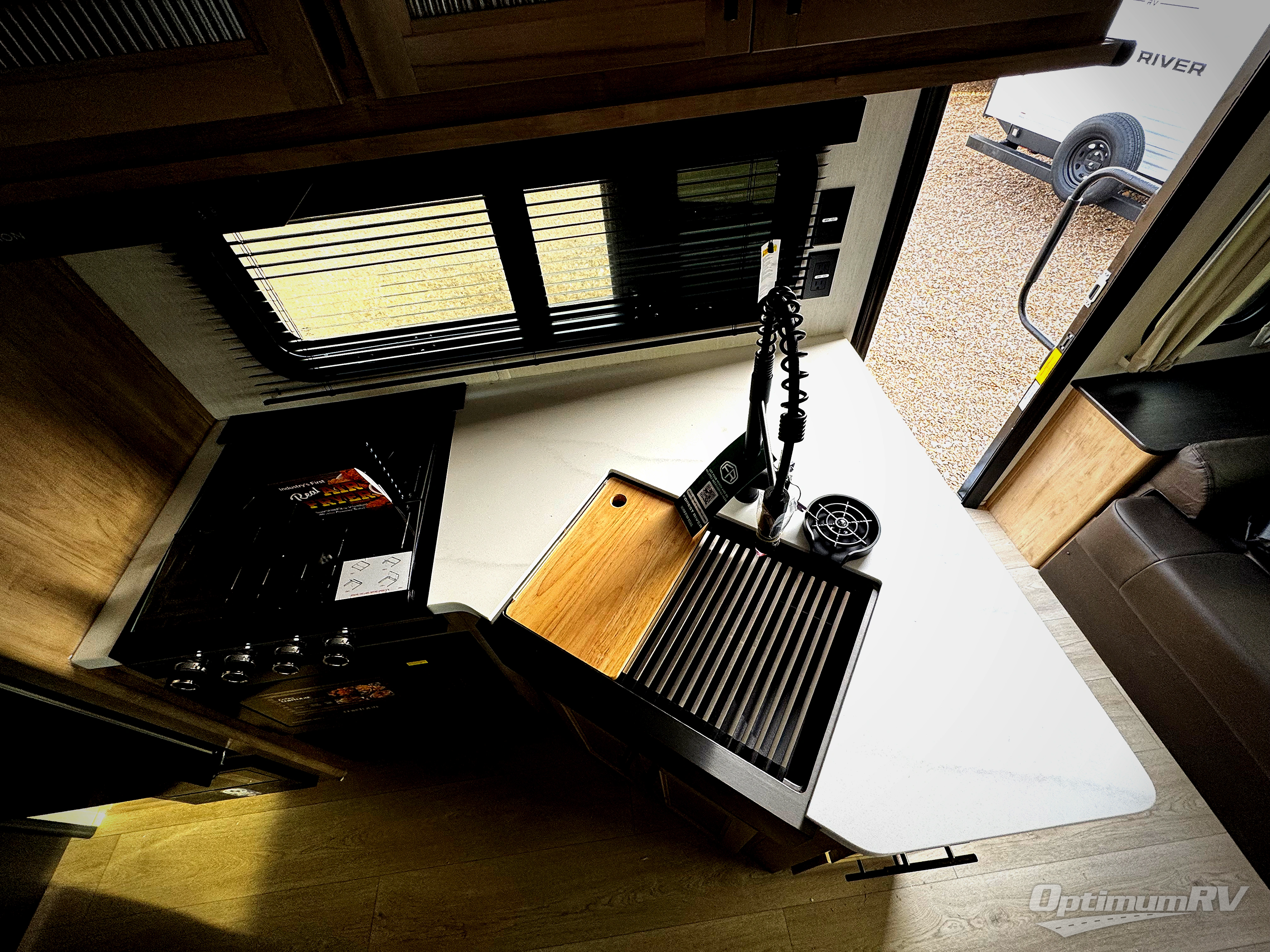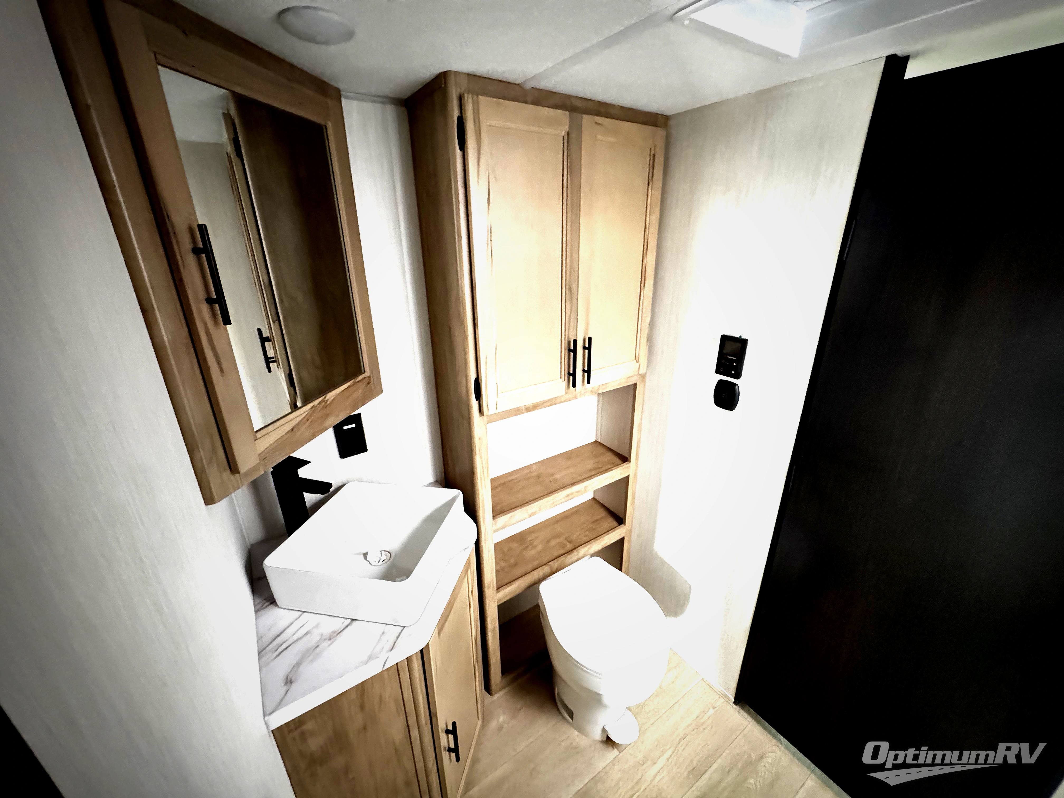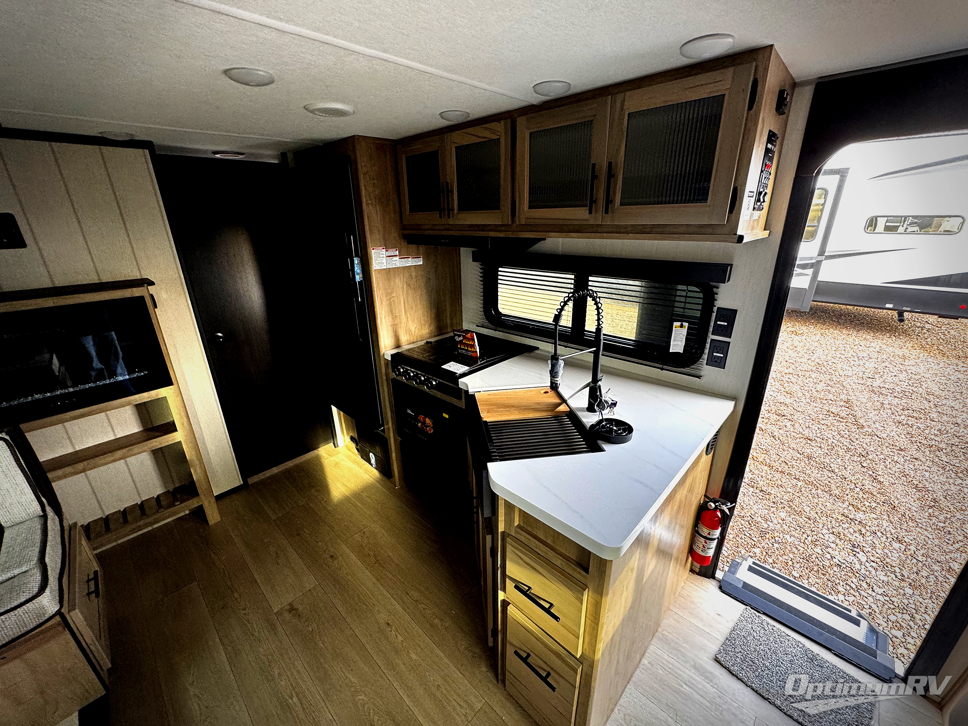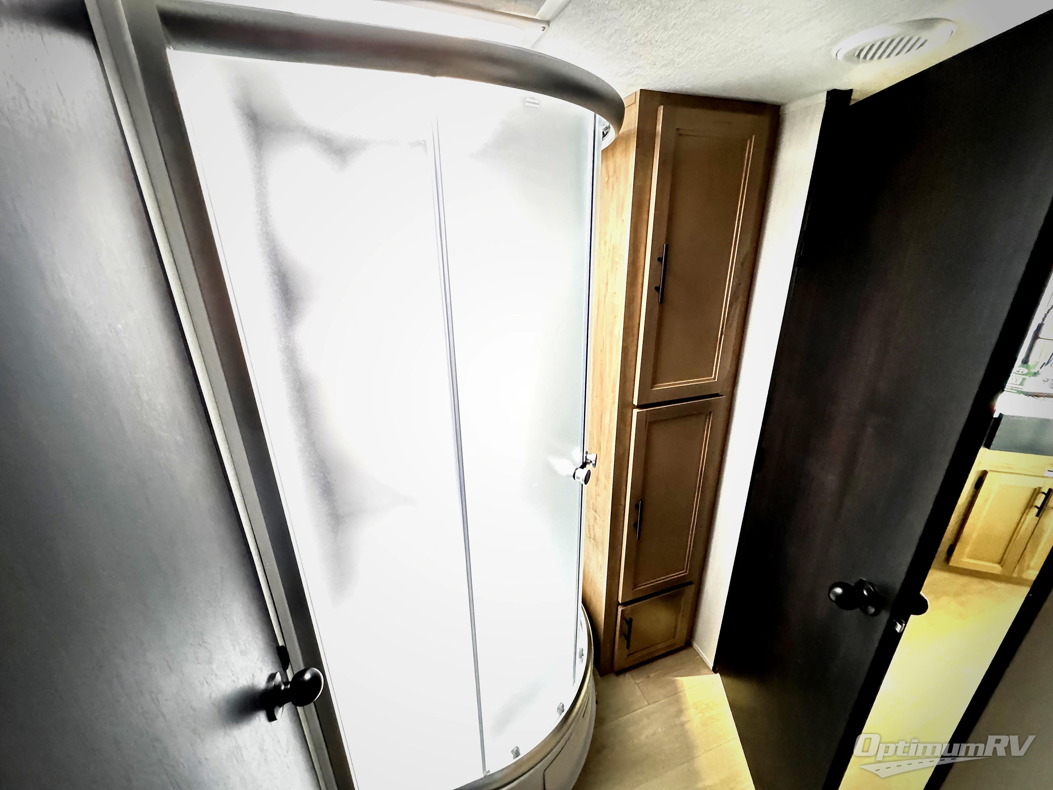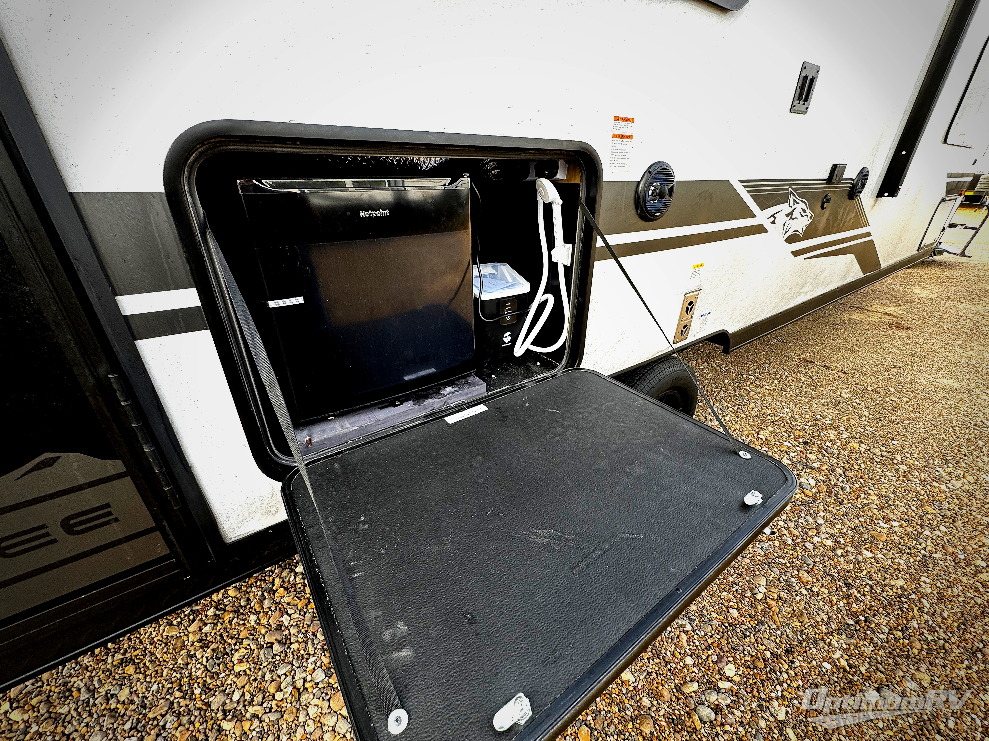 This Cherokee Grey Wolf Black Label travel trailer is perfect for your small family and will leave you planning your next outing before you are back from your current weekend away! You will find all of the comforts you need with plenty of livable space including a U-shaped dinette slide. There is also a sofa for more seating when company arrives, and there are end tables on either side to prevent spills. A spacious walk-through bath leads to a front private bedroom where you will enjoy a great night's rest on a comfortable RV king bed.