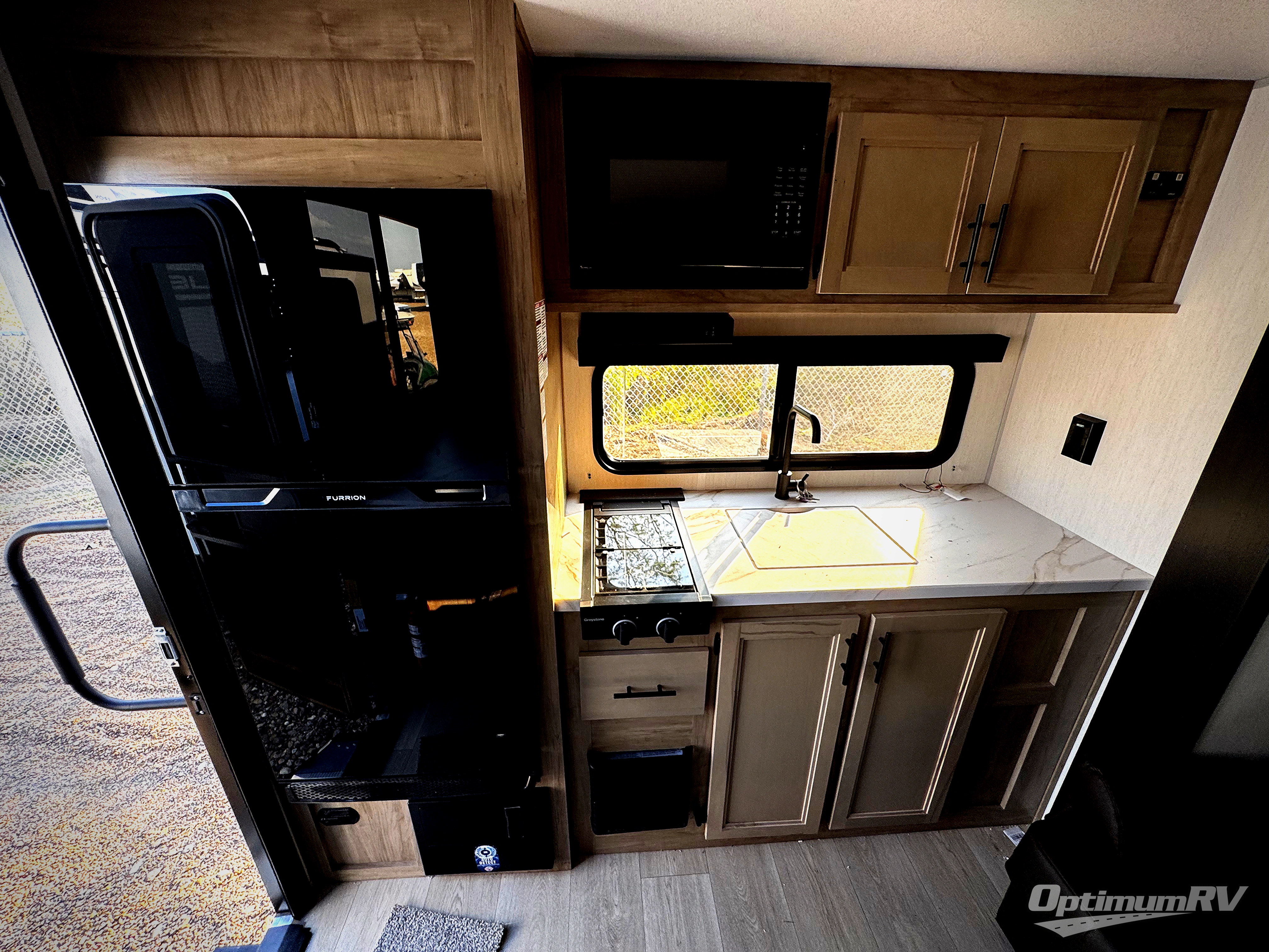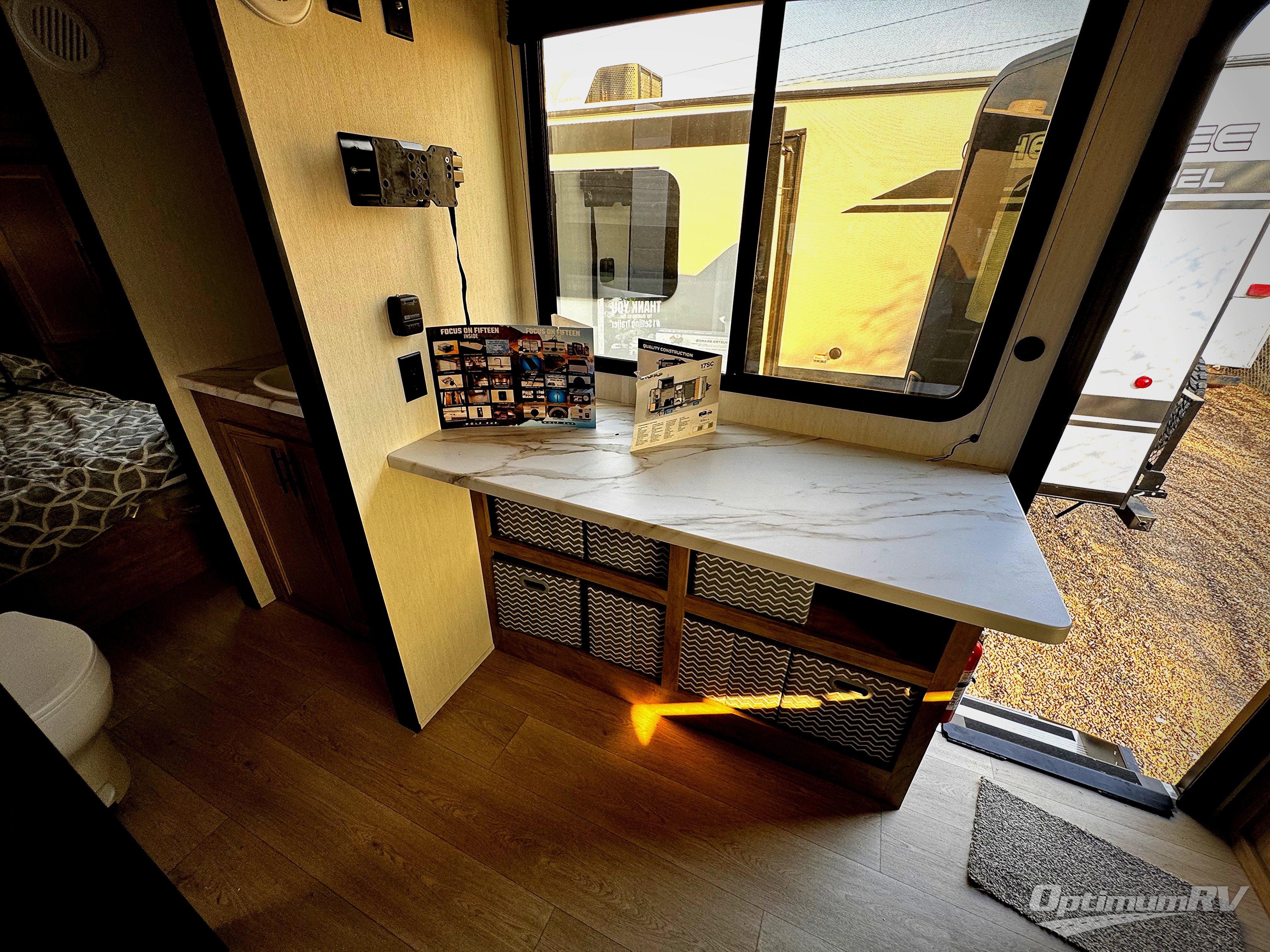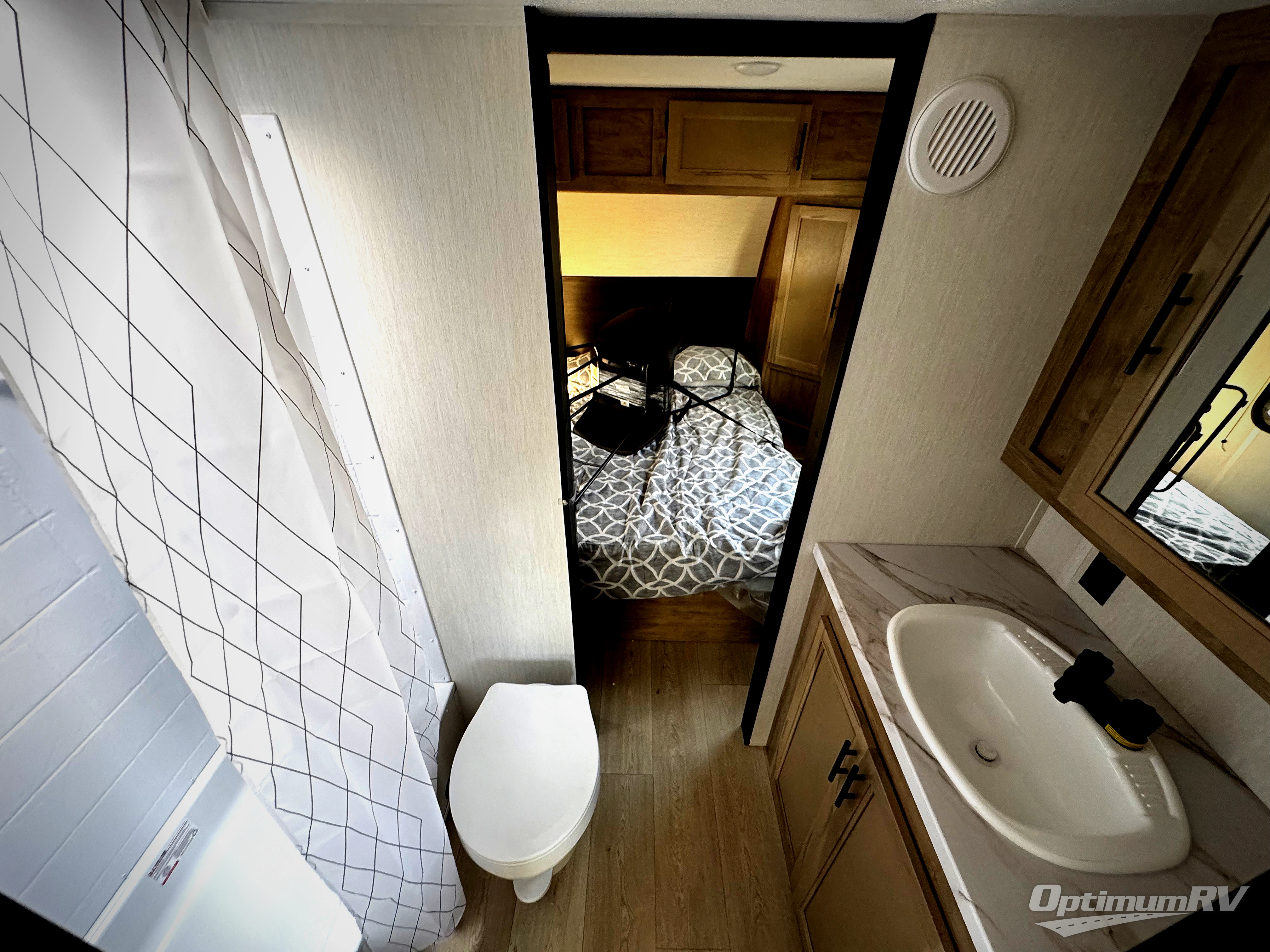 Convenient camping is found with this lightweight travel trailer! Once you arrive at your destination, put out the power awning, then make lunch on the exterior mini kitchen. Inside, you can dine at the bar top with stools, freshen up in the tub/shower, and sleep soundly on the queen bed in the master bedroom. There is also a sofa slide out to provide additional seating, sleeping, and interior space! And you're sure to find plenty of storage spaces both inside and outside, including a rear storage rack!