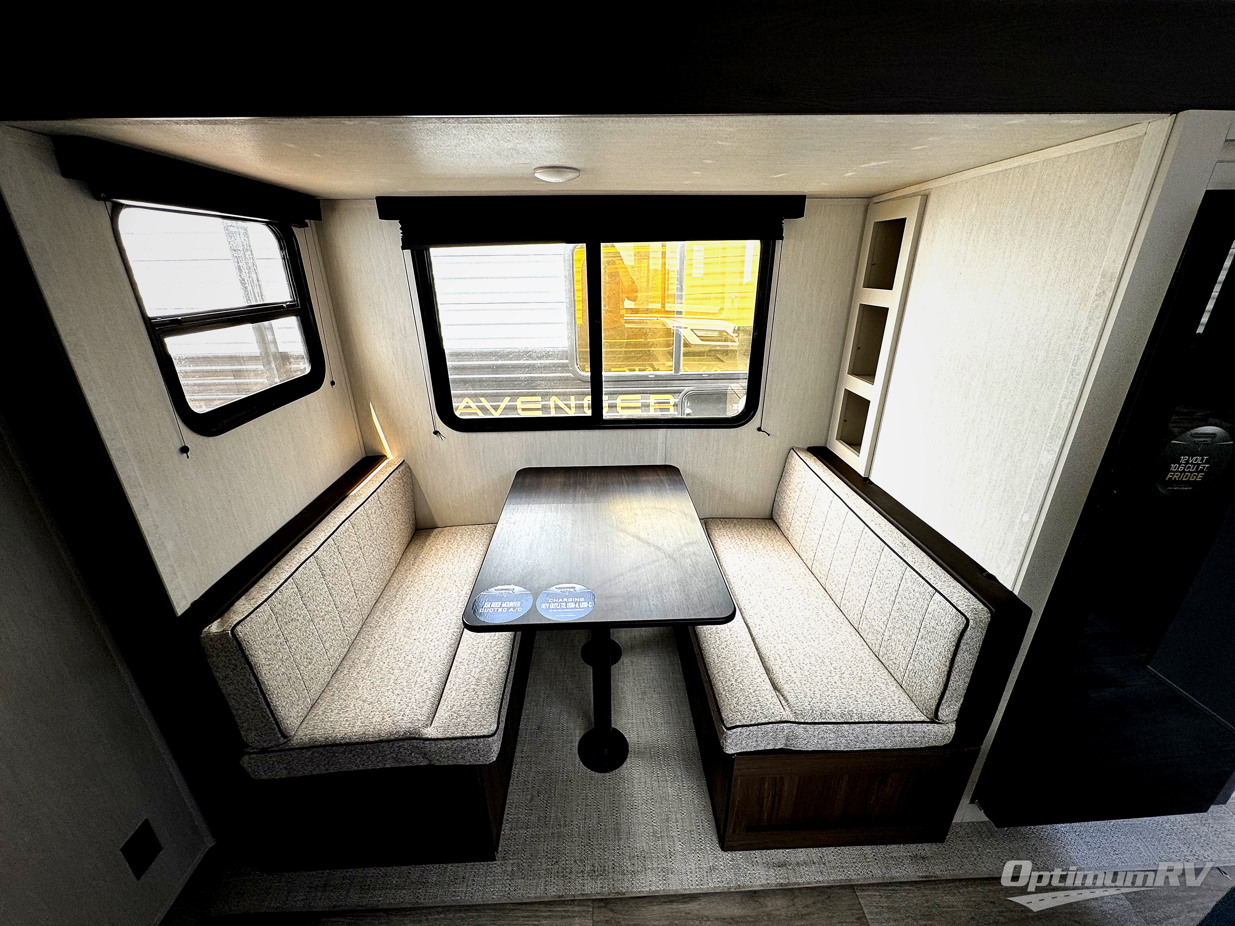 With any Avenger travel trailer by Prime Time RV, you will find innovation, a solid build, and comfort at every turn. Each model is built with Tuff Coat on the exterior metal, a fully enclosed underbelly, and a PVC roof membrane to help extend the life of your trailer. You will also find automotive name badging on the exterior, along with an exterior shower, front rail LED light strips, plus an XL padded entry grab handle to name a few conveniences. There are plenty of storage spaces inside, as well as Congoleum flooring and woven PVC marine grade slide out flooring, a designer shower surround, and seamless pressed countertops. You are sure to appreciate the onboard water filtration system, tankless water heater, plus 30K BTU furnace and 15K ducted A/C to help keep you comfortable.