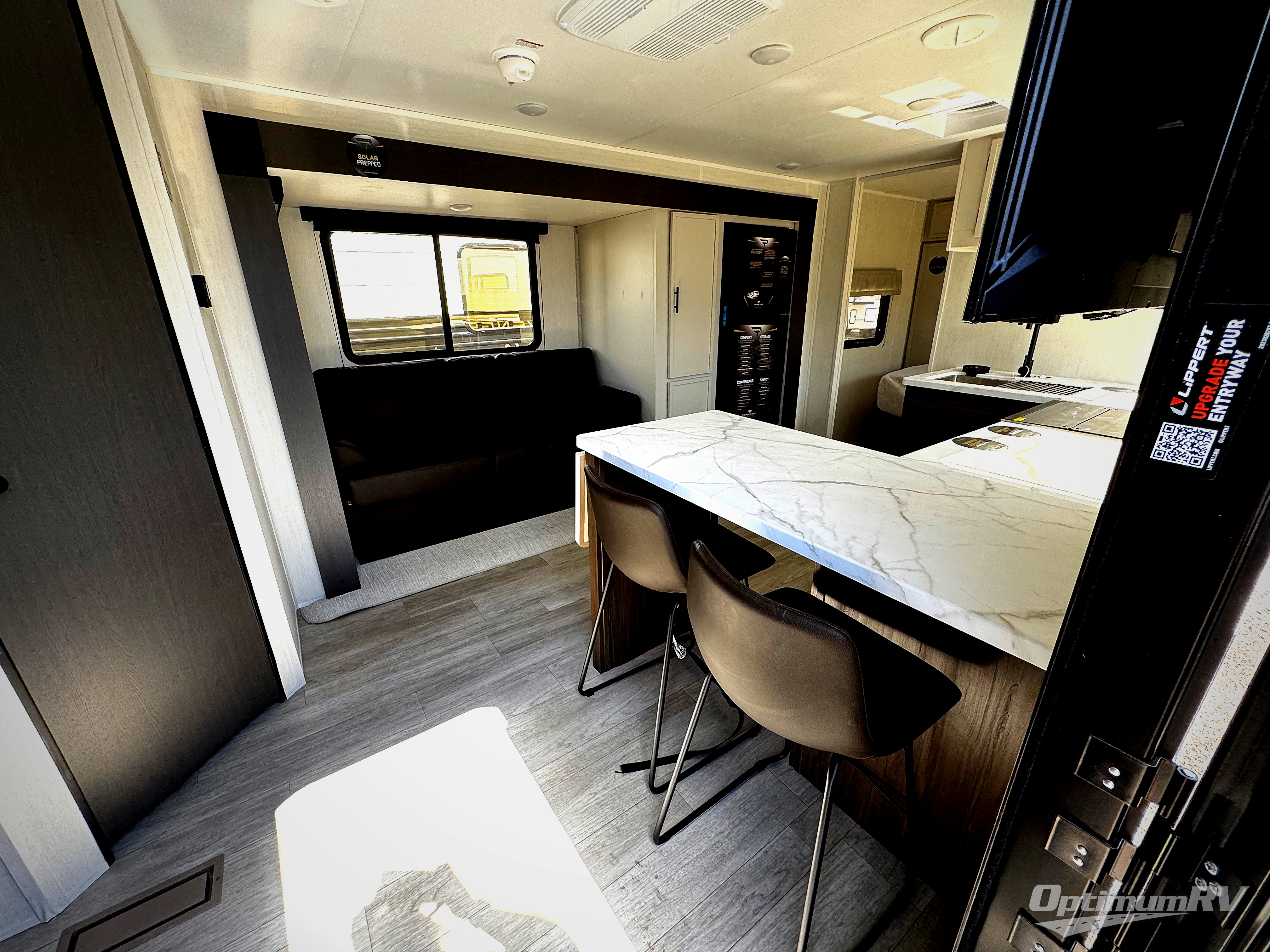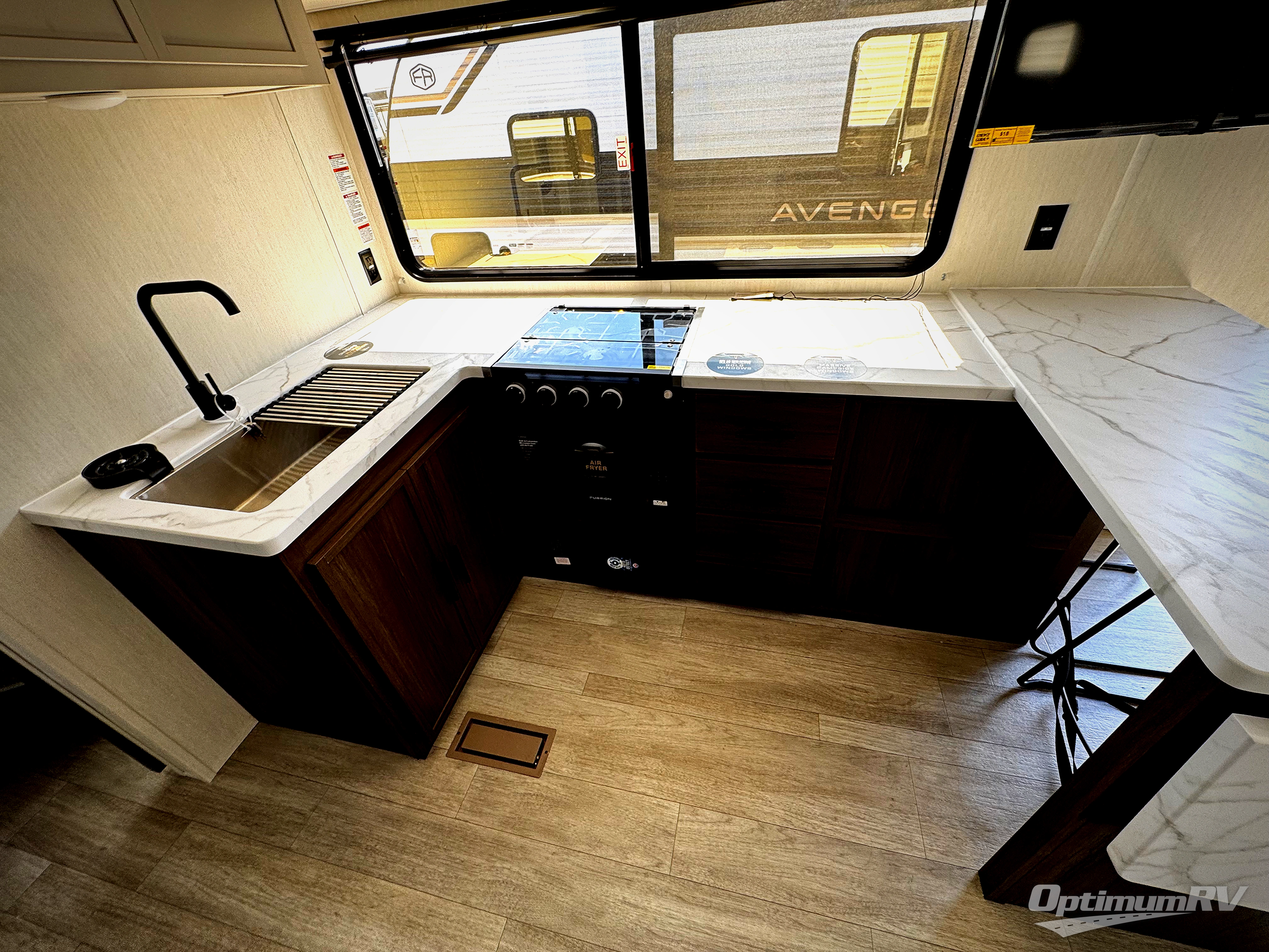 With any Avenger travel trailer by Prime Time RV, you will find innovation, a solid build, and comfort at every turn. Each model is built with Tuff Coat on the exterior metal, a fully enclosed underbelly, and a PVC roof membrane to help extend the life of your trailer. You will also find automotive name badging on the exterior, along with an exterior shower, front rail LED light strips, plus an XL padded entry grab handle to name a few conveniences. There are plenty of storage spaces inside, as well as Congoleum flooring and woven PVC marine grade slide out flooring, a designer shower surround, and seamless pressed countertops. You are sure to appreciate the onboard water filtration system, tankless water heater, plus 30K BTU furnace and 15K ducted A/C to help keep you comfortable.