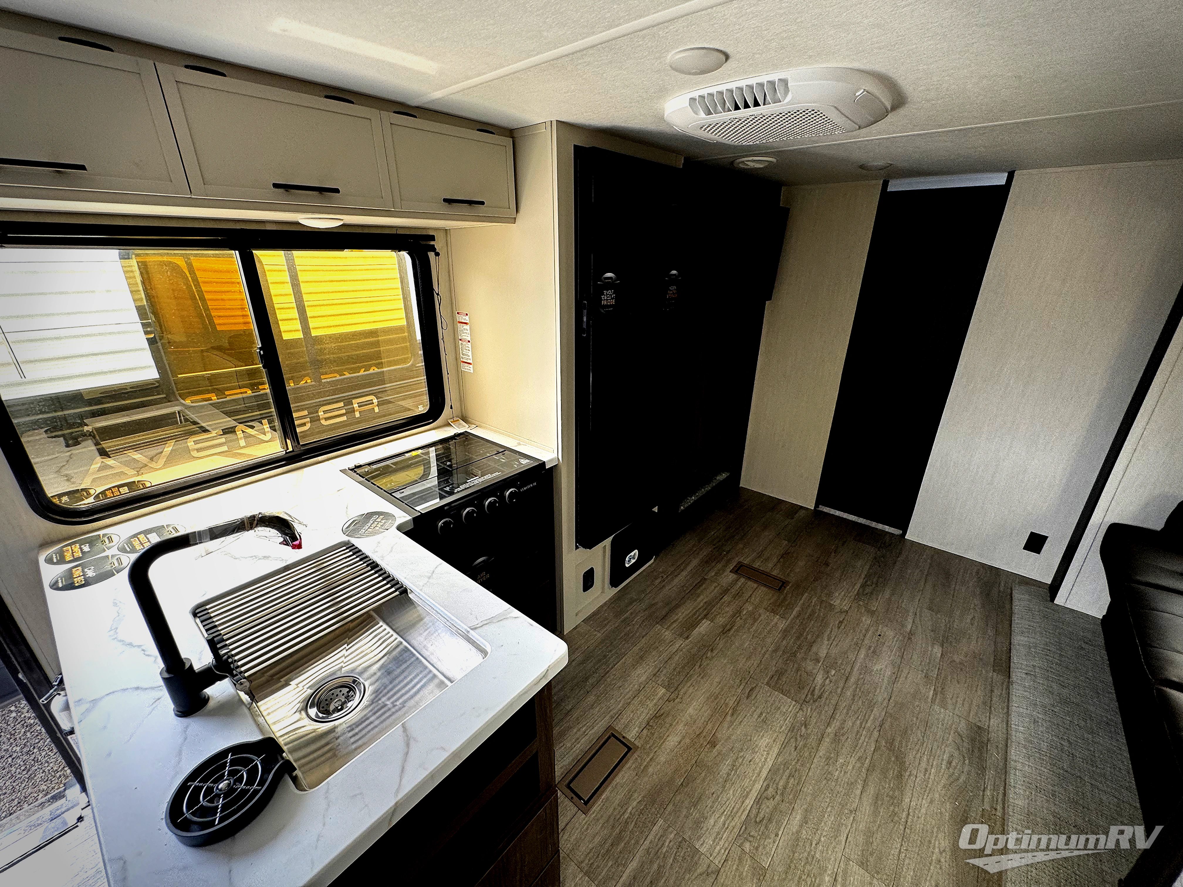 With any Avenger travel trailer by Prime Time RV, you will find innovation, a solid build, and comfort at every turn. Each model is built with Tuff Coat on the exterior metal, a fully enclosed underbelly, and a PVC roof membrane to help extend the life of your trailer. You will also find automotive name badging on the exterior, along with an exterior shower, front rail LED light strips, plus an XL padded entry grab handle to name a few conveniences. There are plenty of storage spaces inside, as well as Congoleum flooring and woven PVC marine grade slide out flooring, a designer shower surround, and seamless pressed countertops. You are sure to appreciate the onboard water filtration system, tankless water heater, plus 30K BTU furnace and 15K ducted A/C to help keep you comfortable.