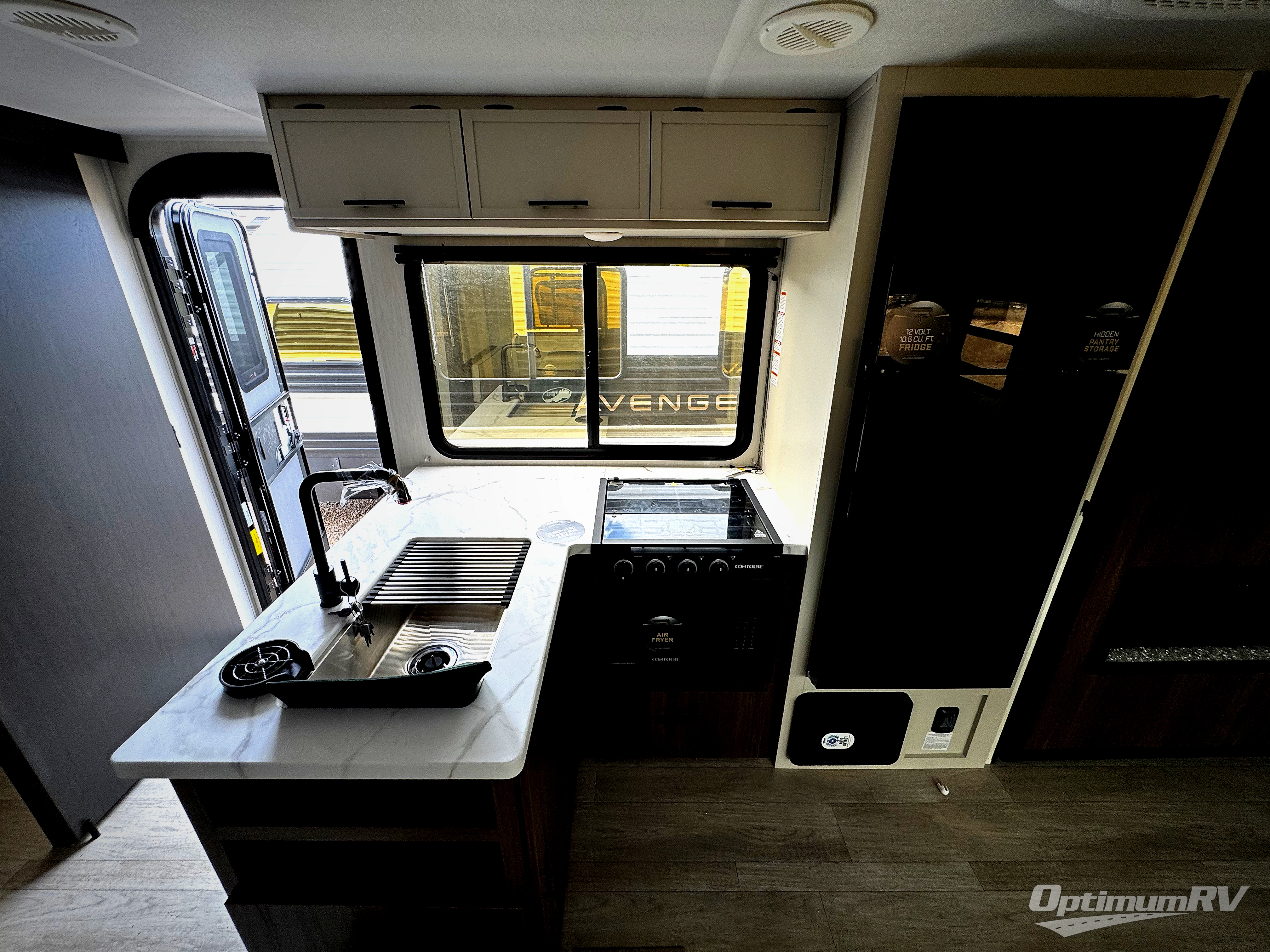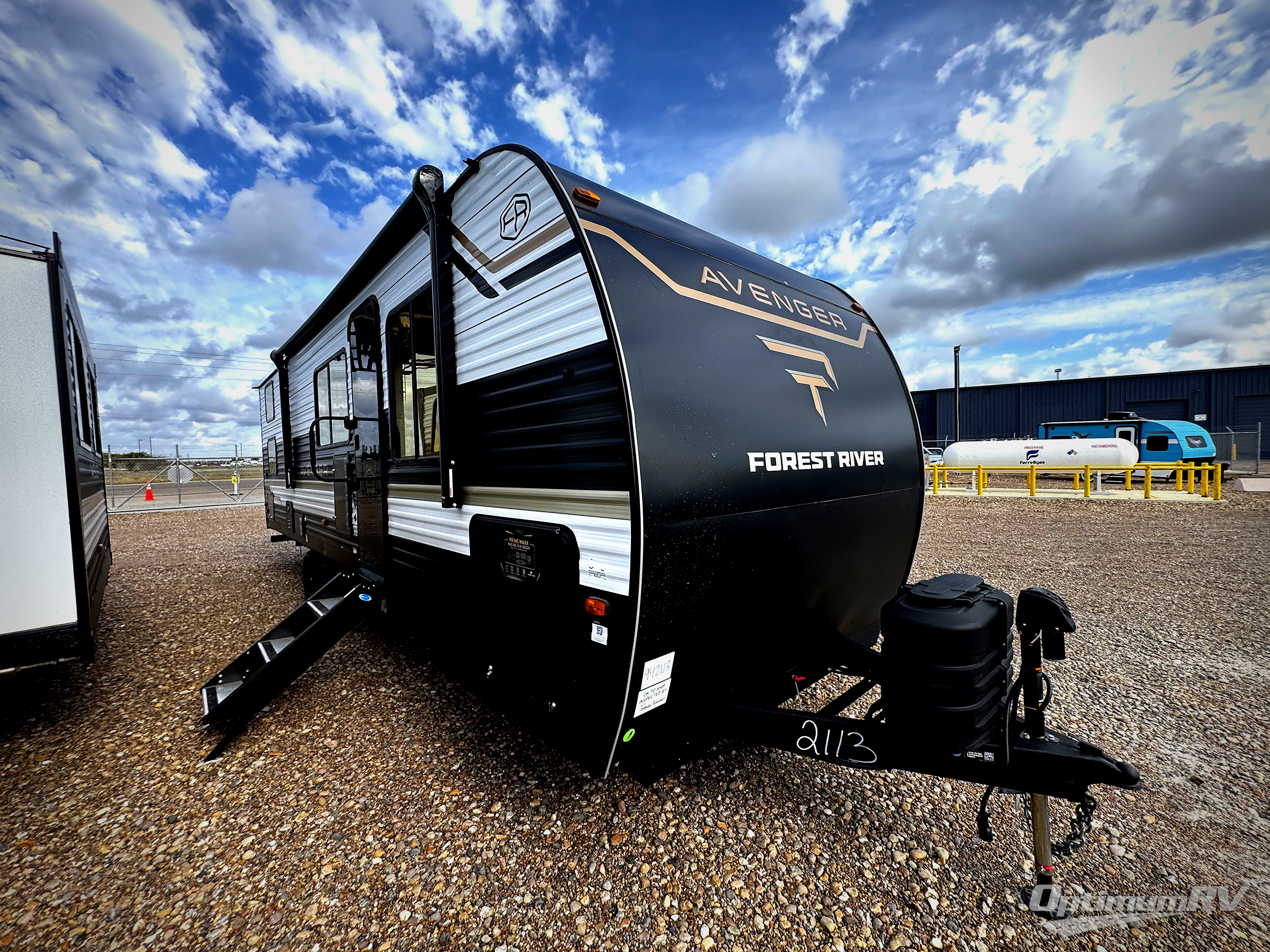 With any Avenger travel trailer by Prime Time RV, you will find innovation, a solid build, and comfort at every turn. Each model is built with Tuff Coat on the exterior metal, a fully enclosed underbelly, and a PVC roof membrane to help extend the life of your trailer. You will also find automotive name badging on the exterior, along with an exterior shower, front rail LED light strips, plus an XL padded entry grab handle to name a few conveniences. There are plenty of storage spaces inside, as well as Congoleum flooring and woven PVC marine grade slide out flooring, a designer shower surround, and seamless pressed countertops. You are sure to appreciate the onboard water filtration system, tankless water heater, plus 30K BTU furnace and 15K ducted A/C to help keep you comfortable.